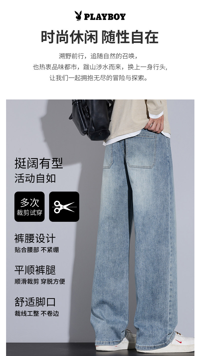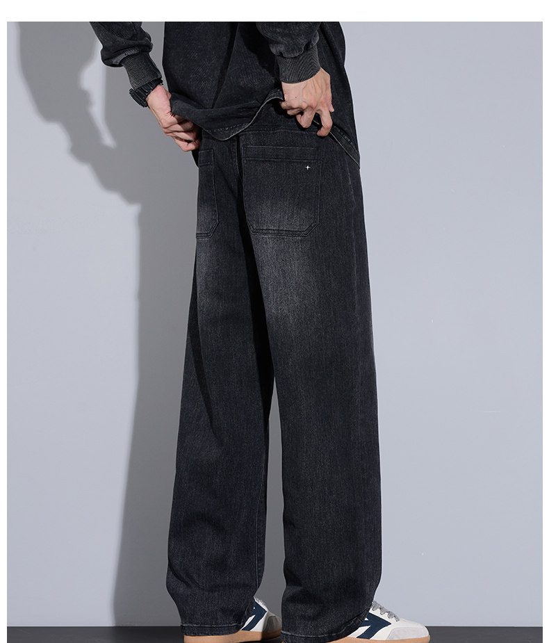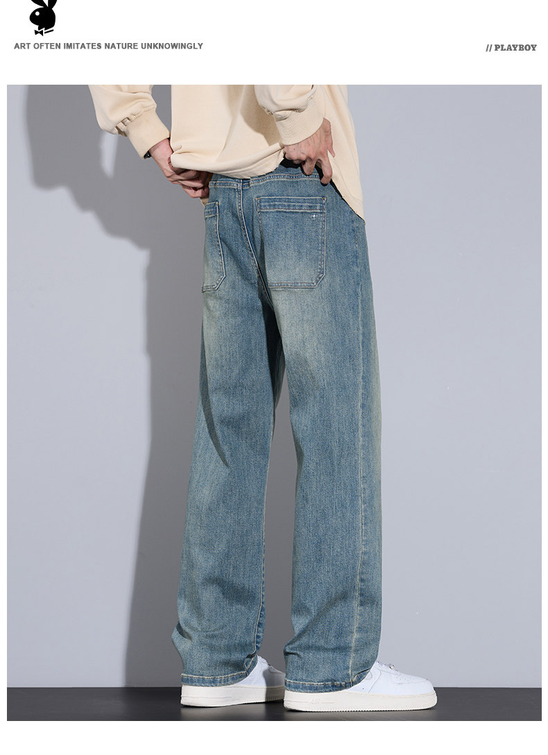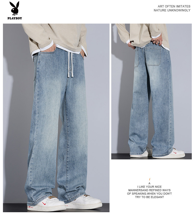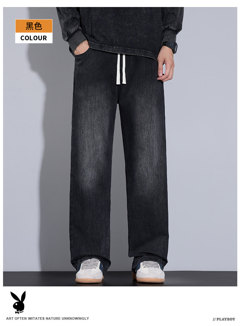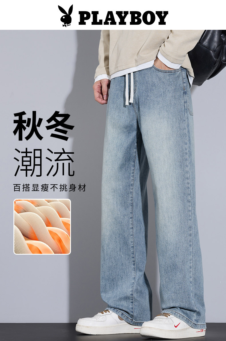 Playboy Jeans for Men, Autumn and Winter Thick Style, Loose Straight-Leg American Trendy Wide-Leg Washed Long Pants for Men