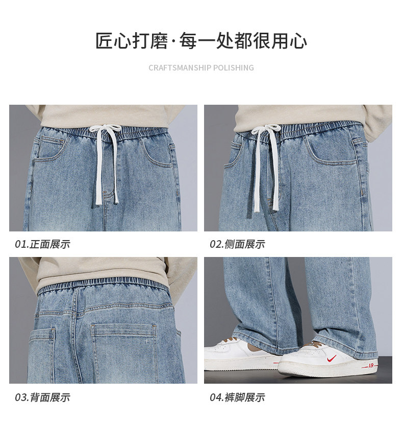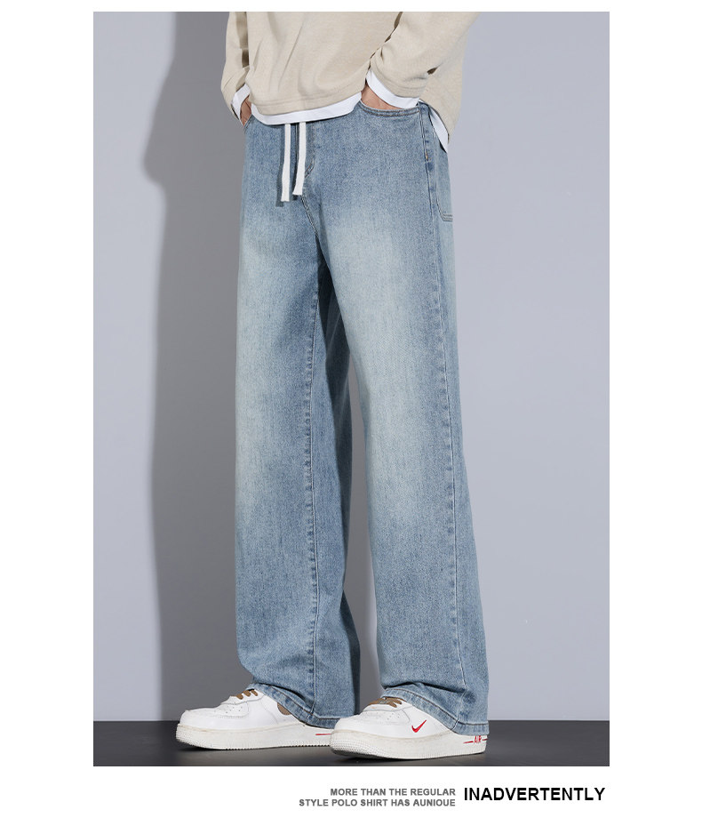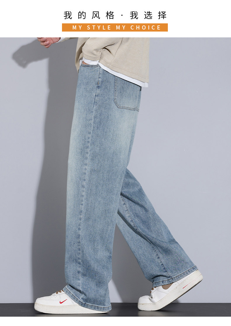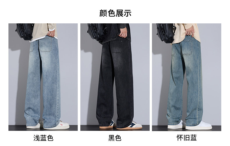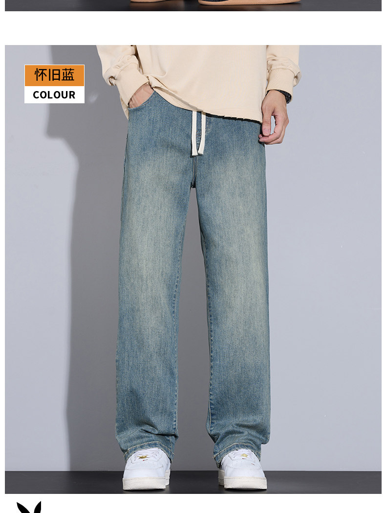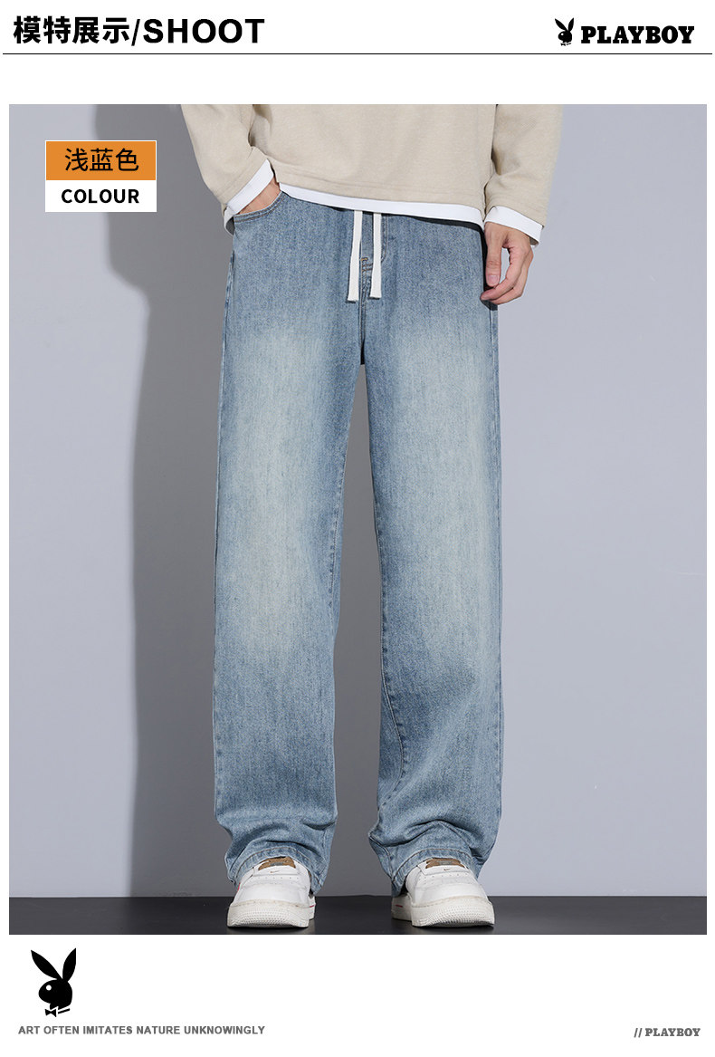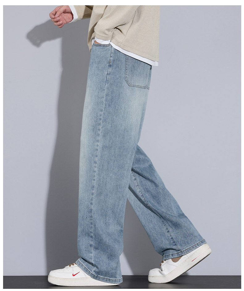 Playboy Jeans for Men, Autumn and Winter Thick Style, Loose Straight-Leg American Trendy Wide-Leg Washed Long Pants for Men