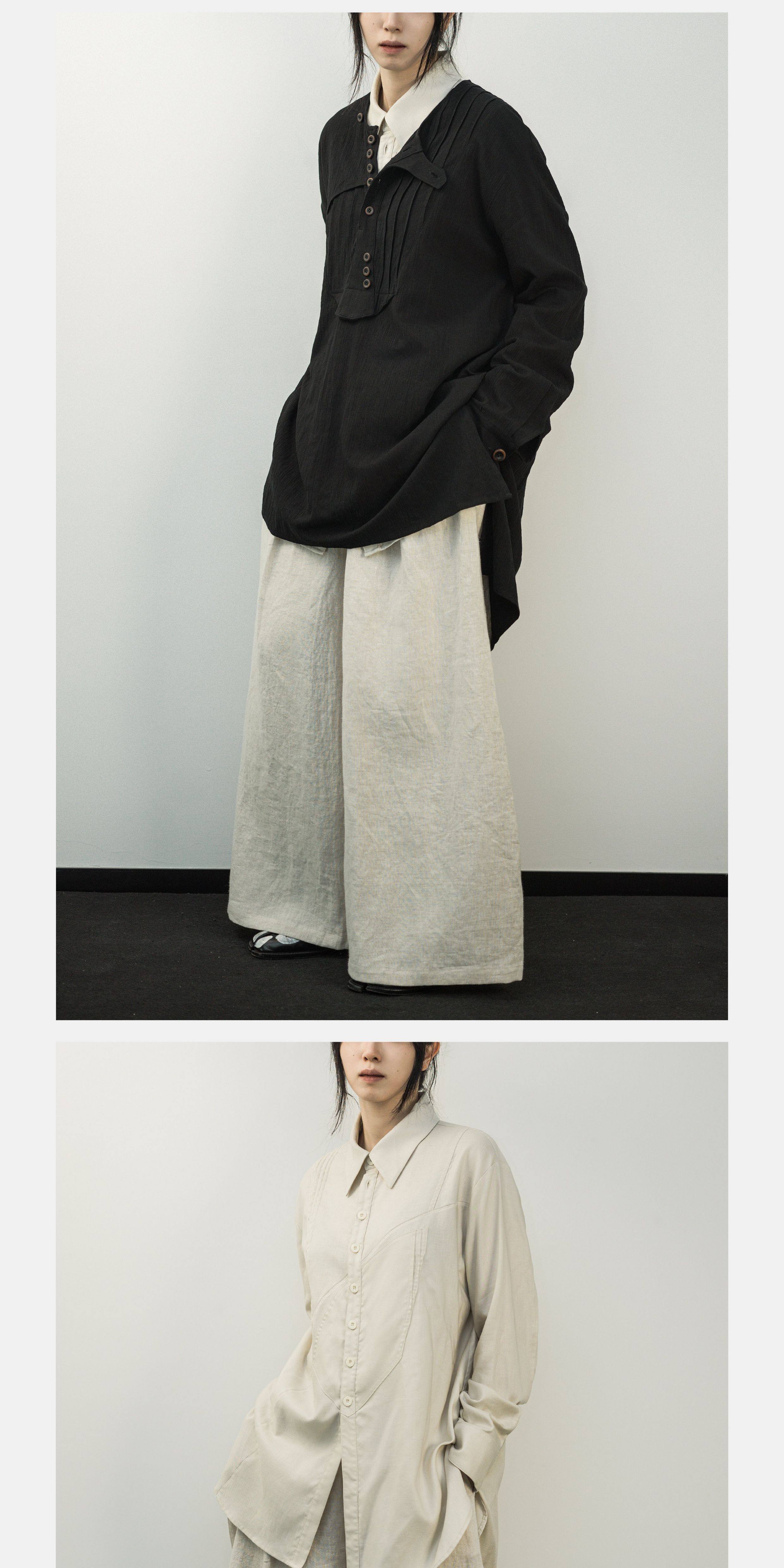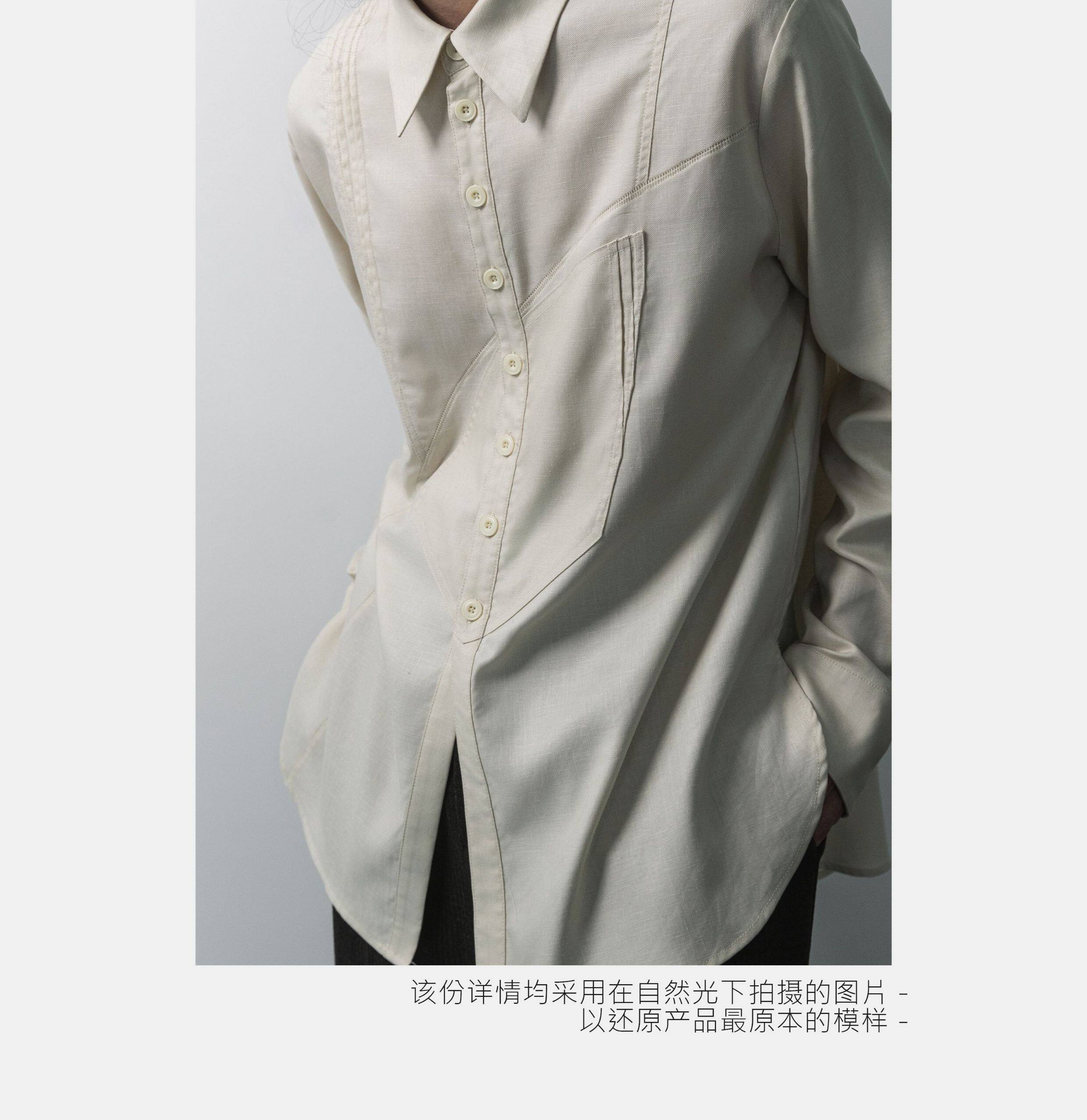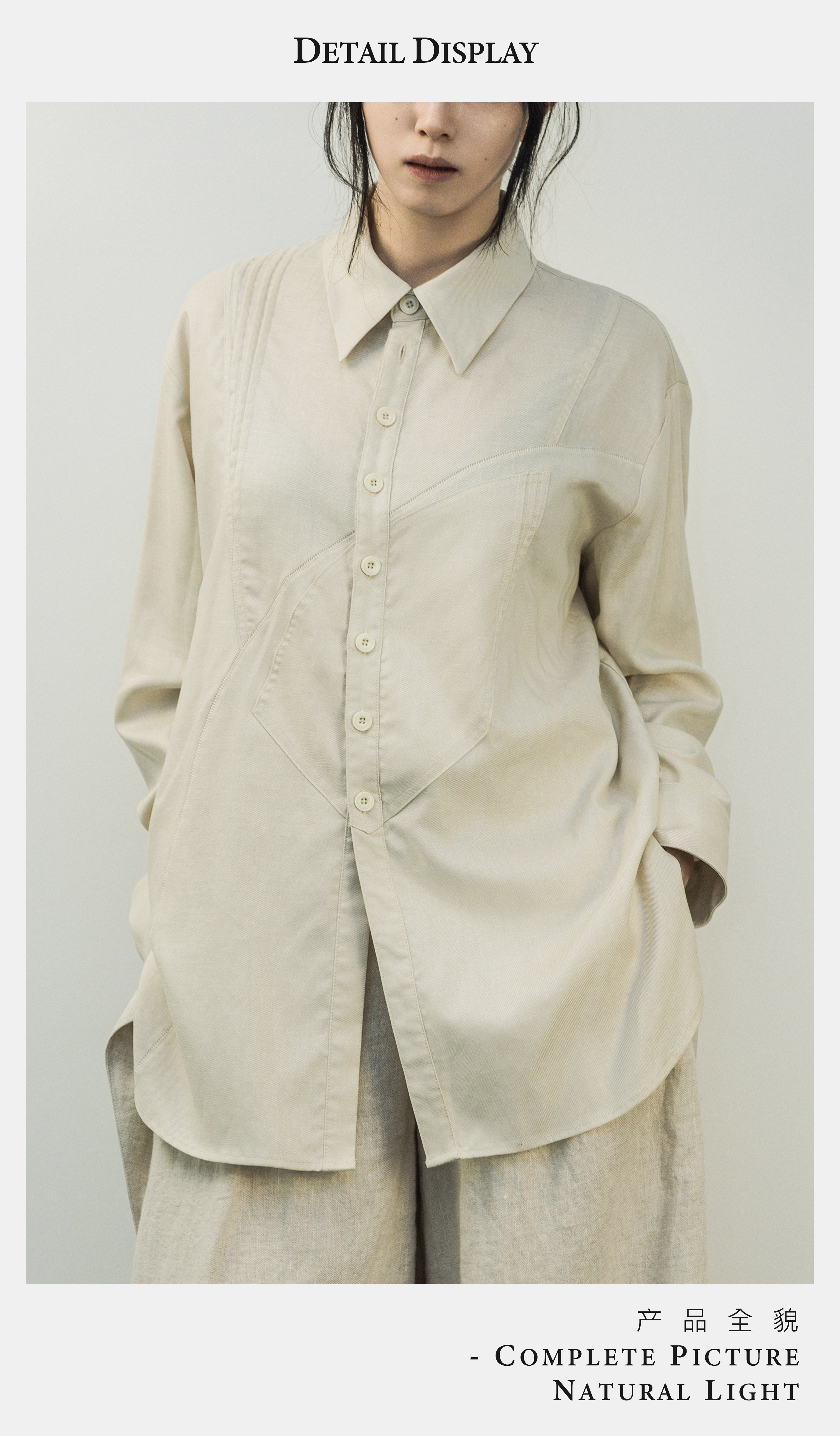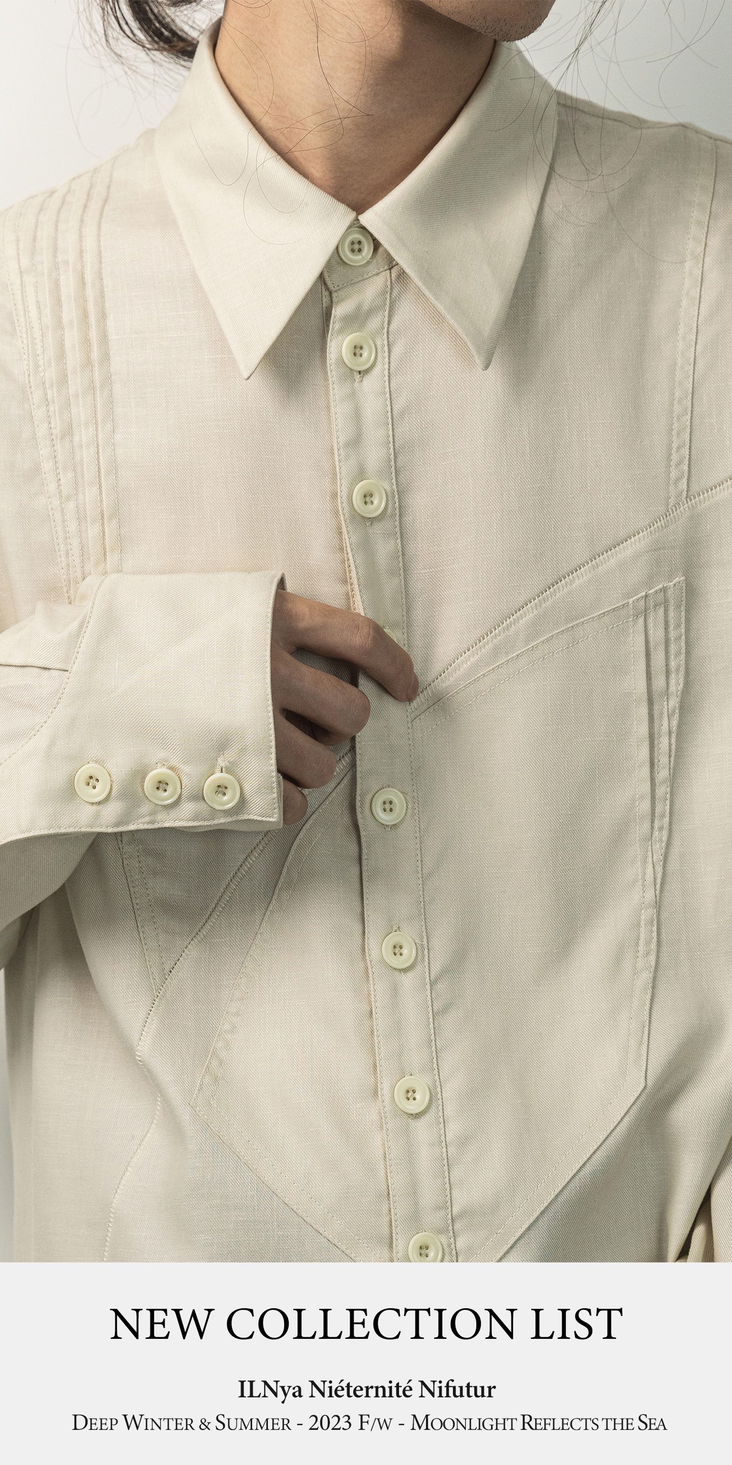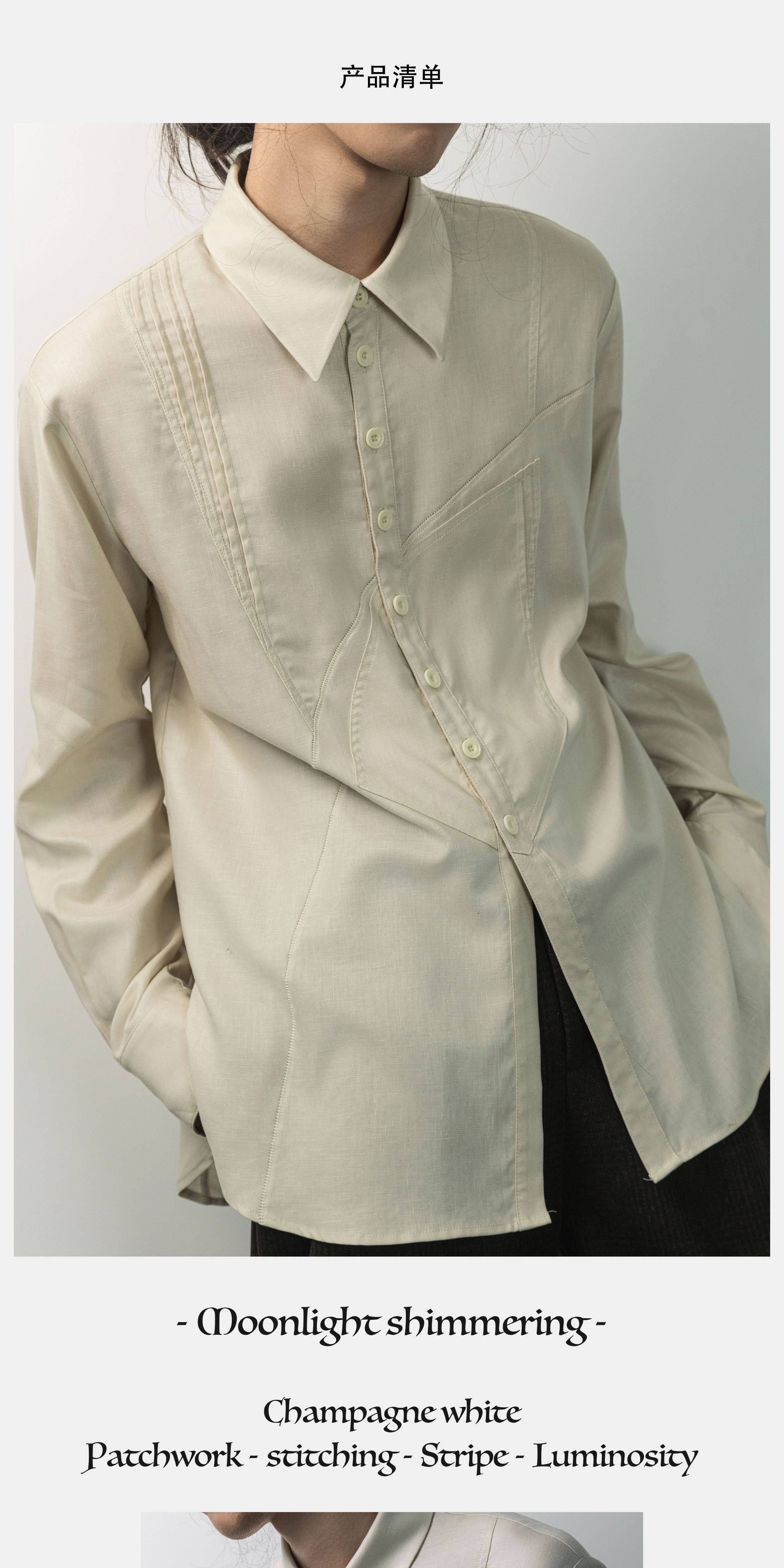 Lingya ILNya — "Moon Sea / White Temples" Moonlight-Shimmer Patchwork-Stitched Long-Sleeve Shirt