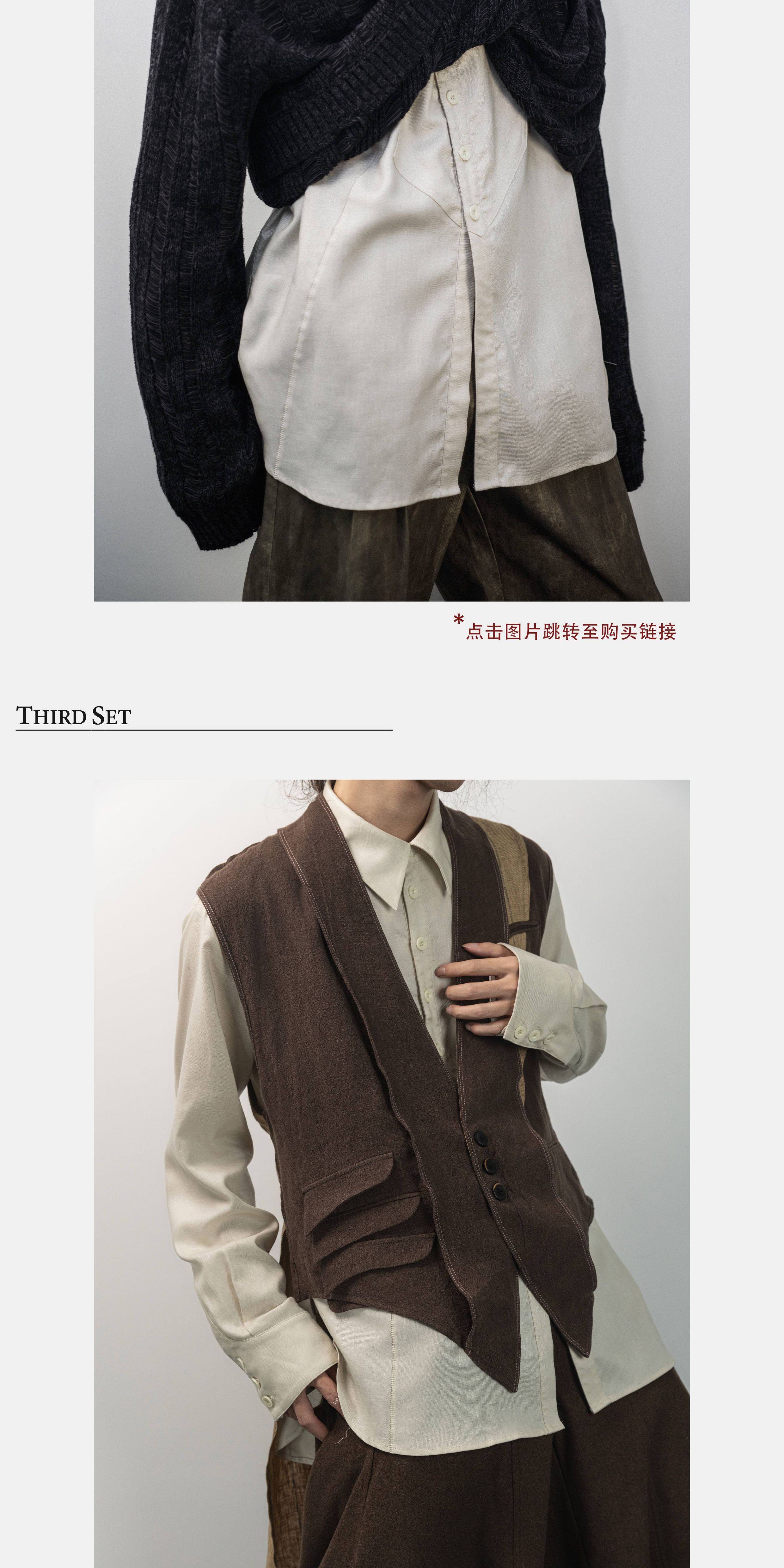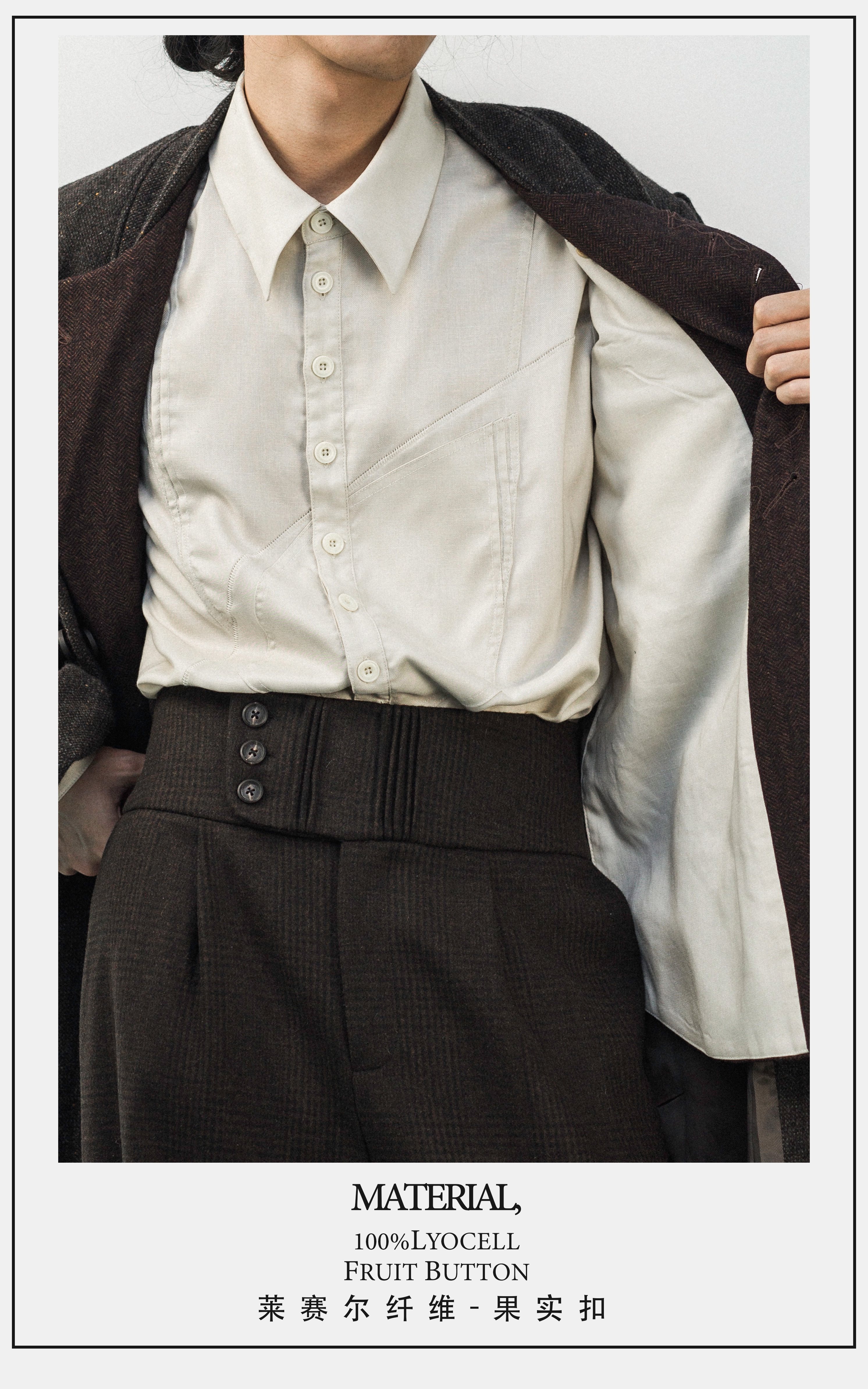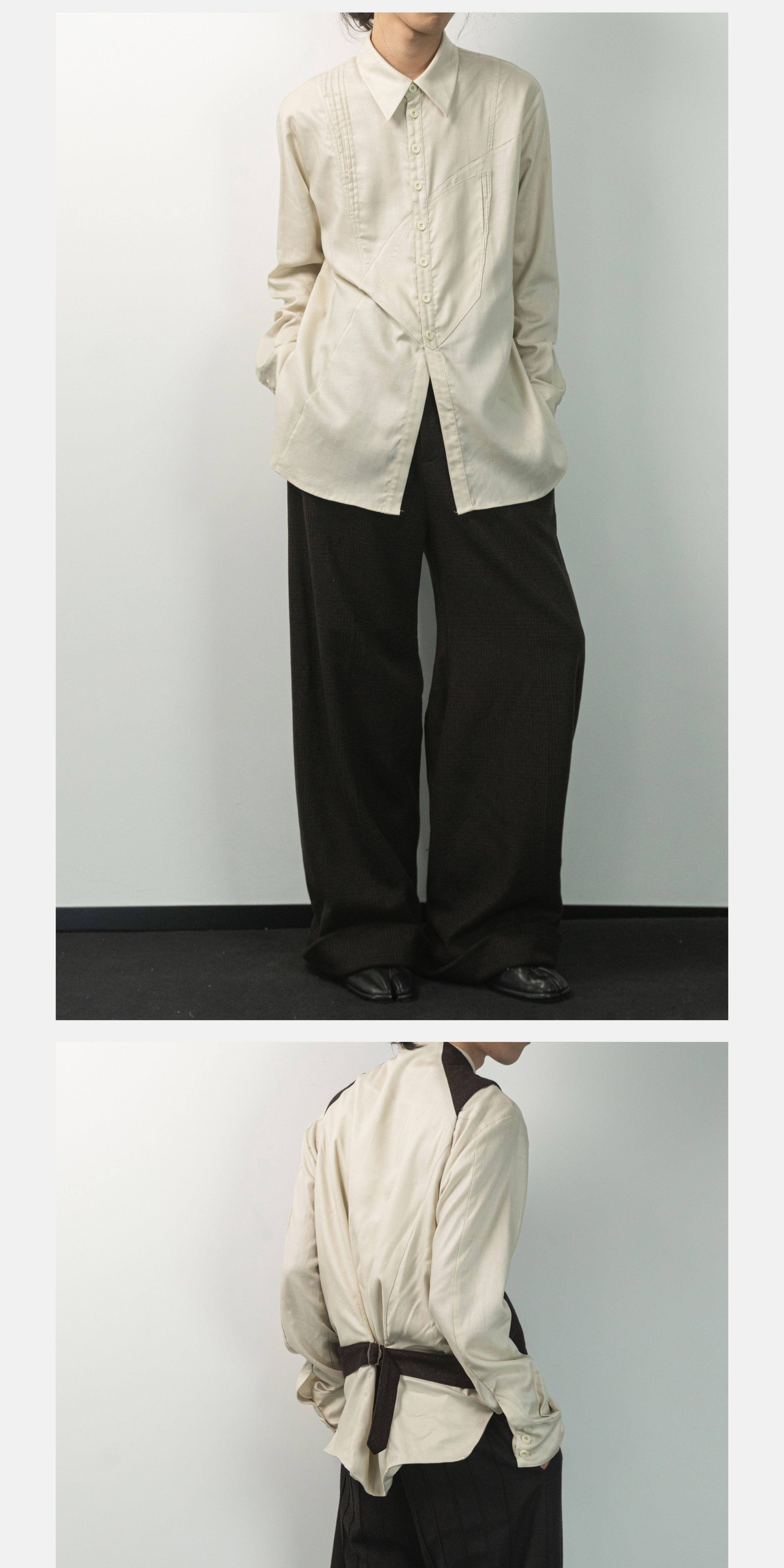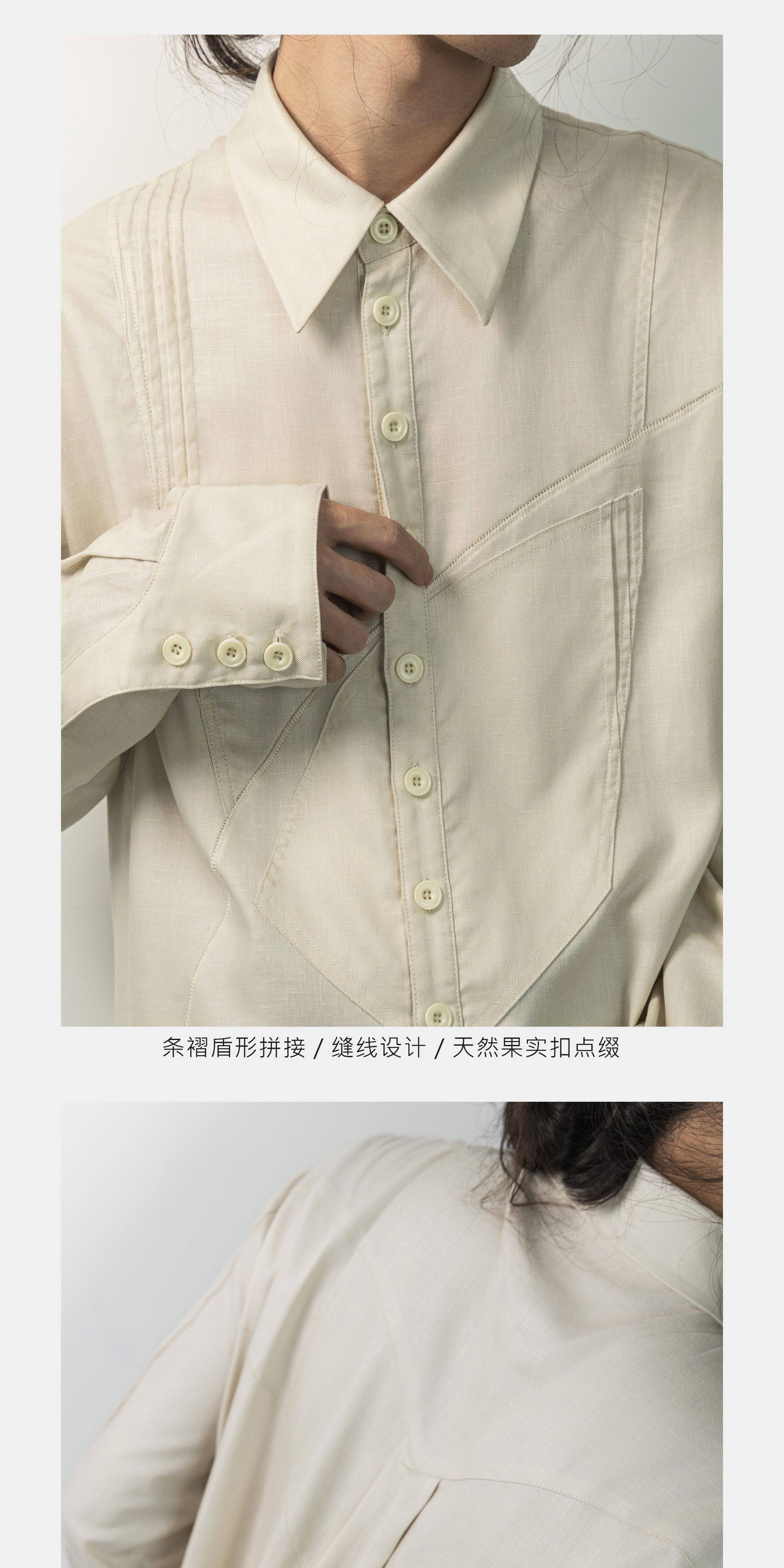 Lingya ILNya — "Moon Sea / White Temples" Moonlight-Shimmer Patchwork-Stitched Long-Sleeve Shirt