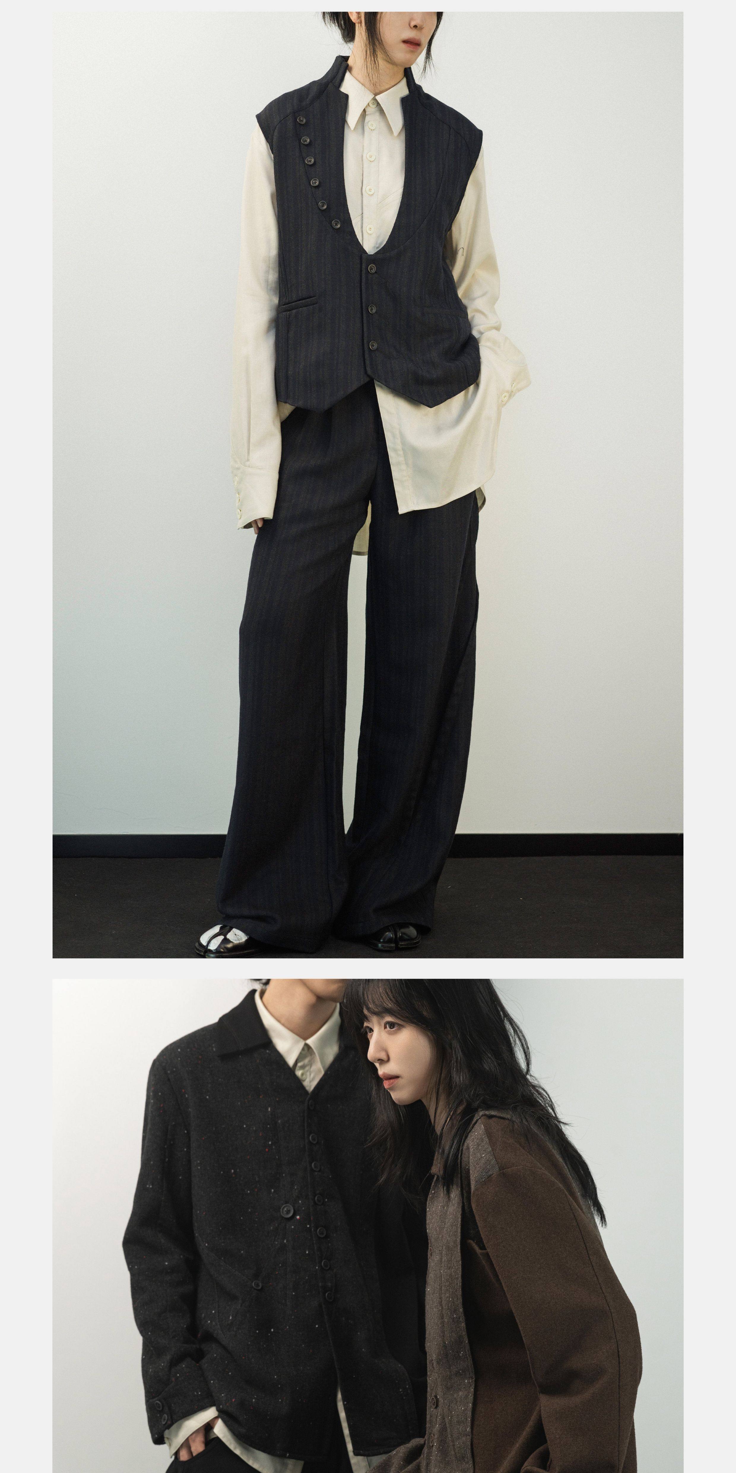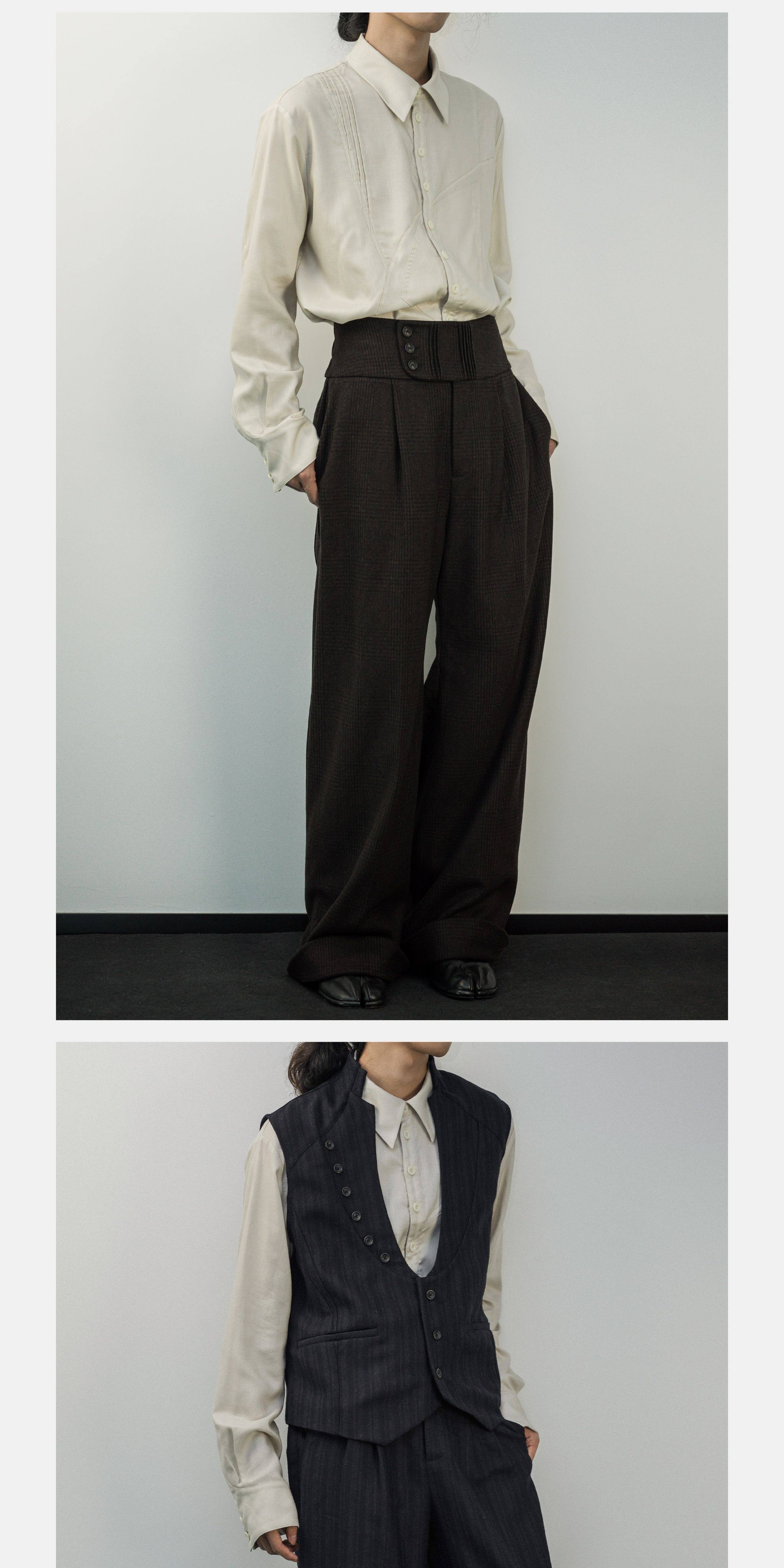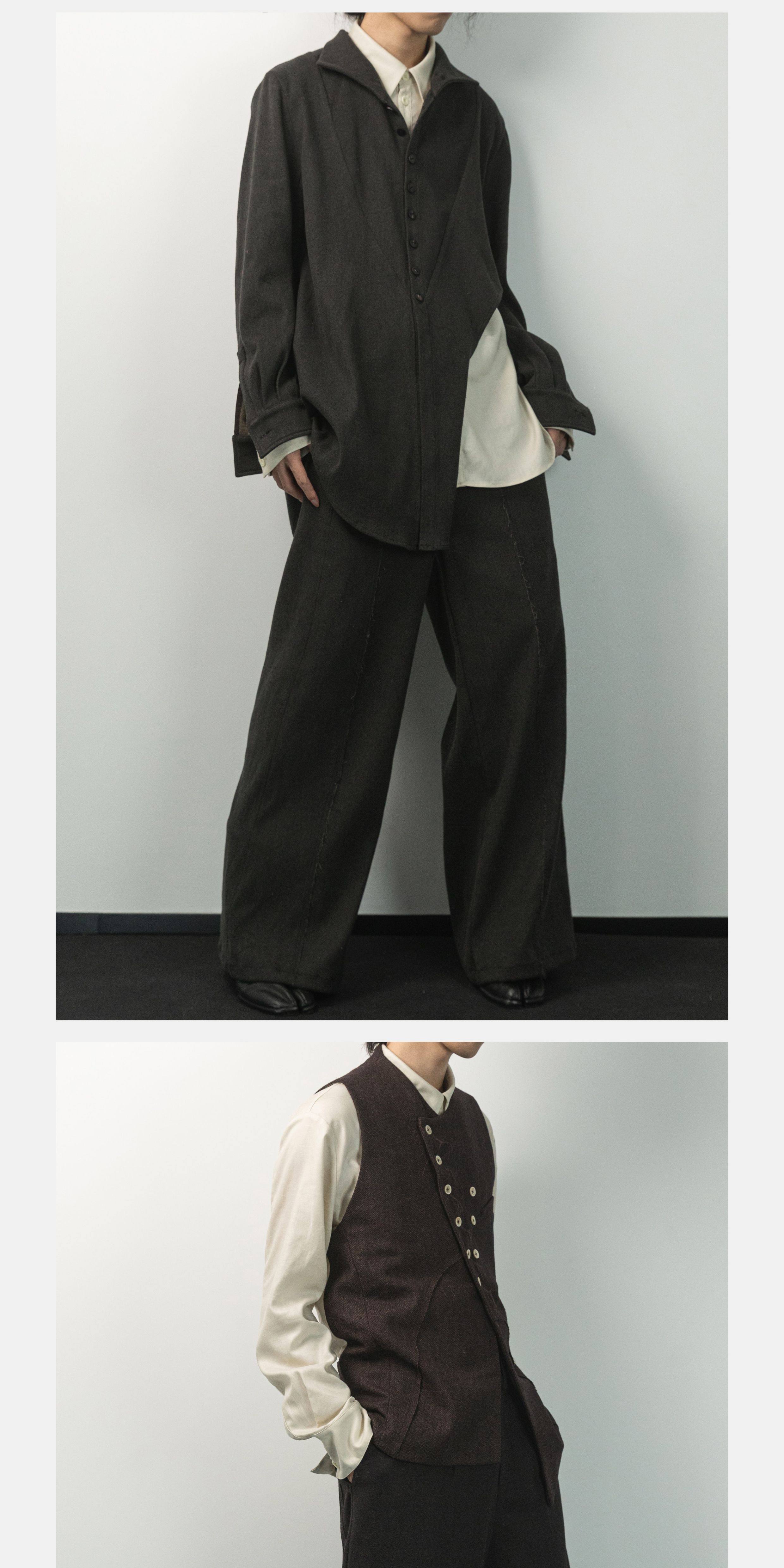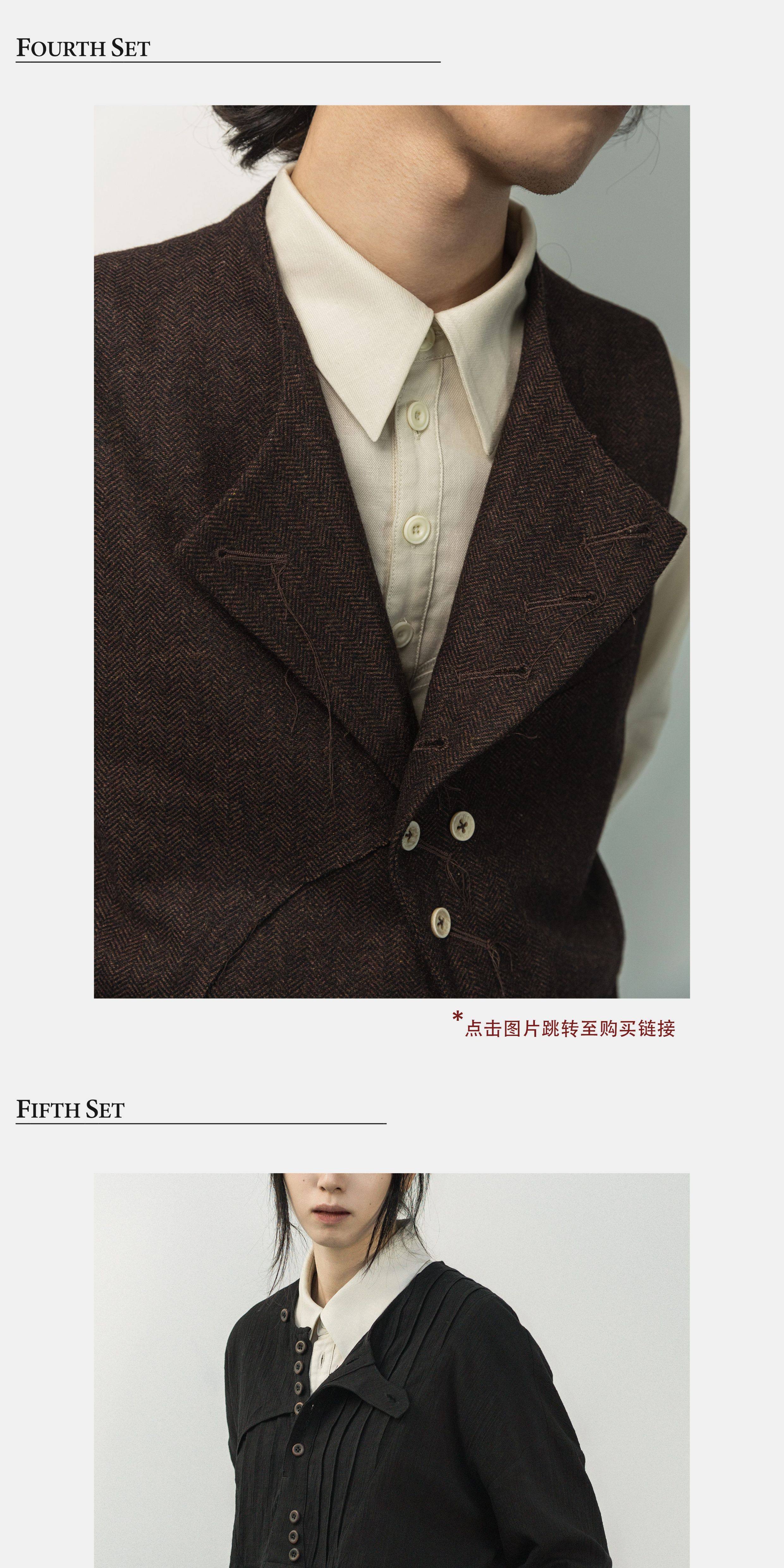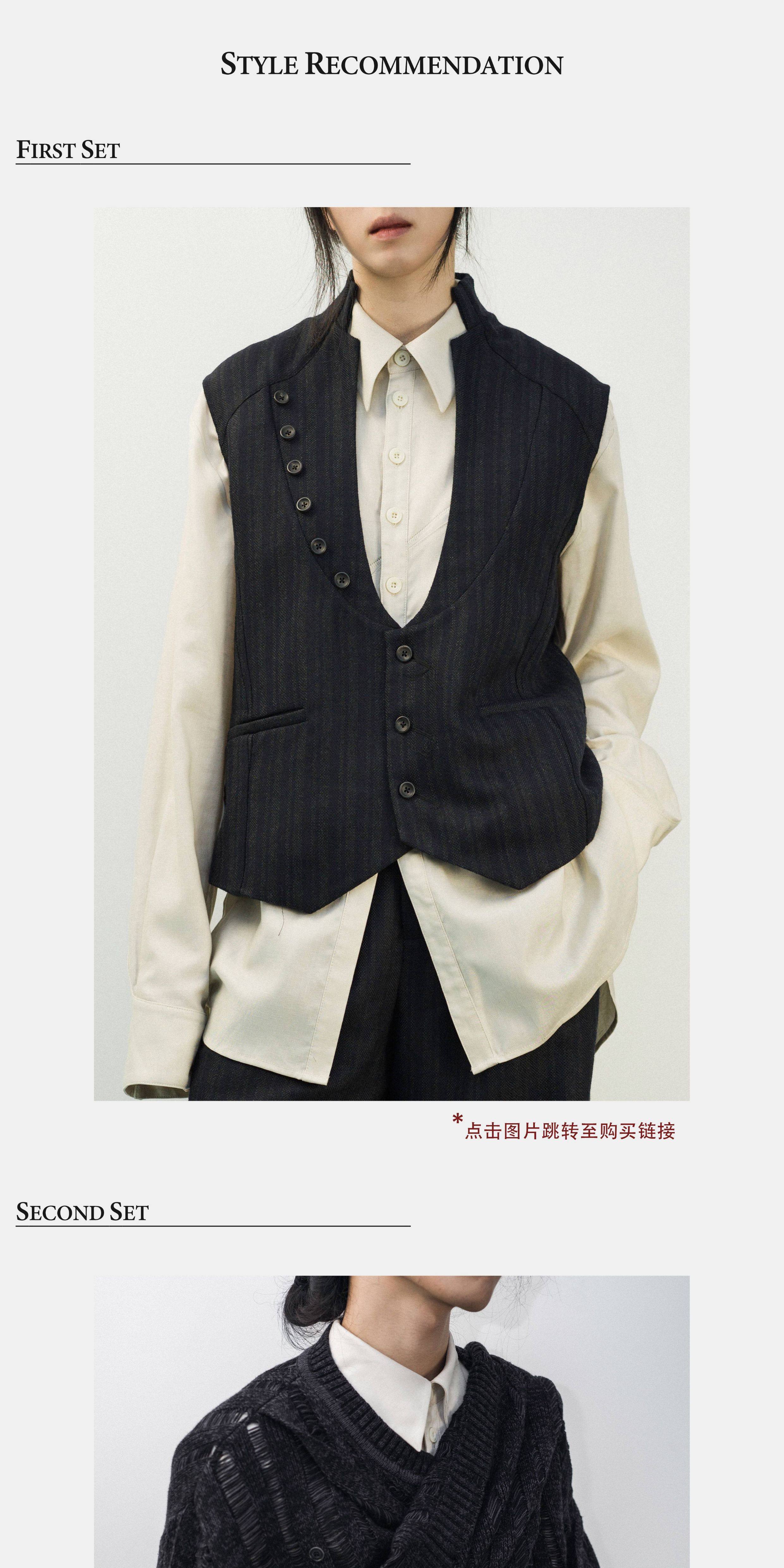 Lingya ILNya — "Moon Sea / White Temples" Moonlight-Shimmer Patchwork-Stitched Long-Sleeve Shirt