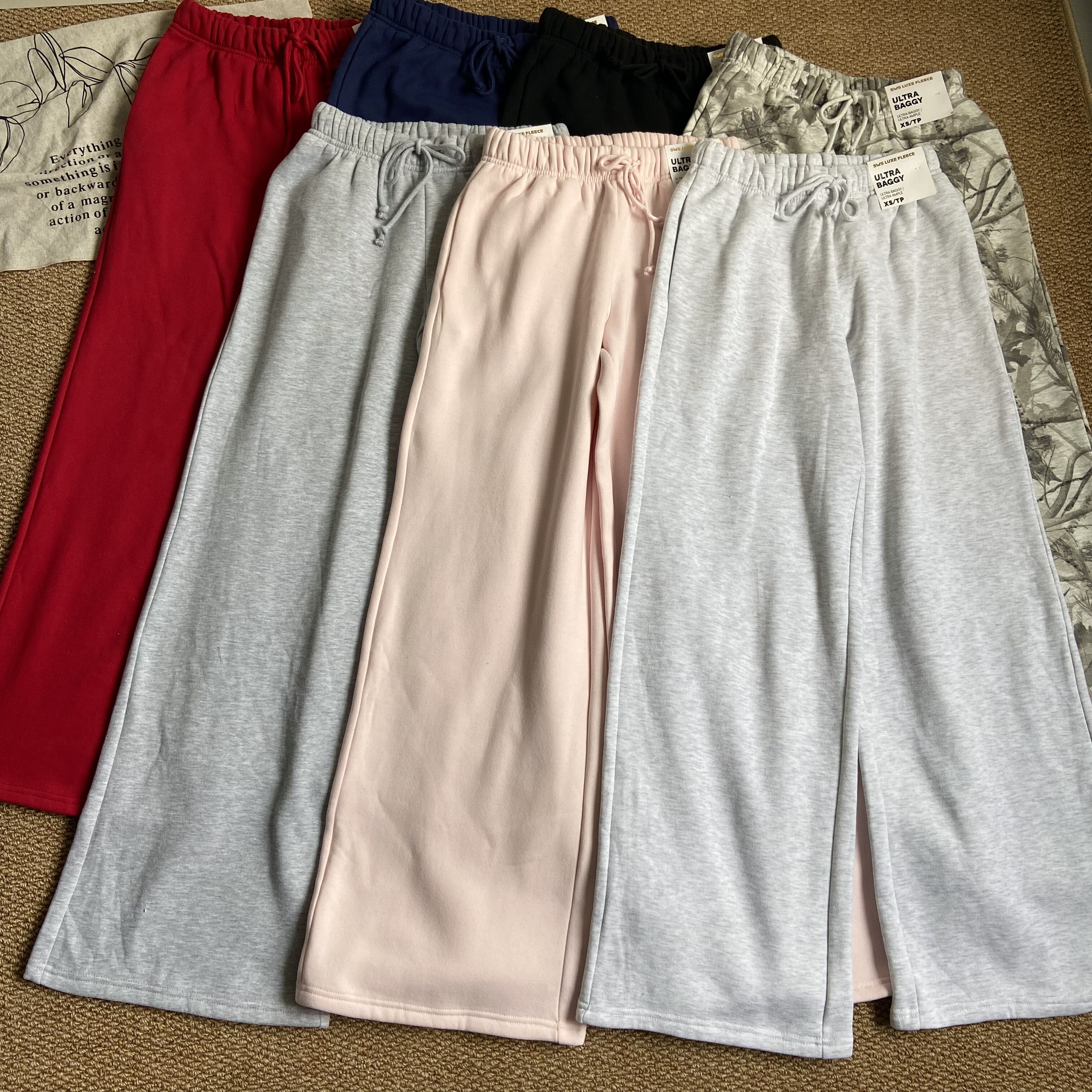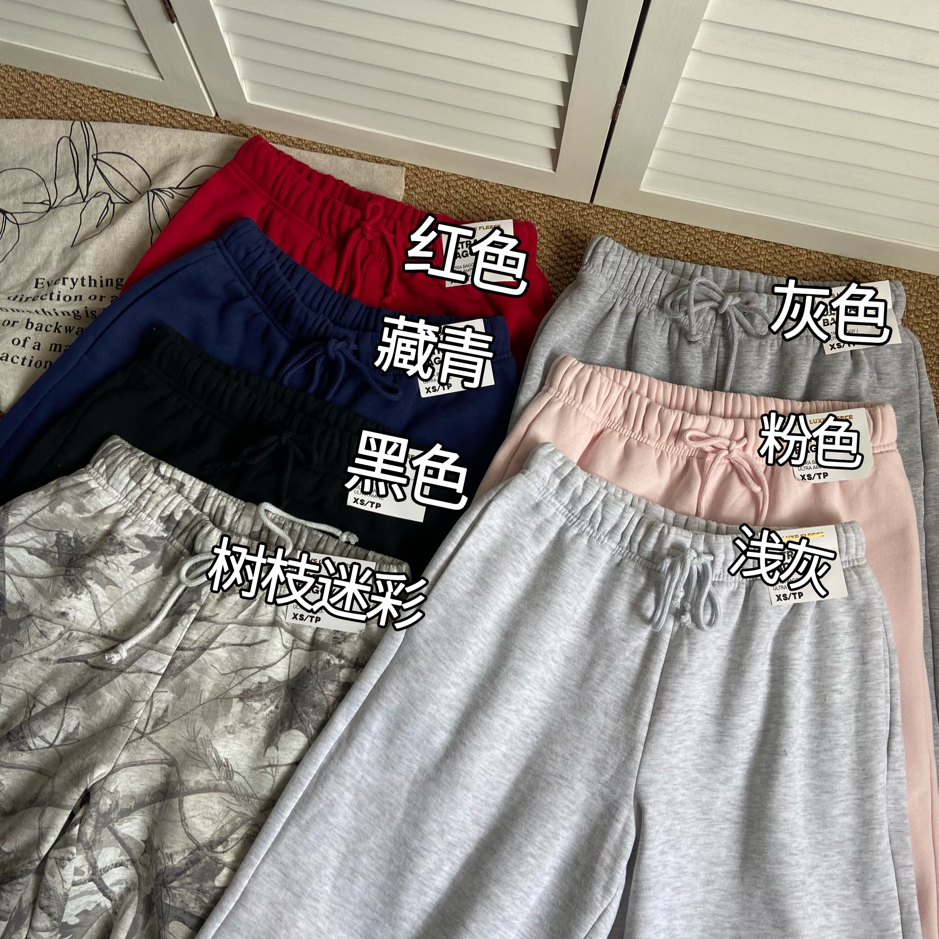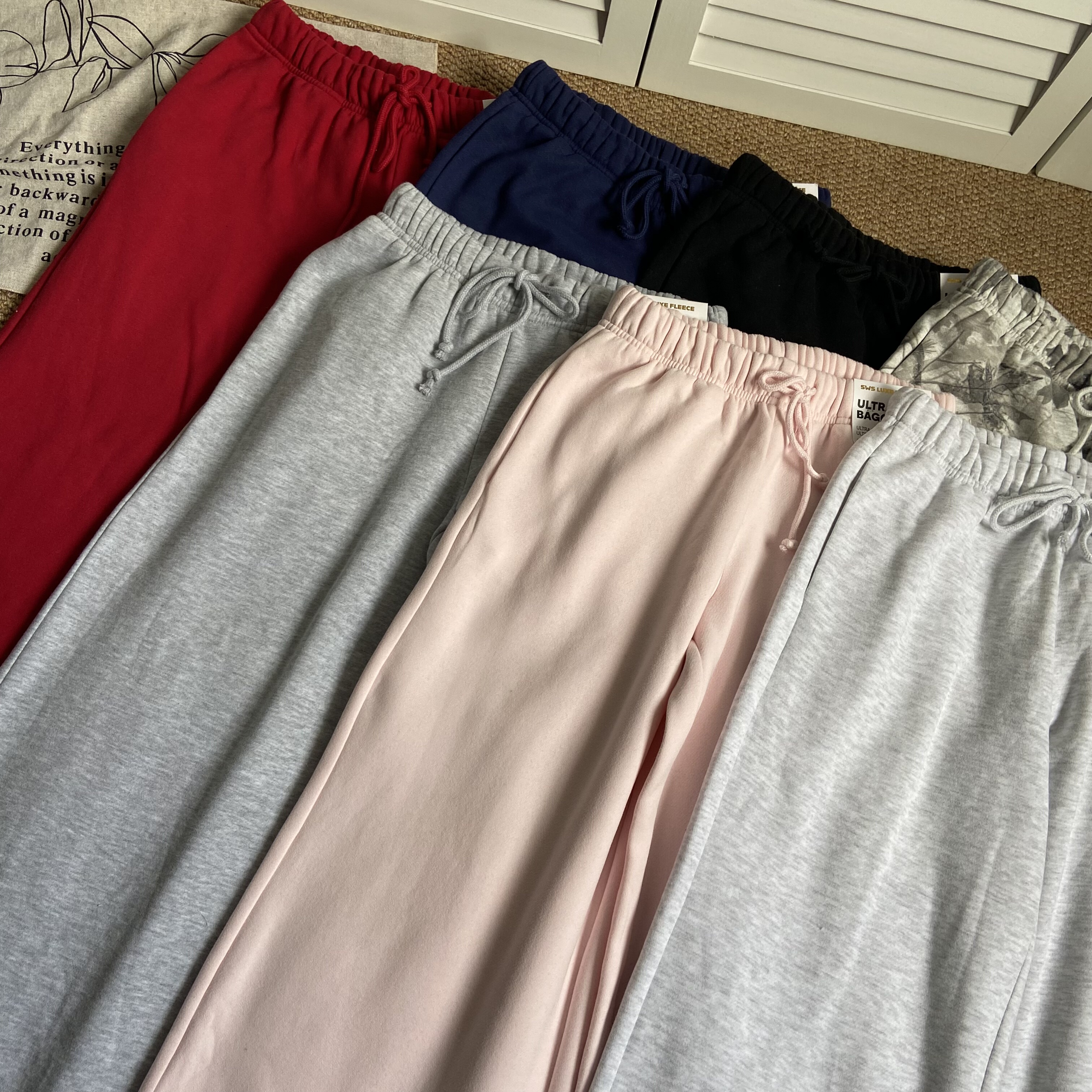 Foreign Trade American-Style Women's Sweatpants for Autumn and Winter, Loose Solid Color Drawstring Elastic Waist Wide-Leg Casual Straight-Leg Sweatpants