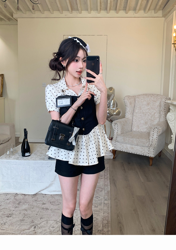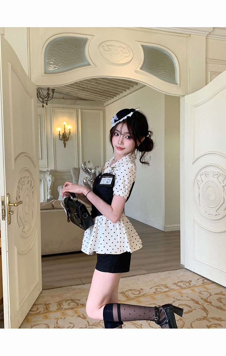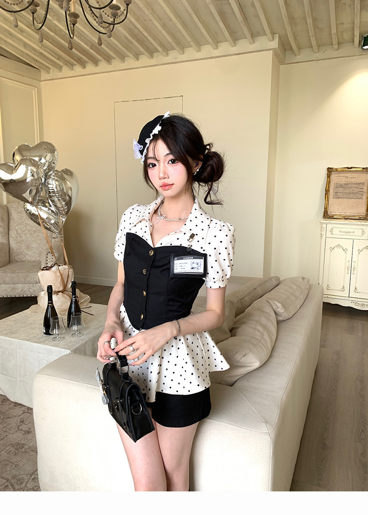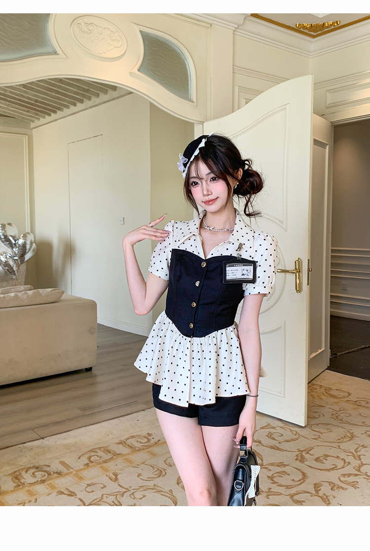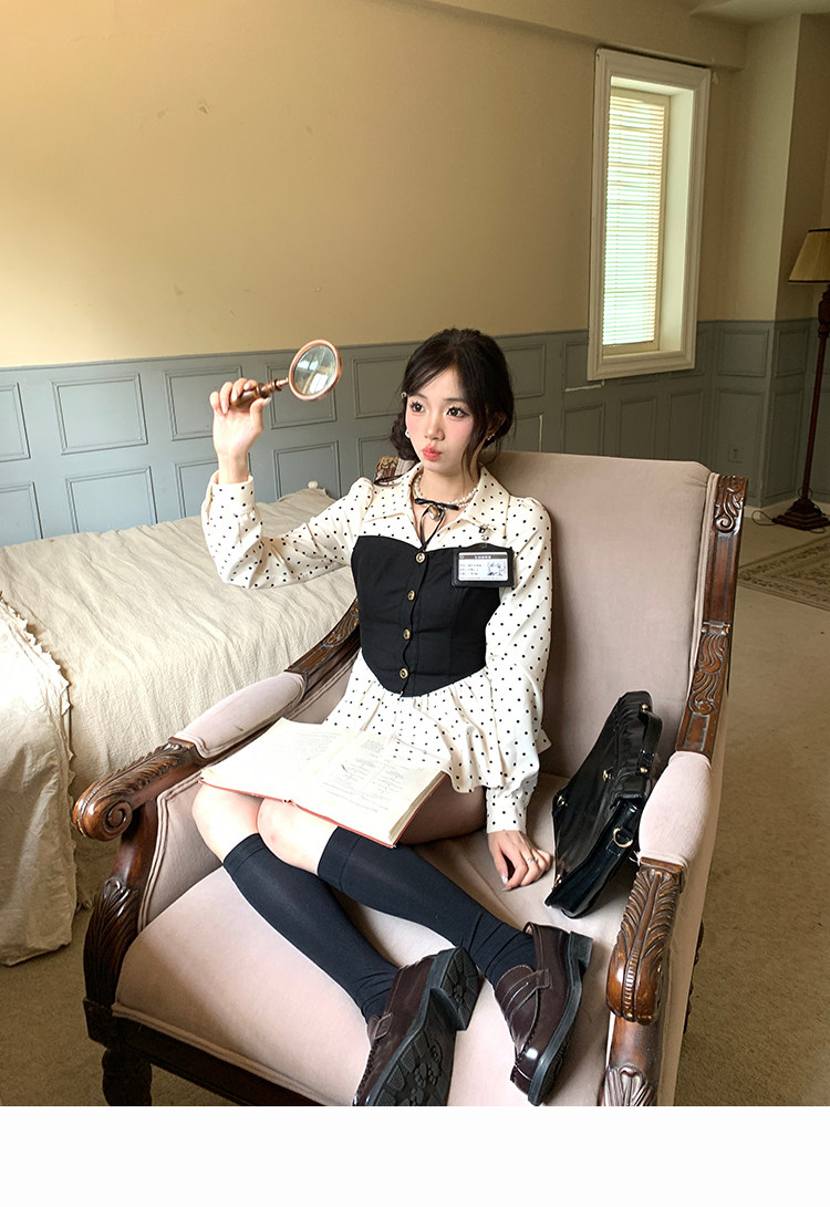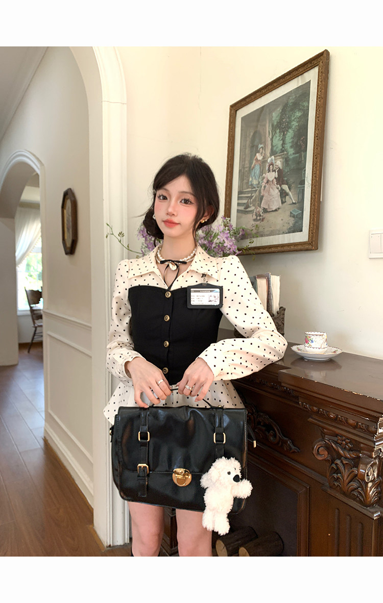 Fabric Pig Cream Mousse Miu Style Elegant Blouse with Ruffles, Autumn Outfit, Waist-Cinching, Slimming, Color-Blocked Top