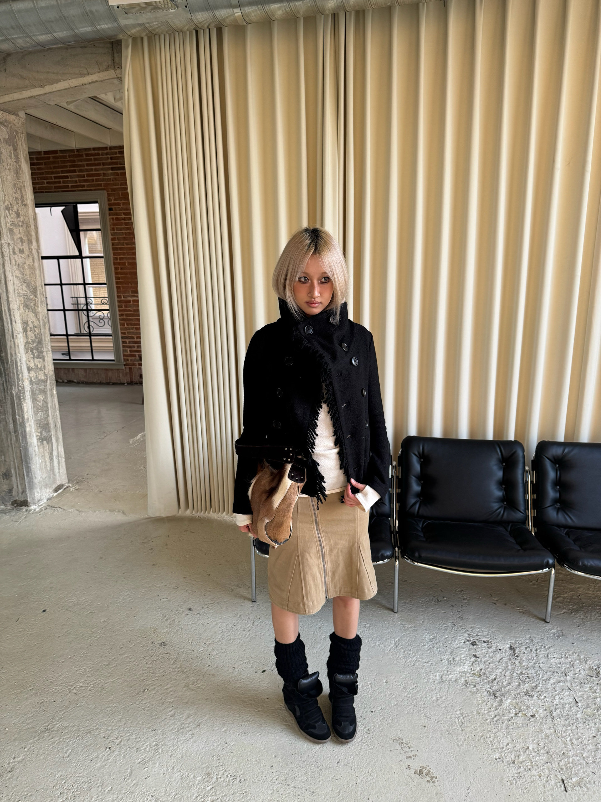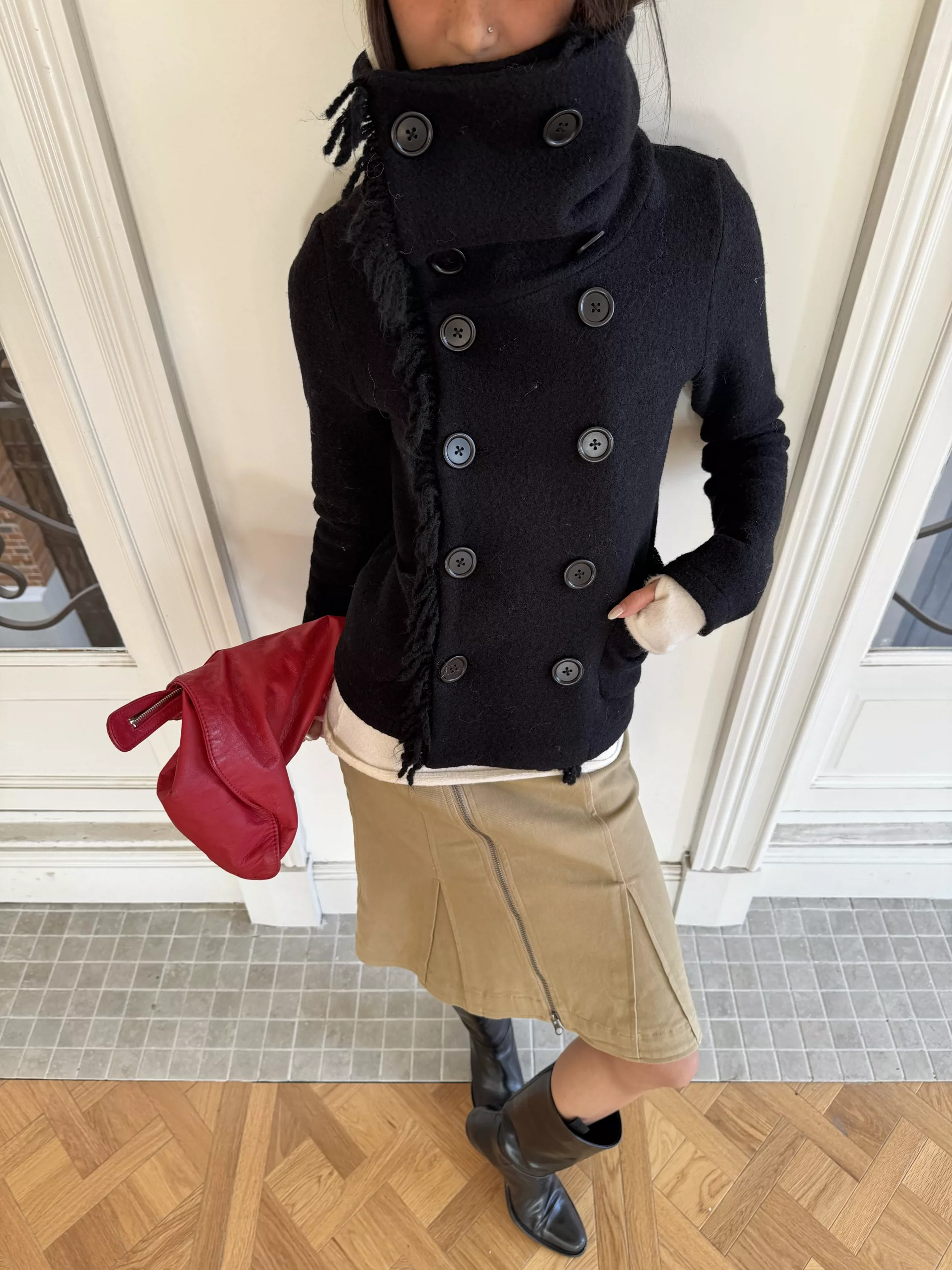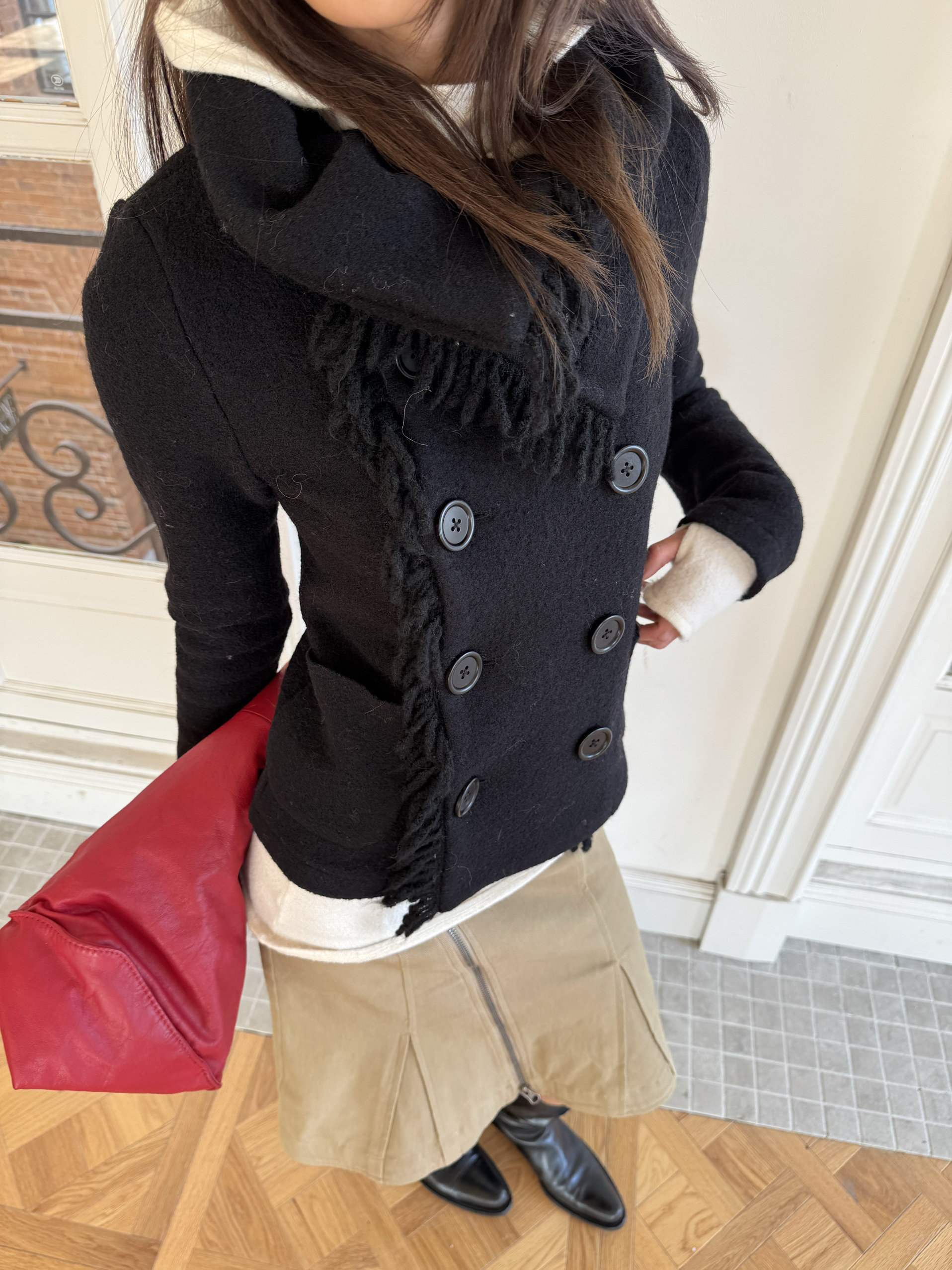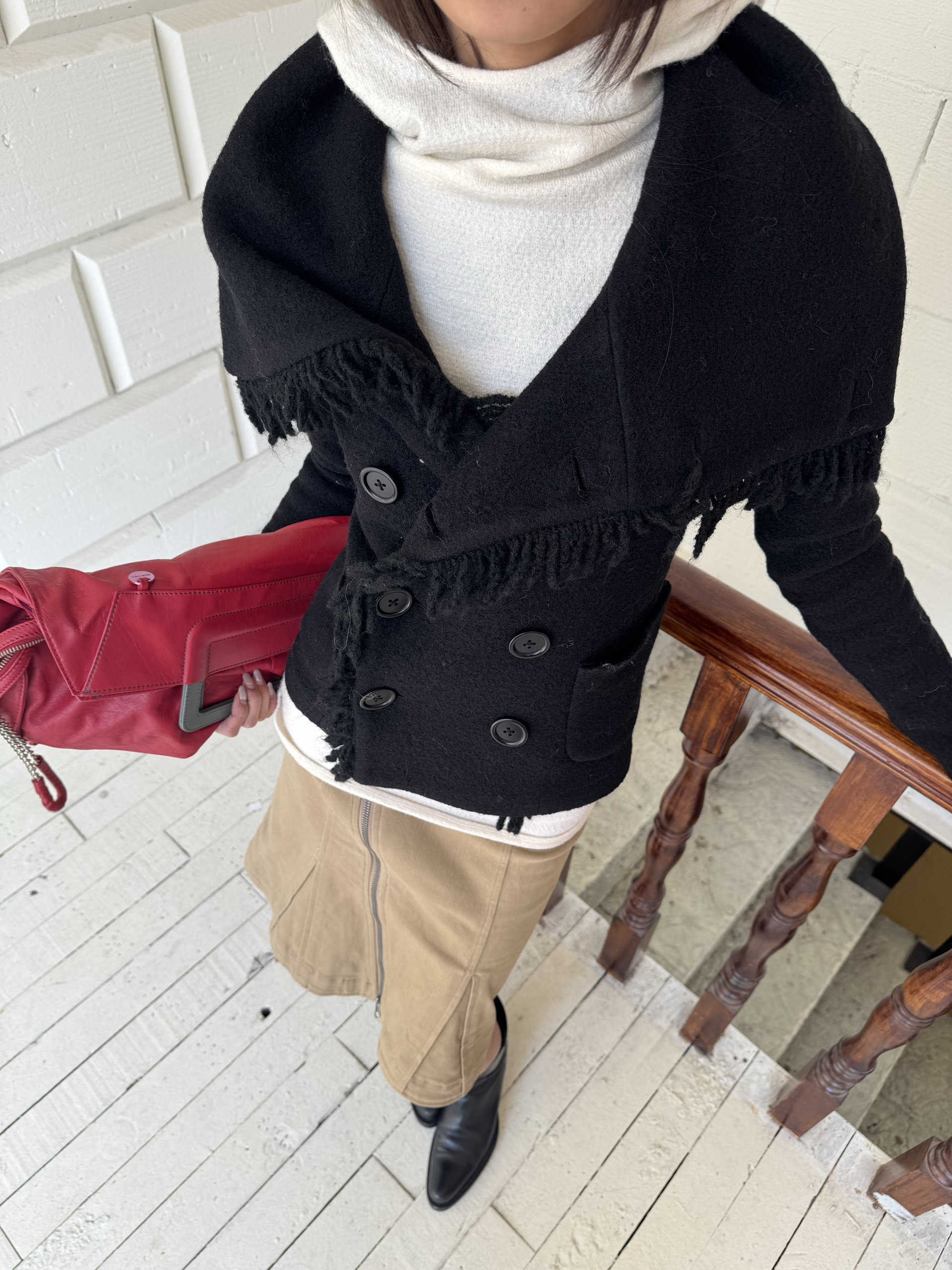 *Andivogels* All-Wool Stand-Up Collar Multi-Wear Slim Fit Fringed Woolen Coat