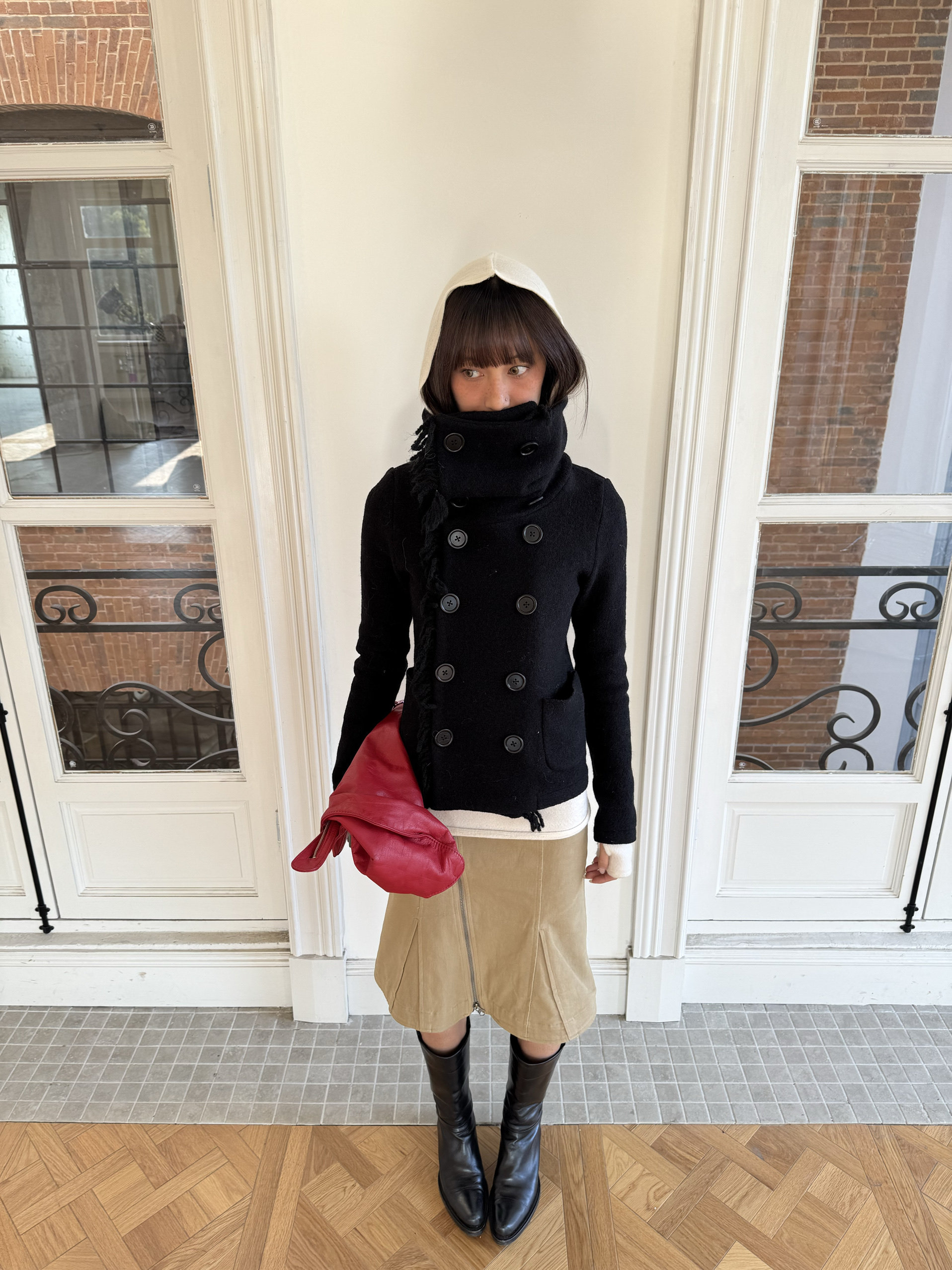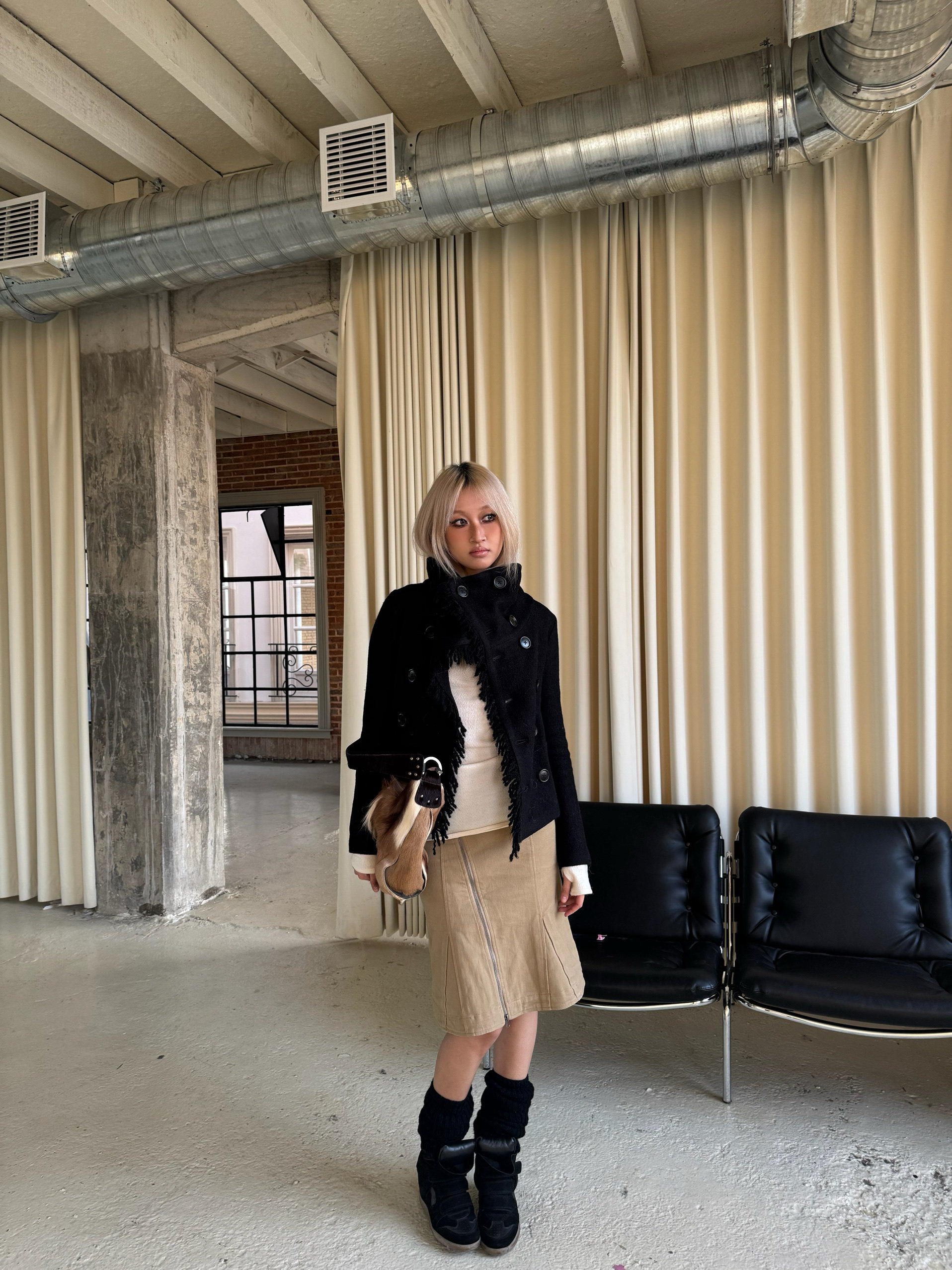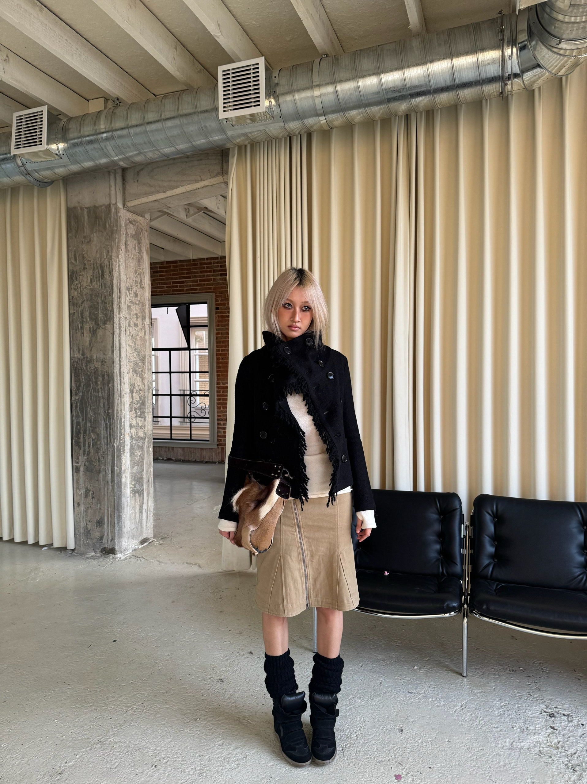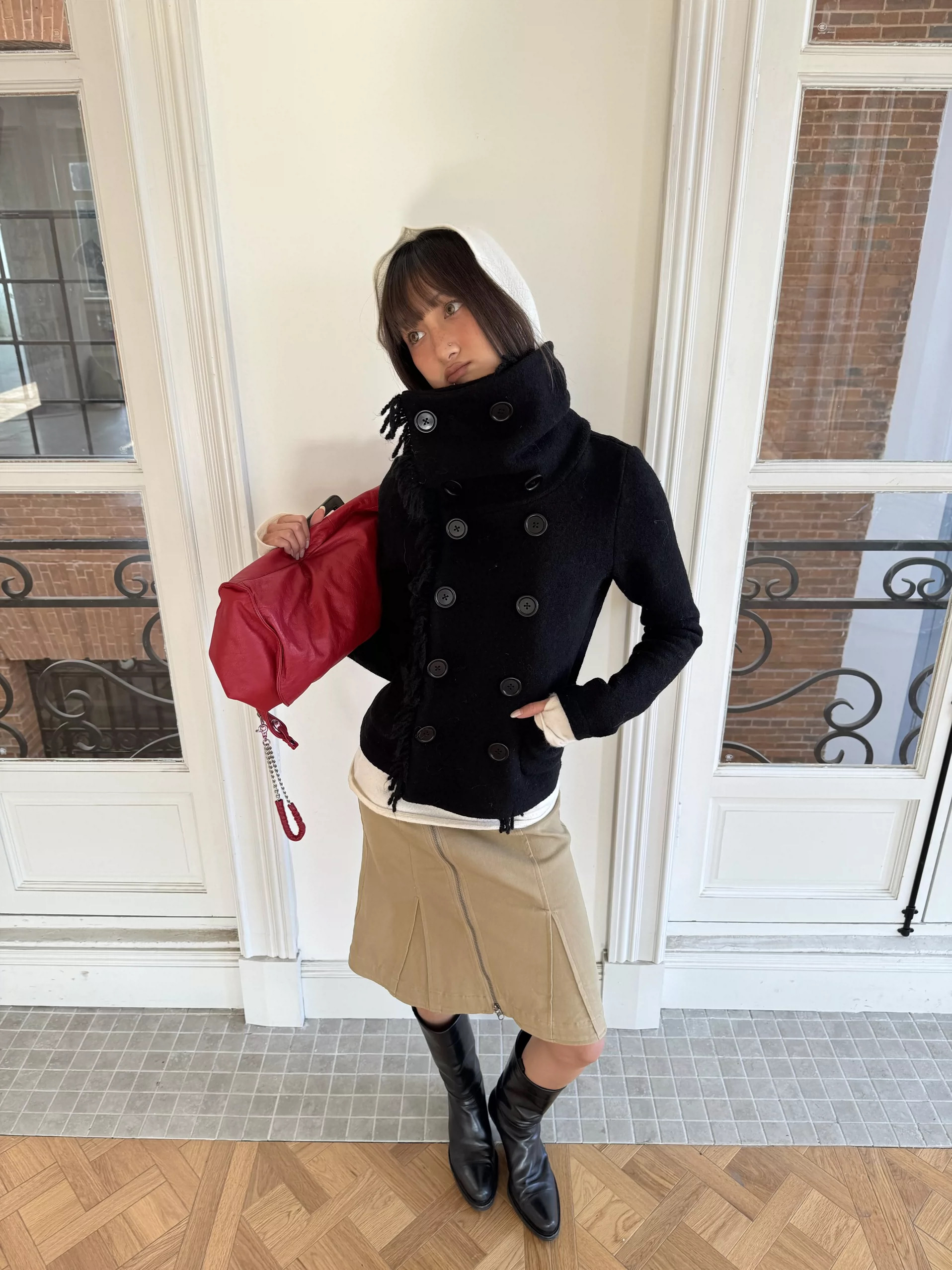 *Andivogels* All-Wool Stand-Up Collar Multi-Wear Slim Fit Fringed Woolen Coat