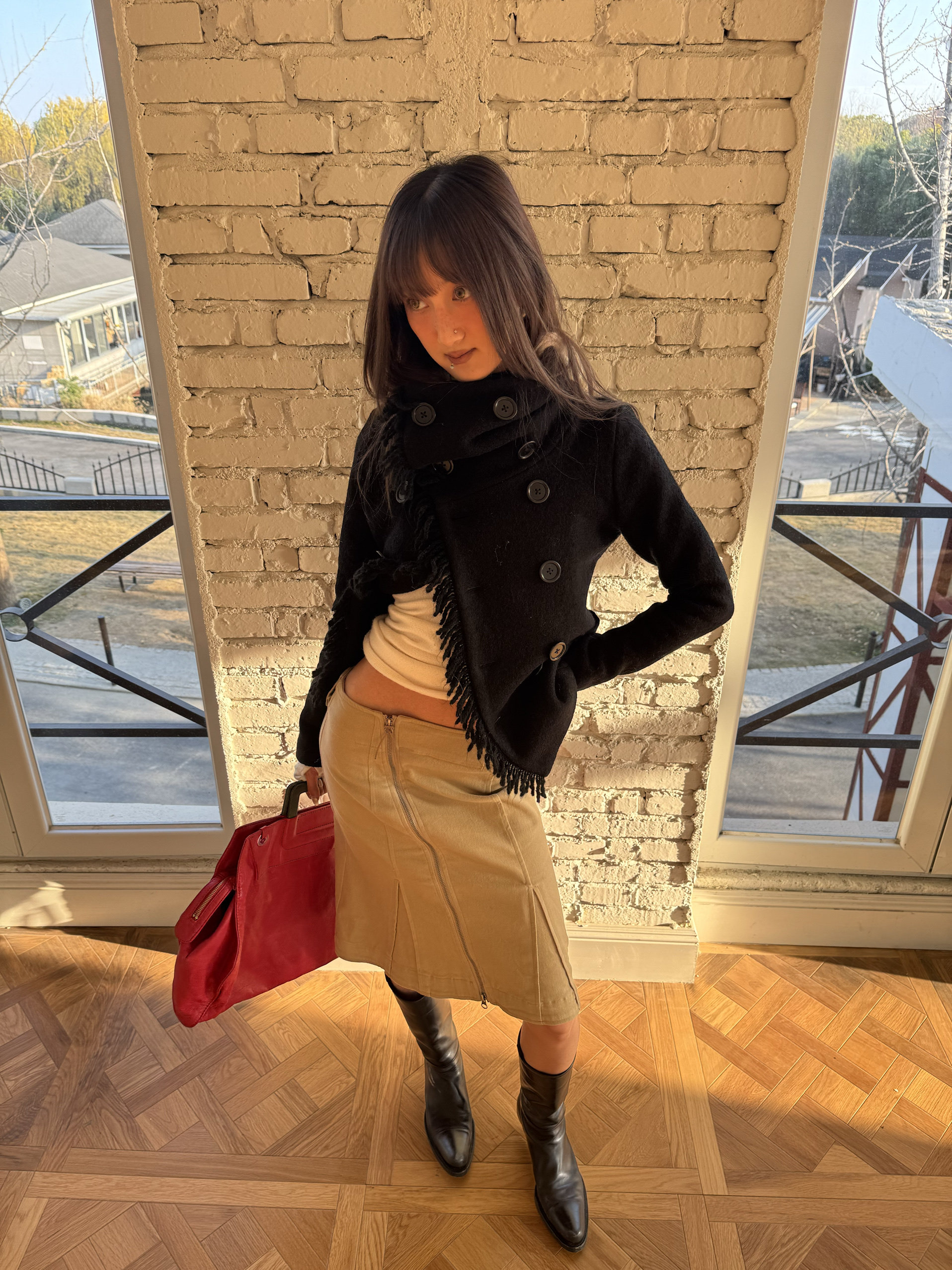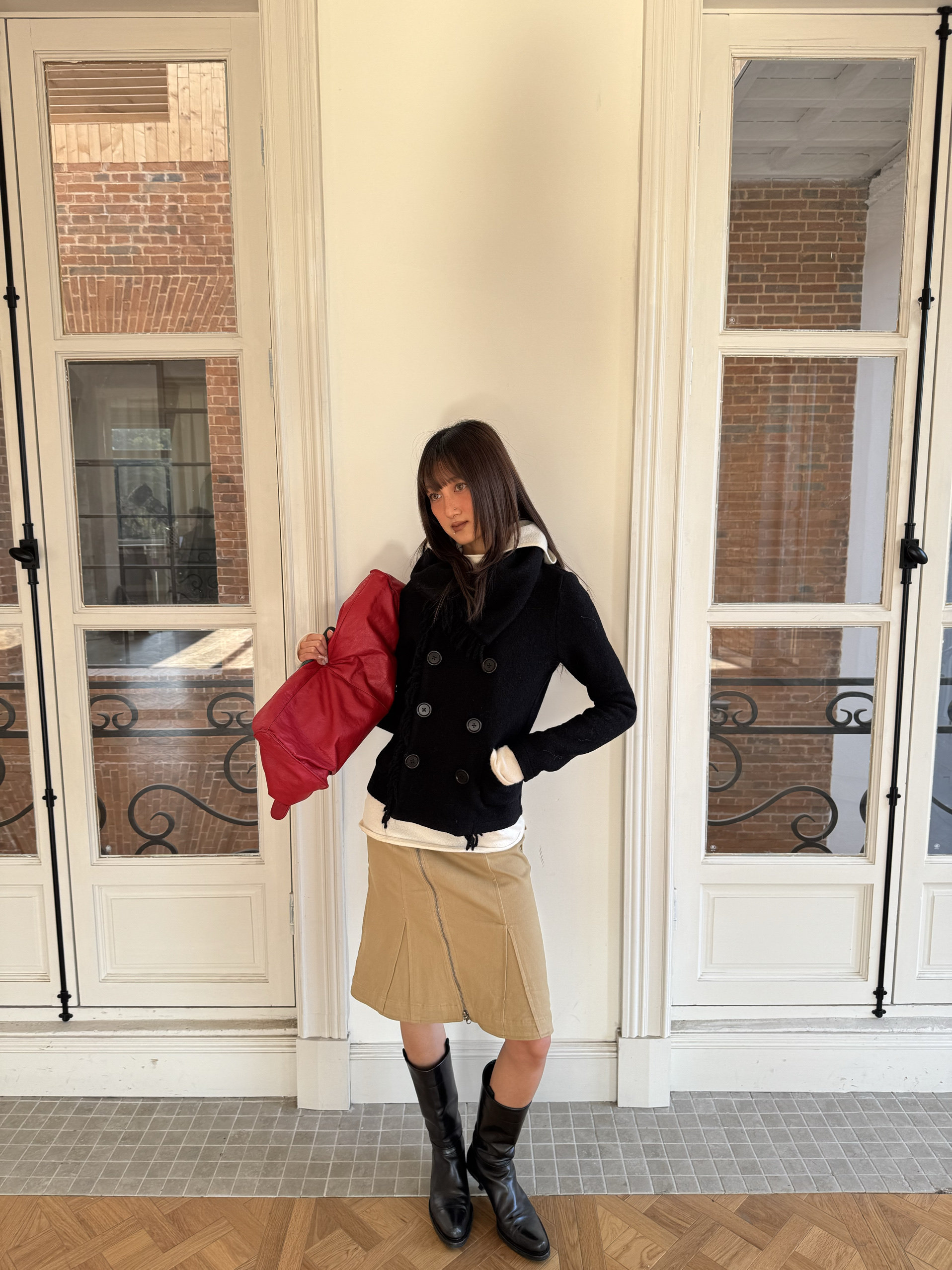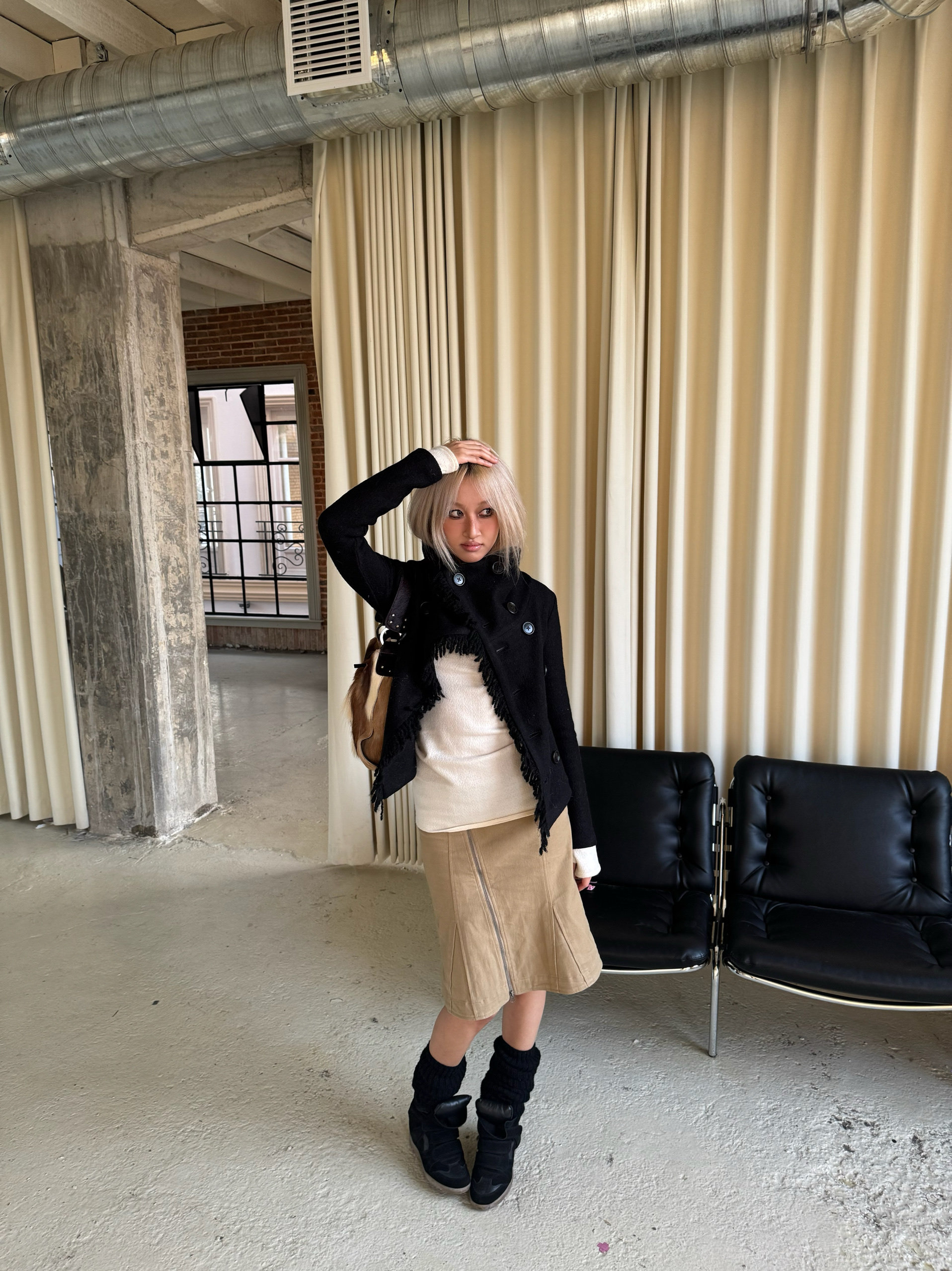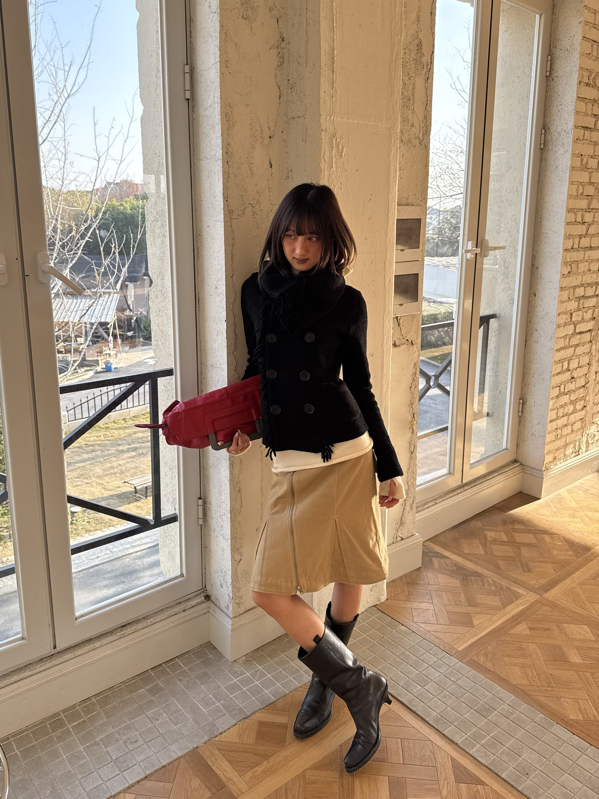 *Andivogels* All-Wool Stand-Up Collar Multi-Wear Slim Fit Fringed Woolen Coat