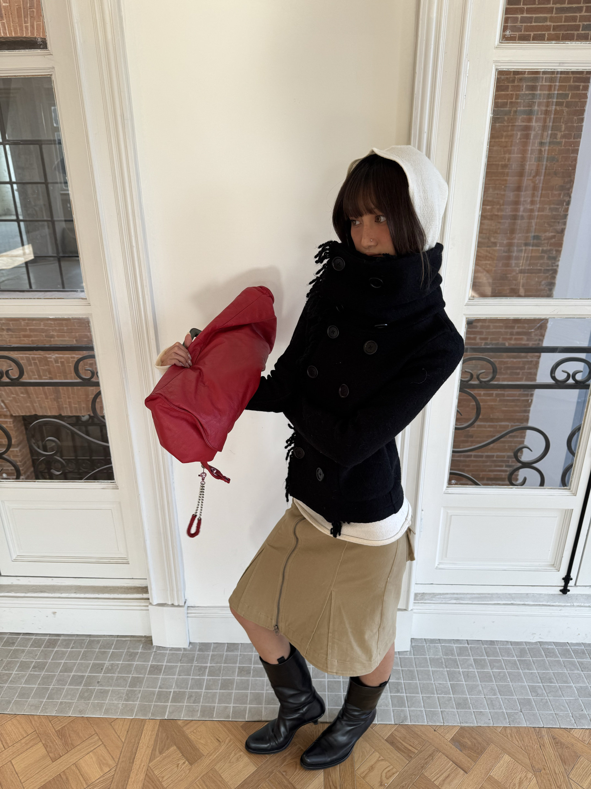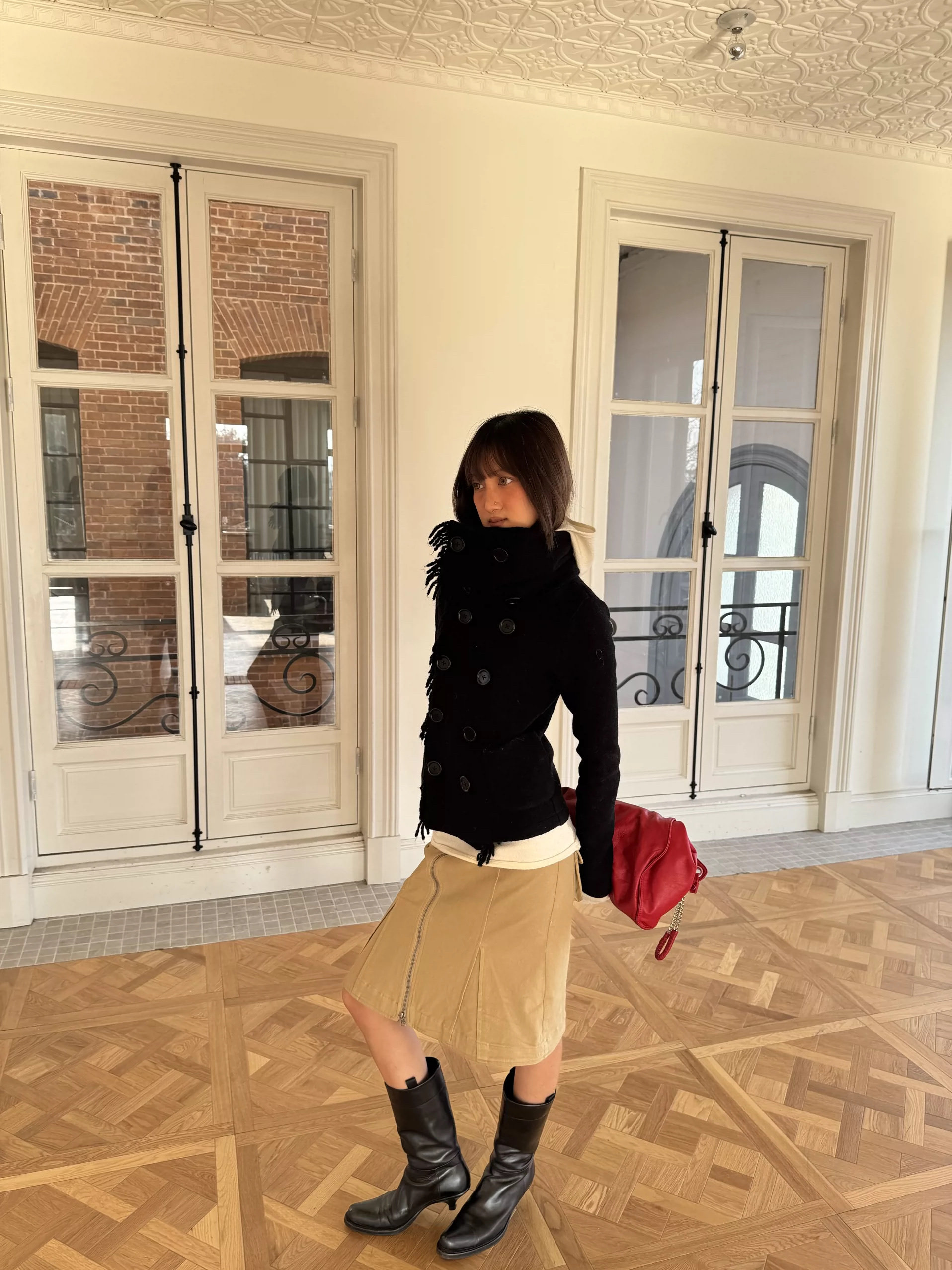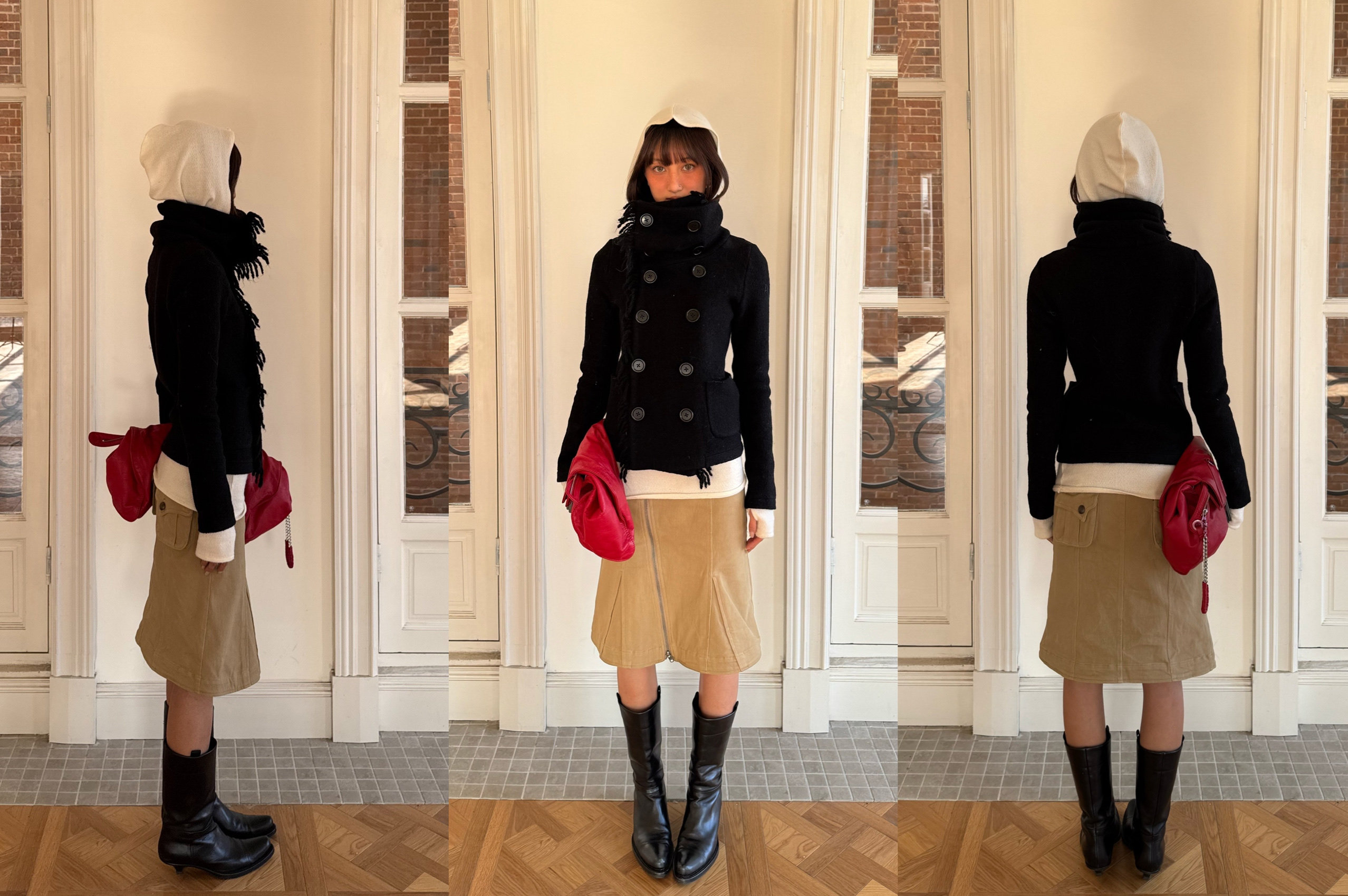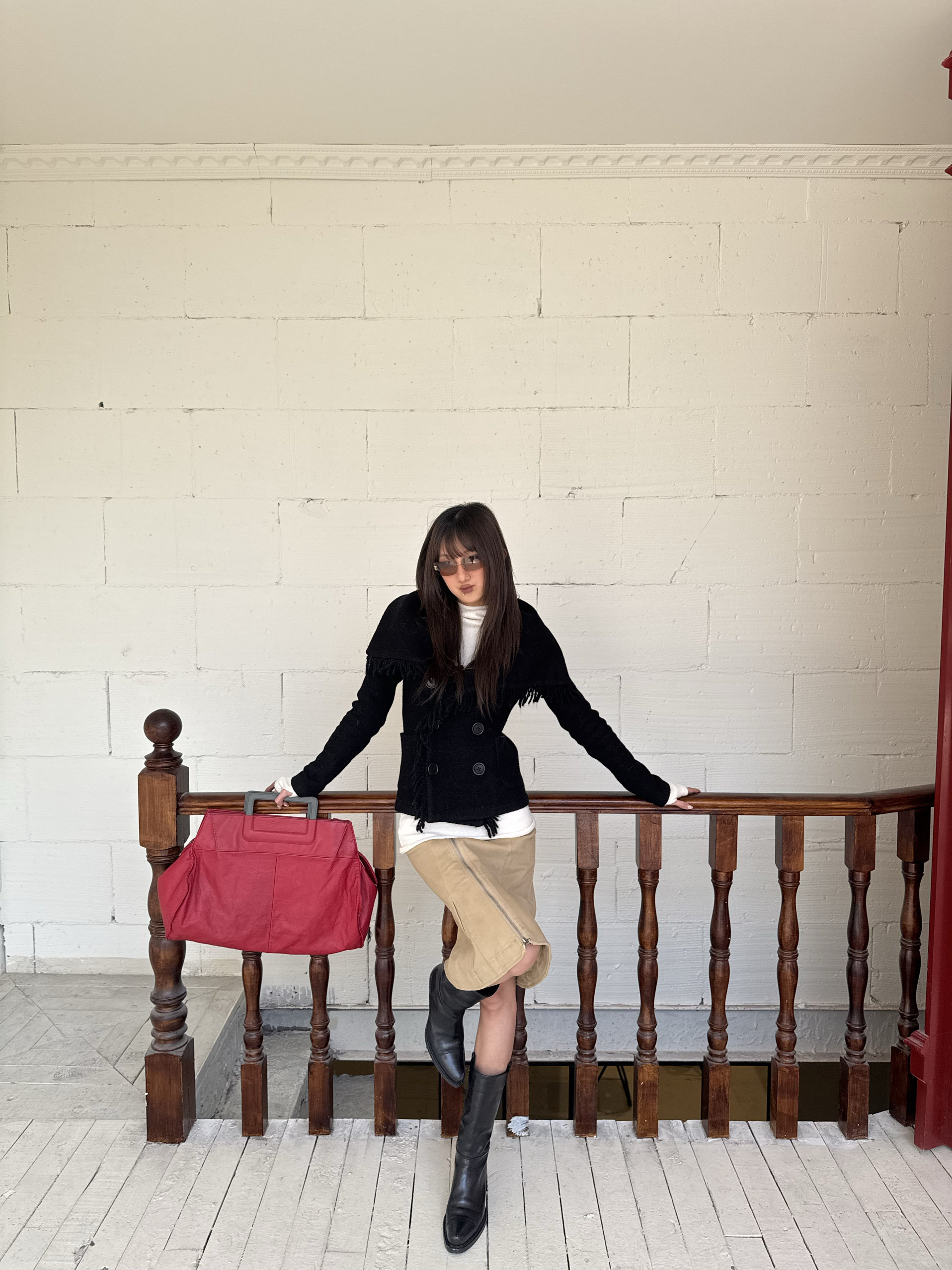 *Andivogels* All-Wool Stand-Up Collar Multi-Wear Slim Fit Fringed Woolen Coat