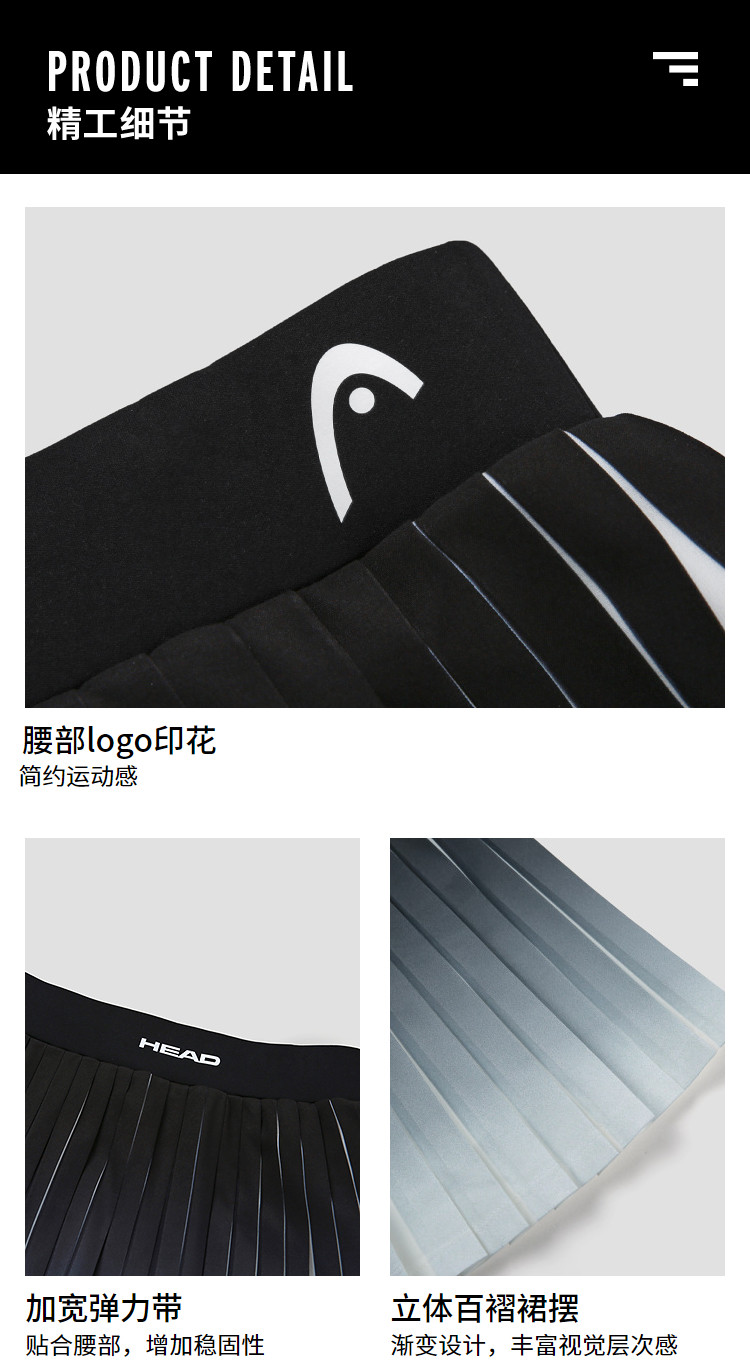 [Anti-Exposure] Head Tennis Sports Skirt 25 Summer New Gradient Lightweight Breathable Pleated Skirt for Women