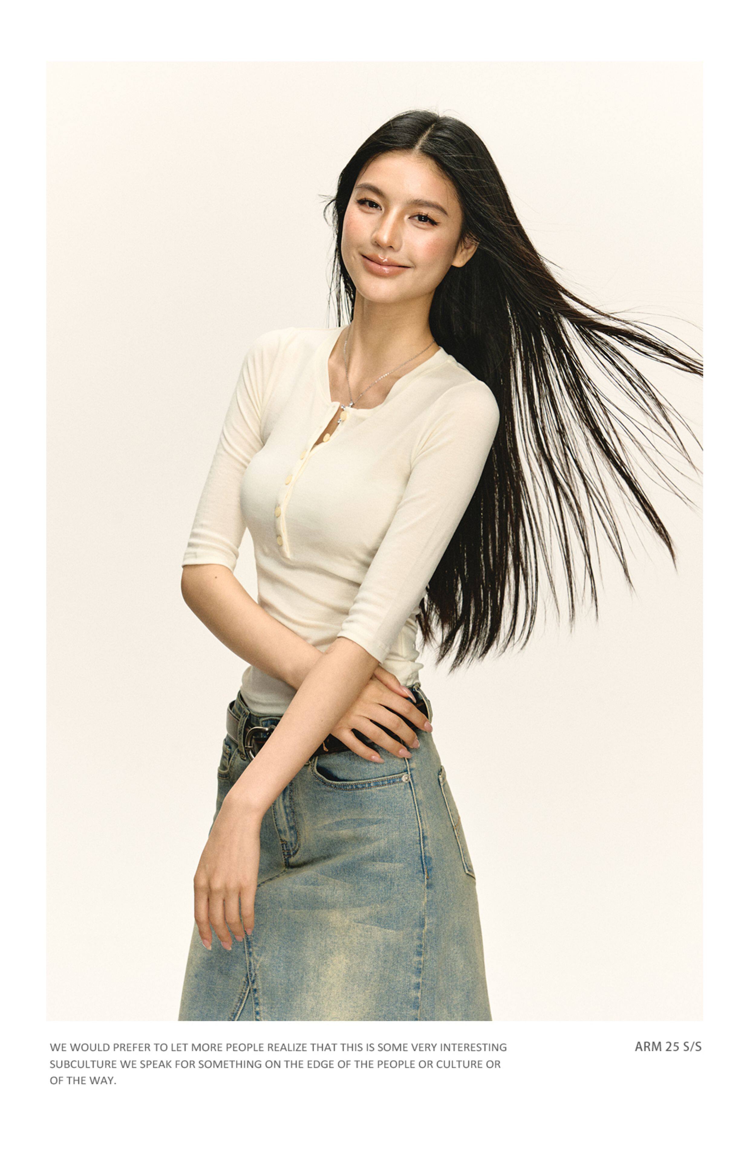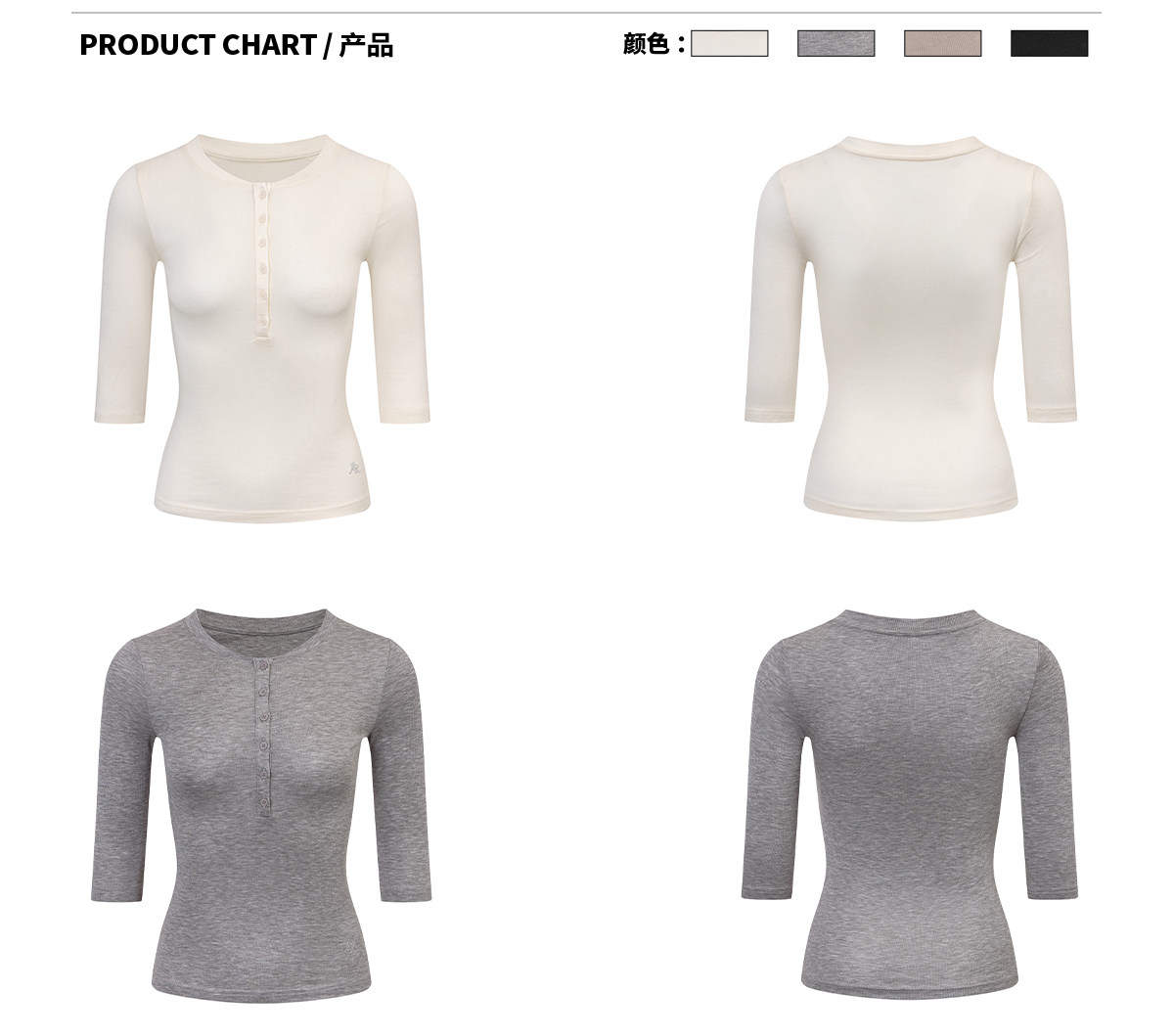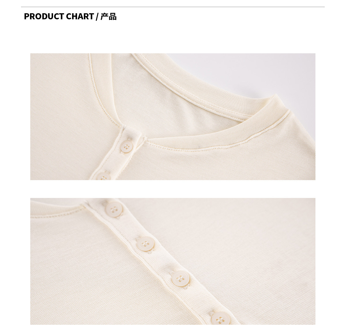 Ariseism American Retro Henry Collar Slim Long-Sleeve T-Shirt for Women, New Autumn Slim-Fit Mid-Sleeve Base Top
