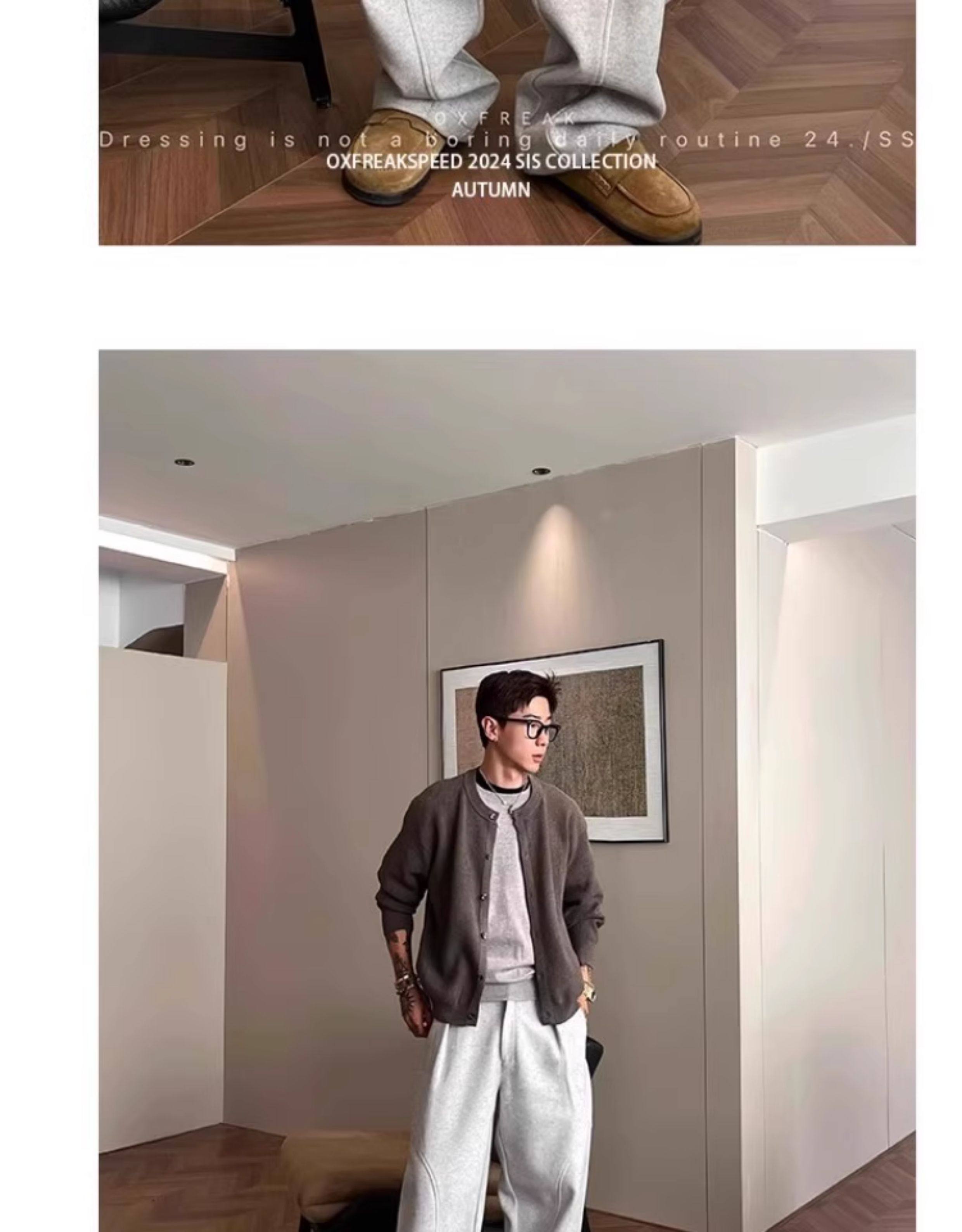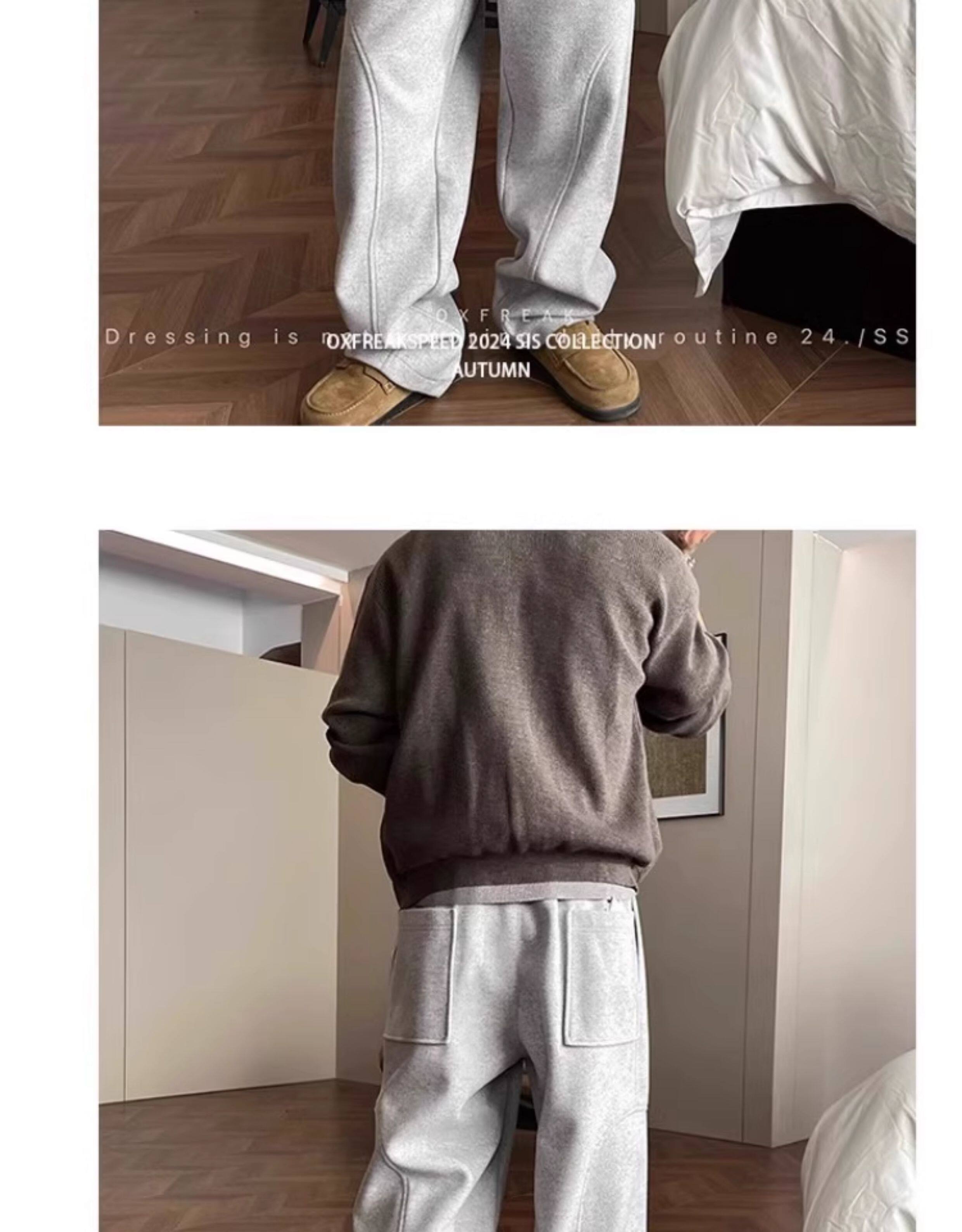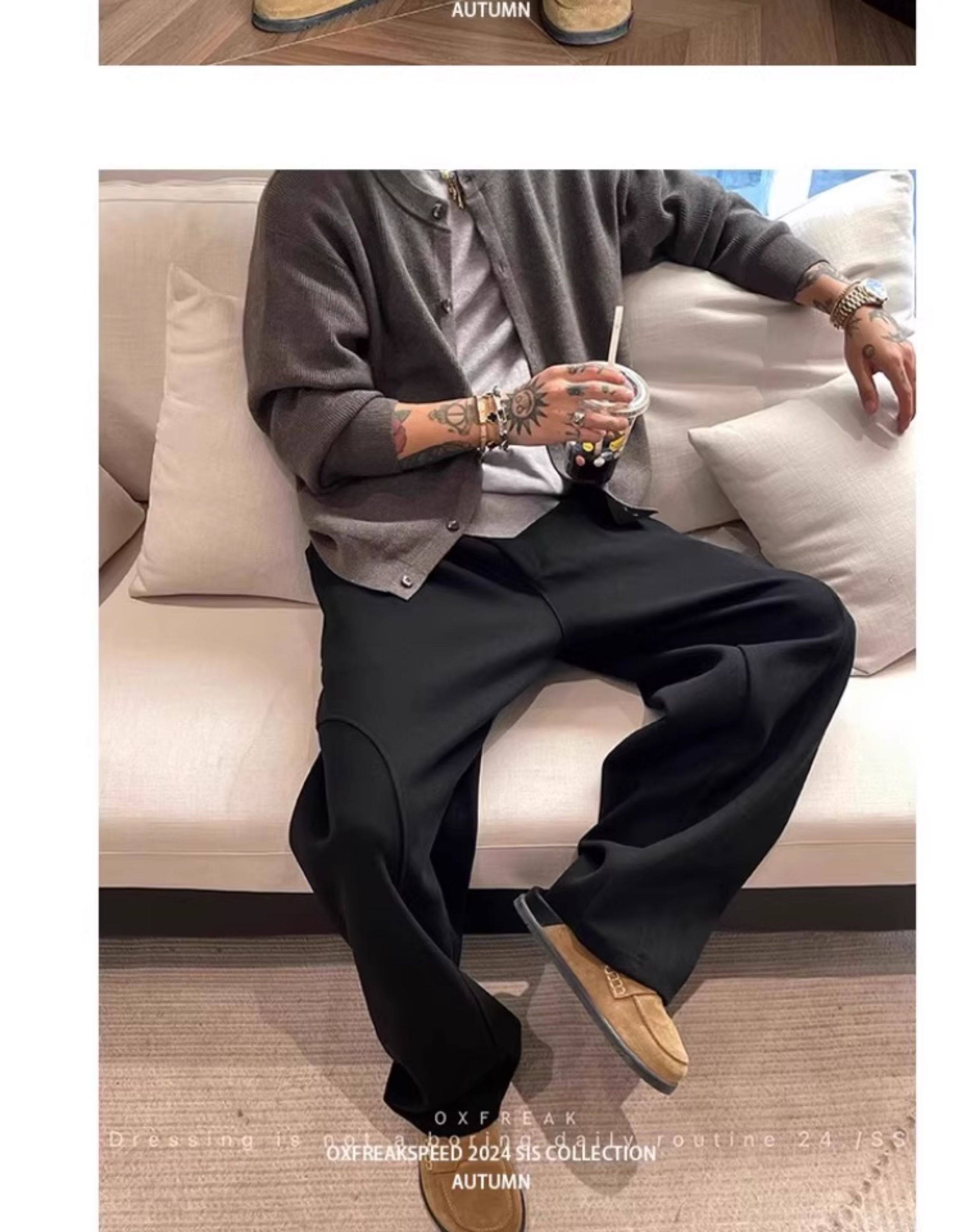 Oxfreak Heavy Knit Casual Pants for Men, Loose Fit, Gray Scimitar Pants with Three-Dimensional Tailoring and Inward Pleats