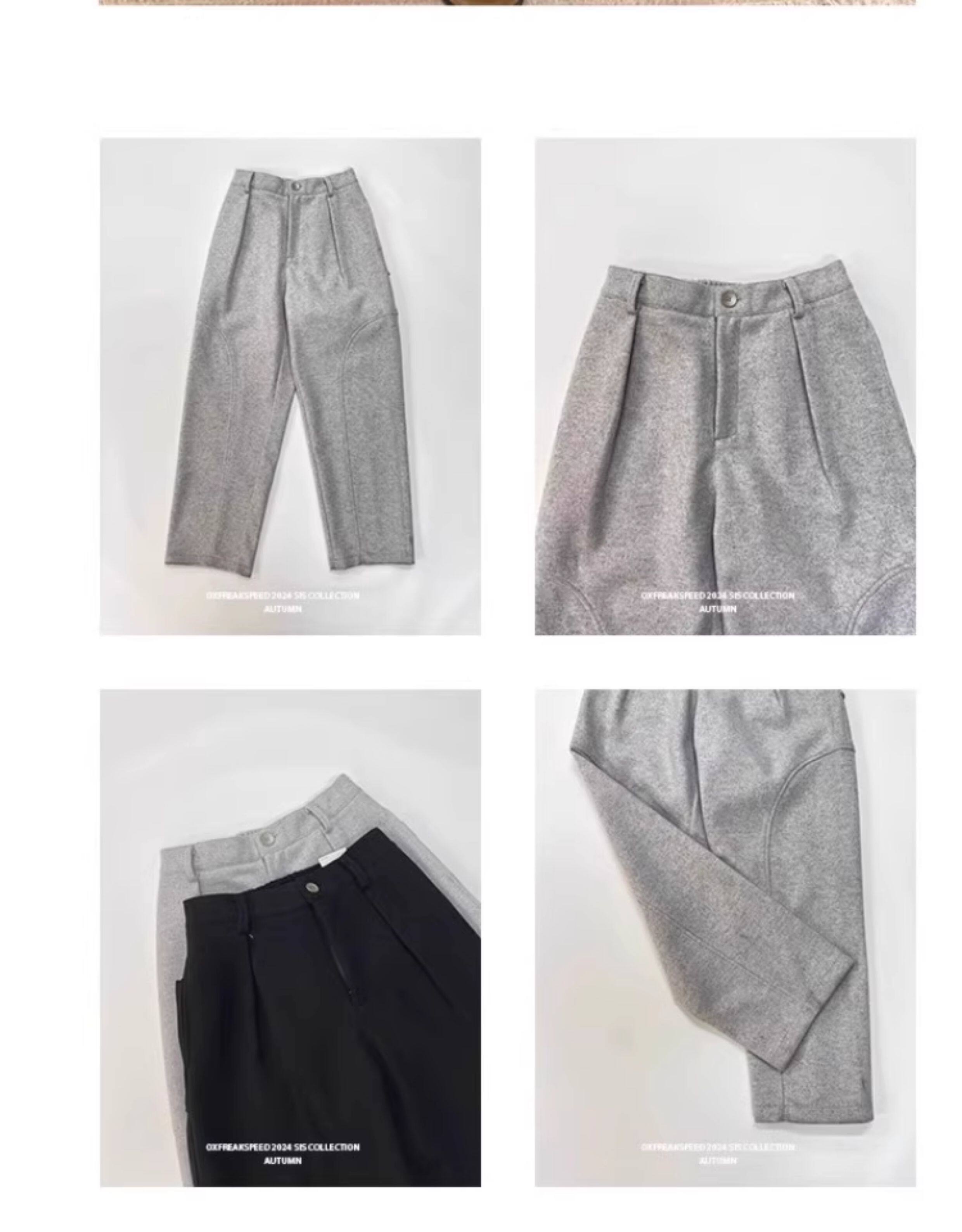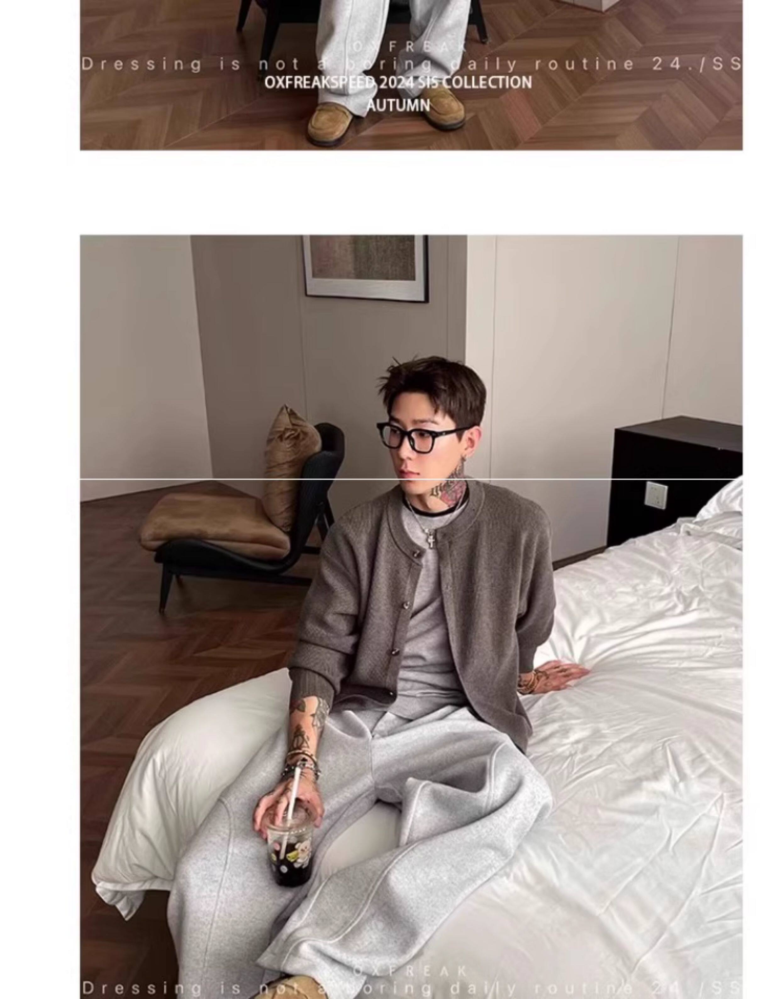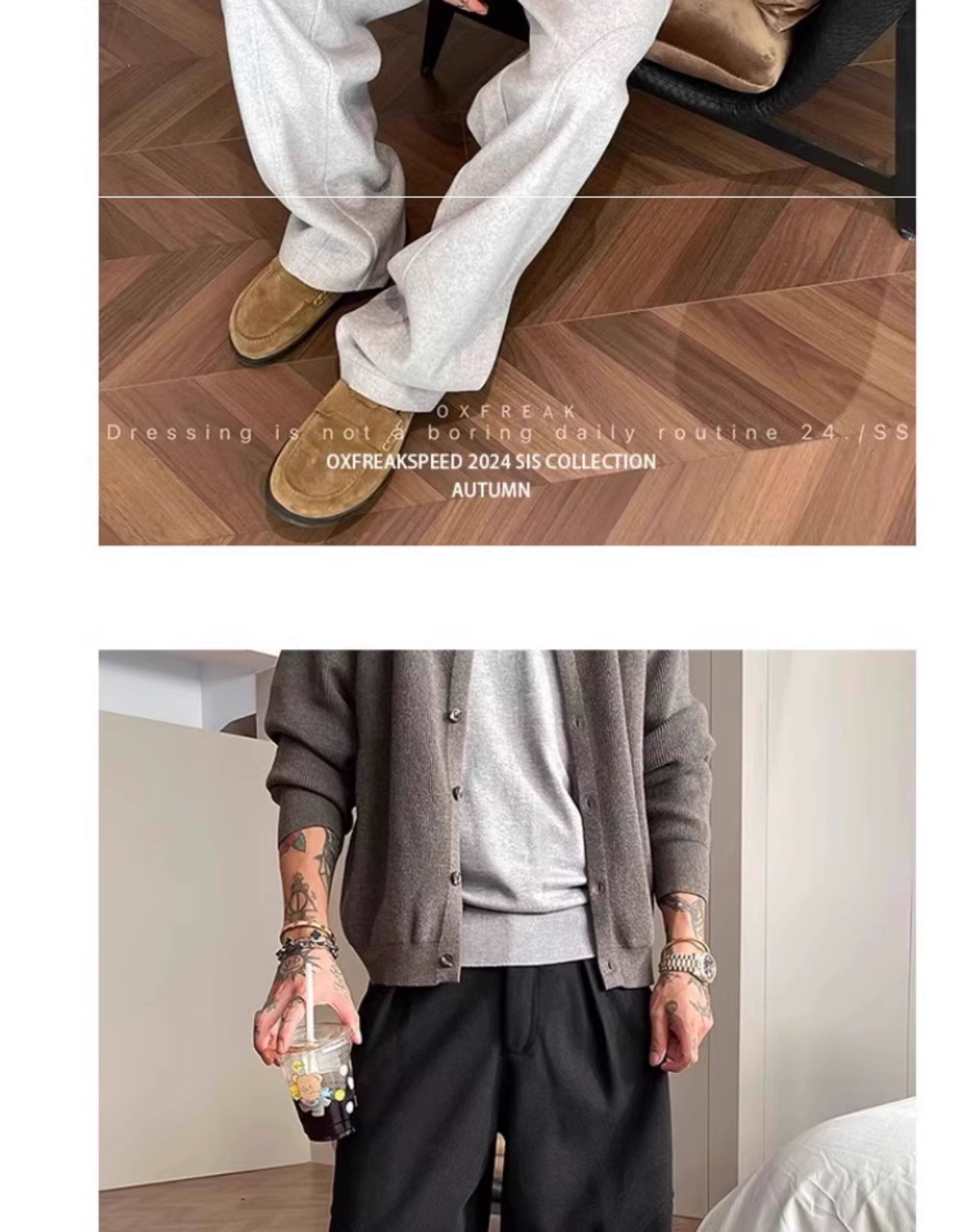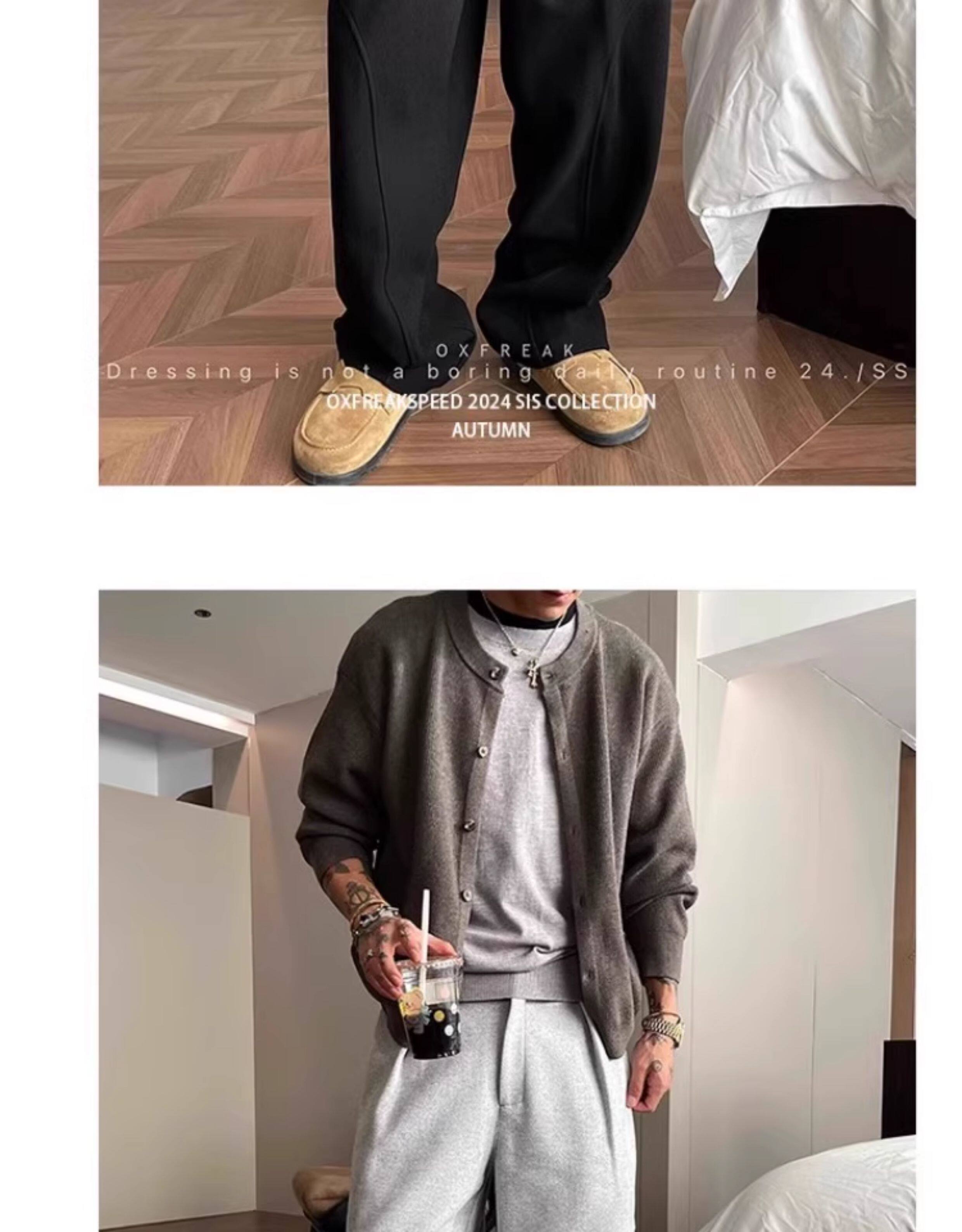 Oxfreak Heavy Knit Casual Pants for Men, Loose Fit, Gray Scimitar Pants with Three-Dimensional Tailoring and Inward Pleats