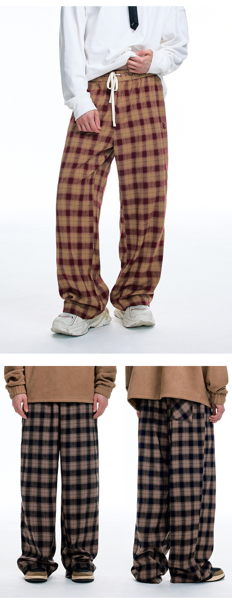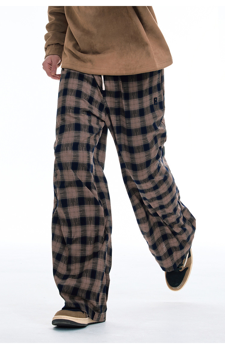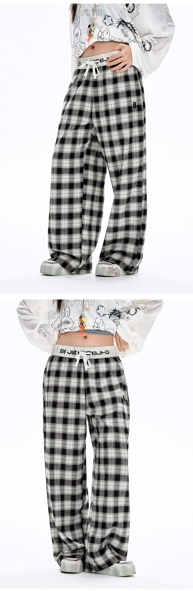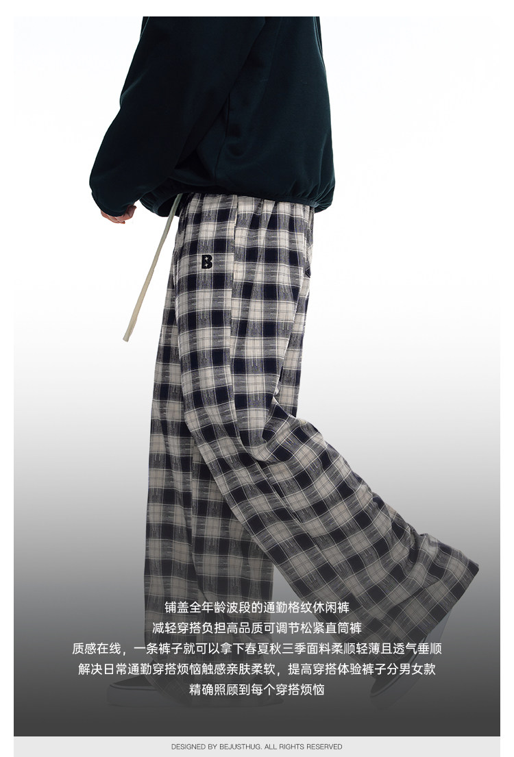 Bjhg Reckless Plaid Pants Men's Winter New Trendy Straight-Leg Sports Casual Pants Loose Long Pants Women
