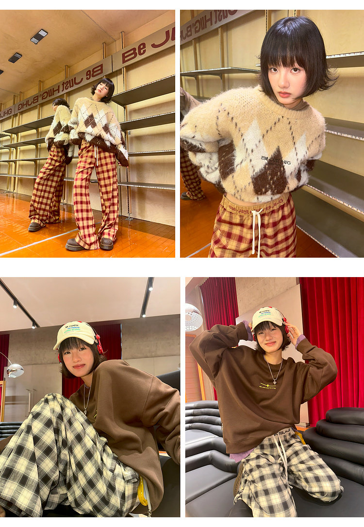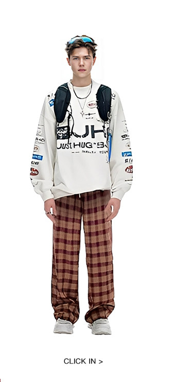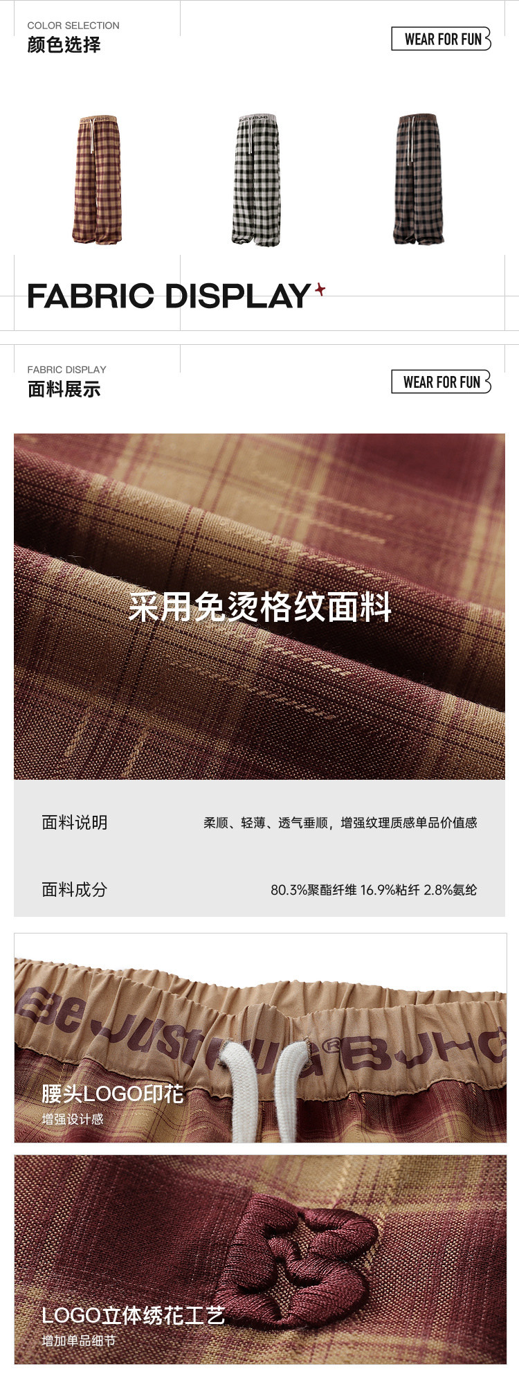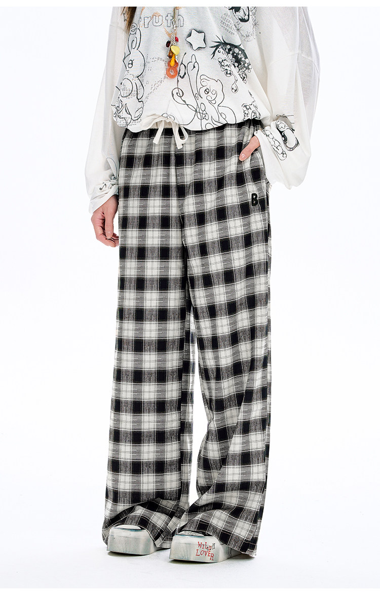 Bjhg Reckless Plaid Pants Men's Winter New Trendy Straight-Leg Sports Casual Pants Loose Long Pants Women