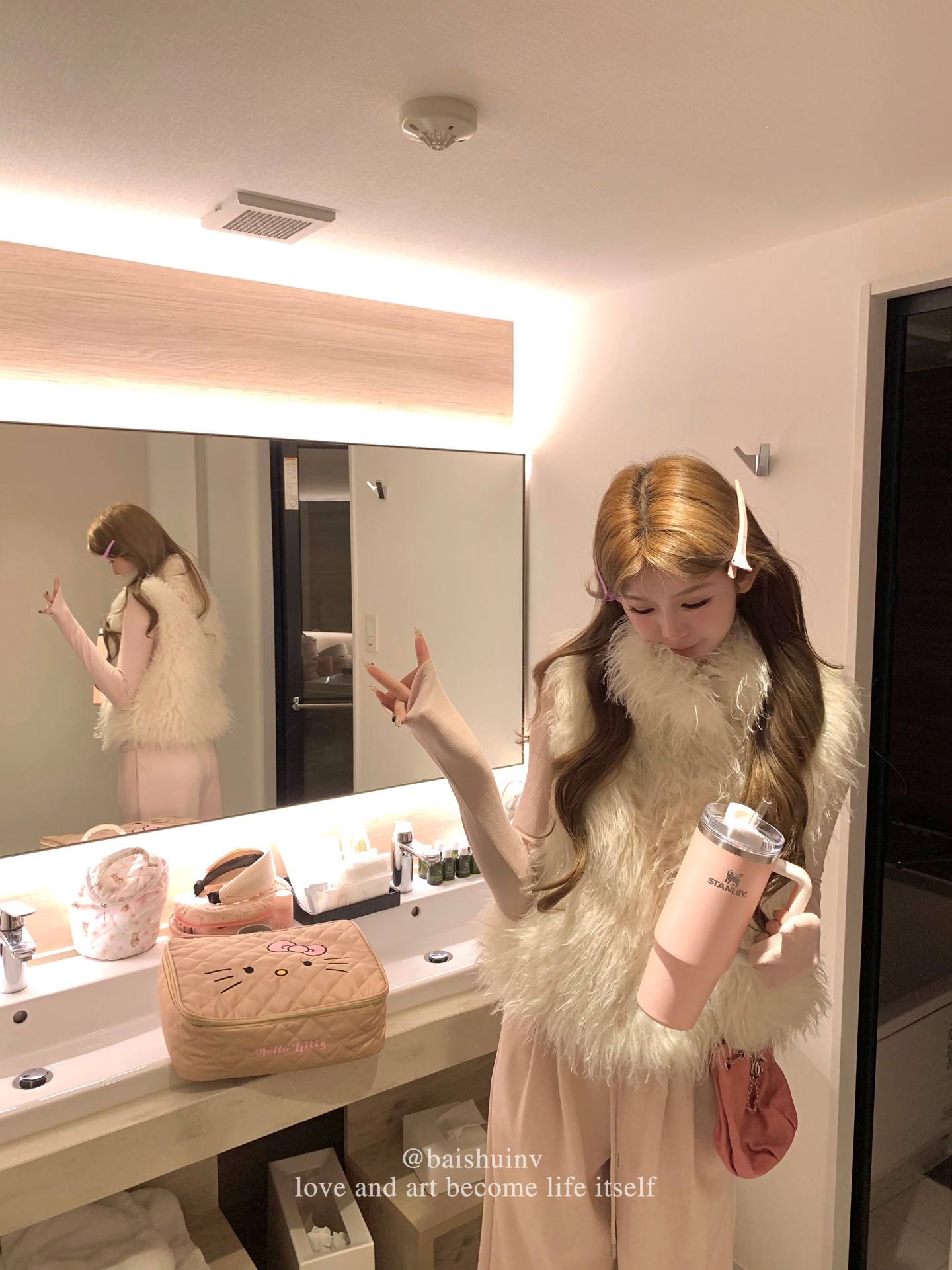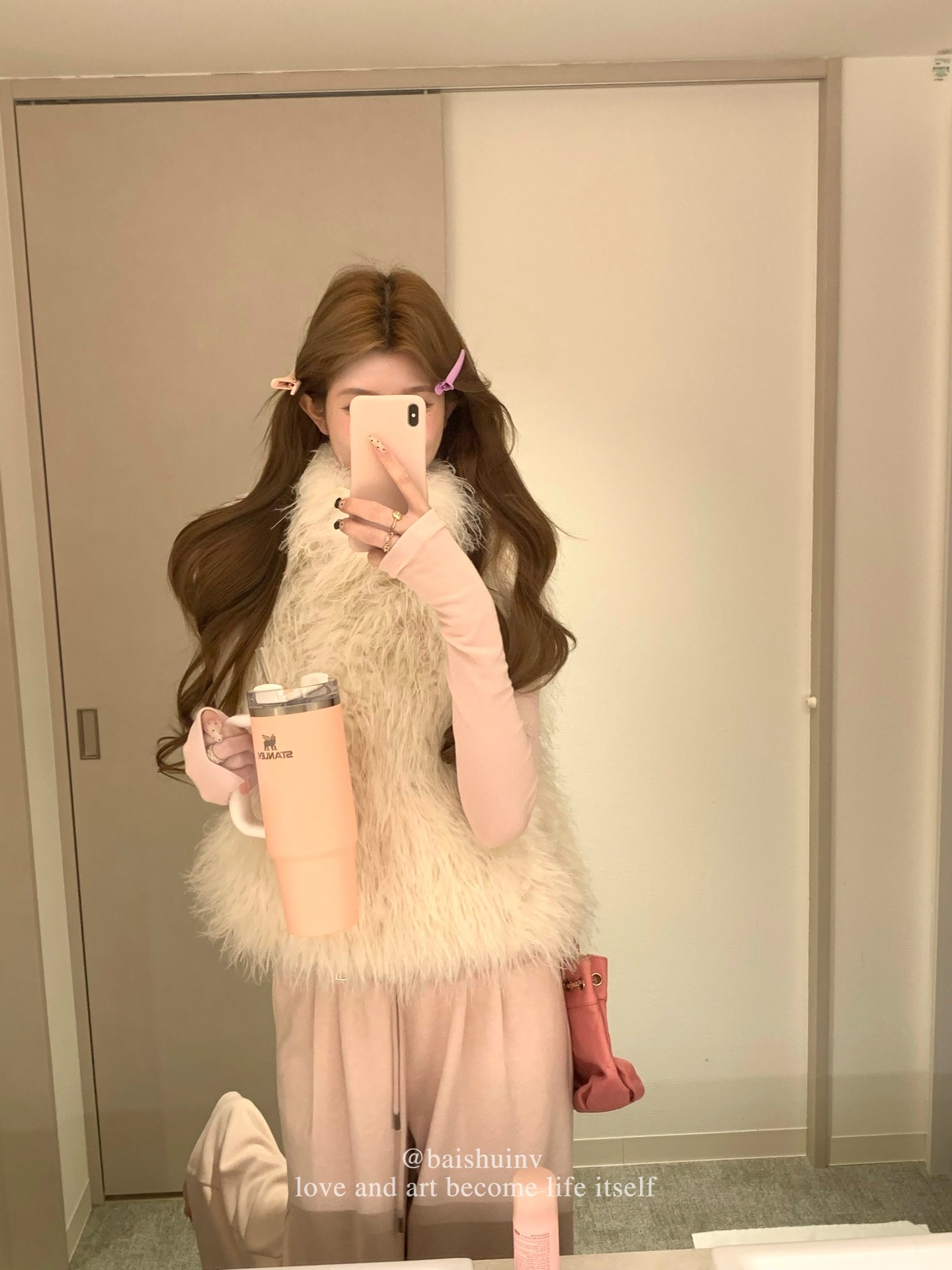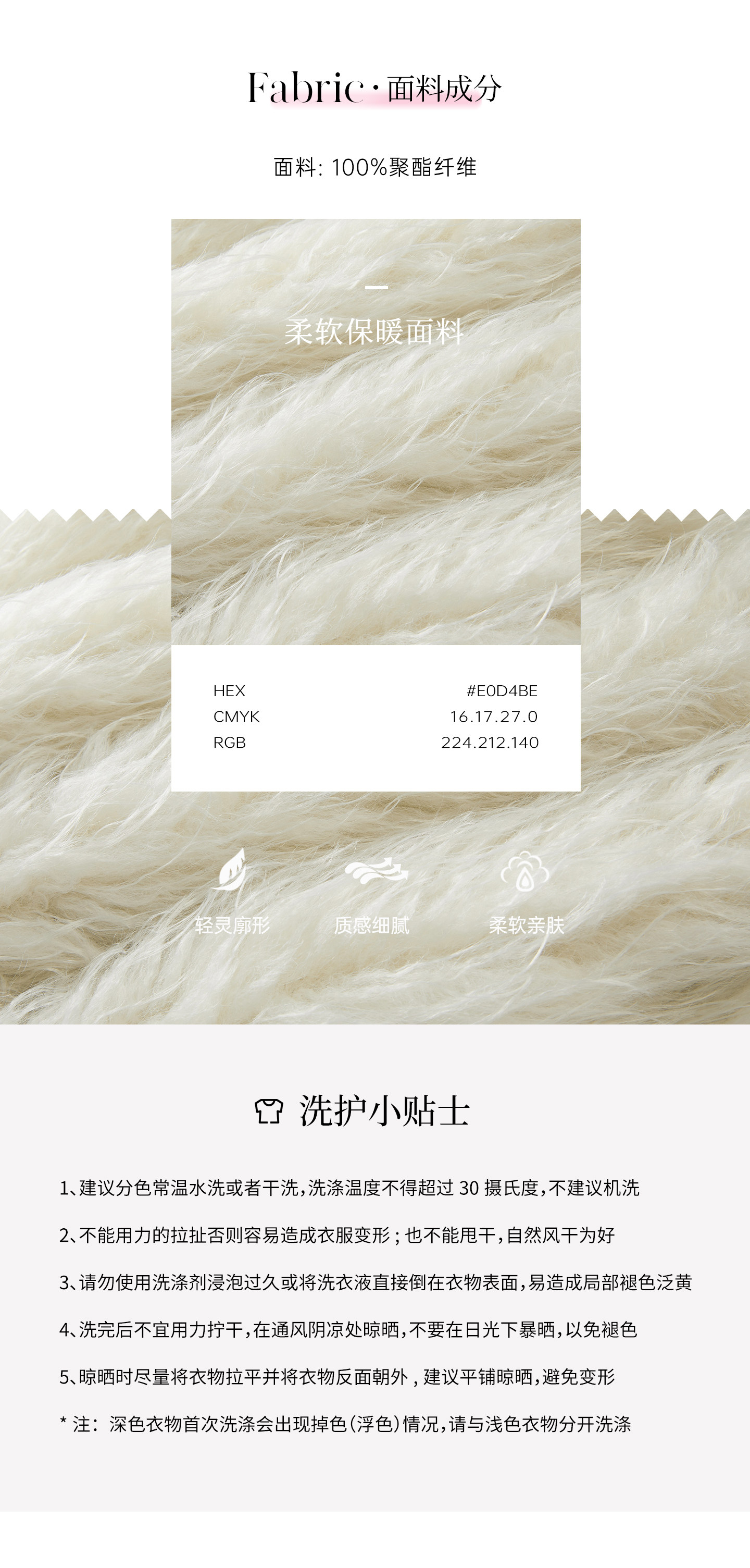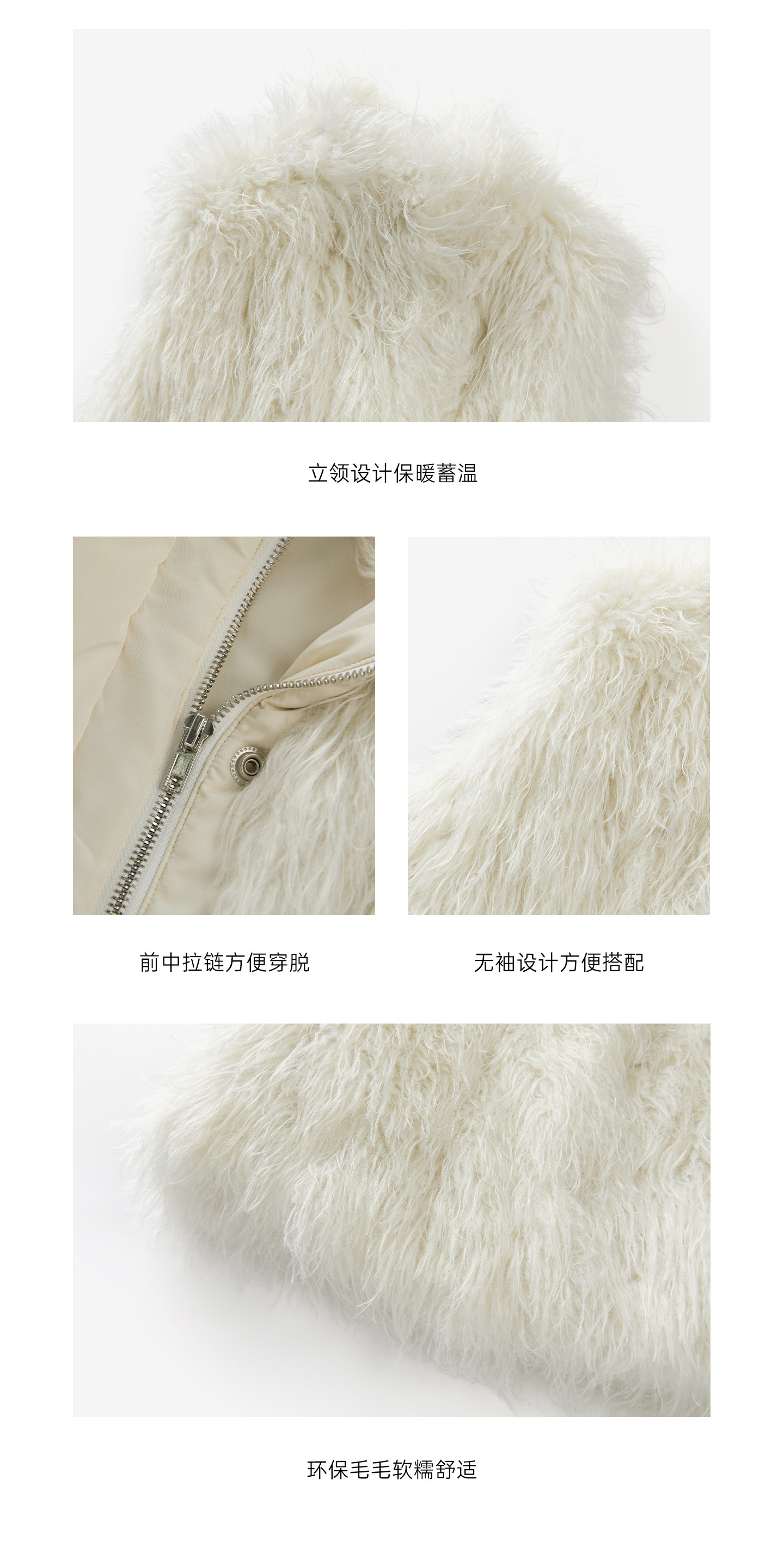 虽然说是仿羊驼环保毛 但毛料质感巨巨巨好 不易掉毛很适合日常清洗维护做工和细节却都很靠近真毛的质感 摸上去很舒服柔软 保暖和蓬松感都不错 平时外出穿在身上也不会有什么负担感 就很适合日常搭配穿穿啦