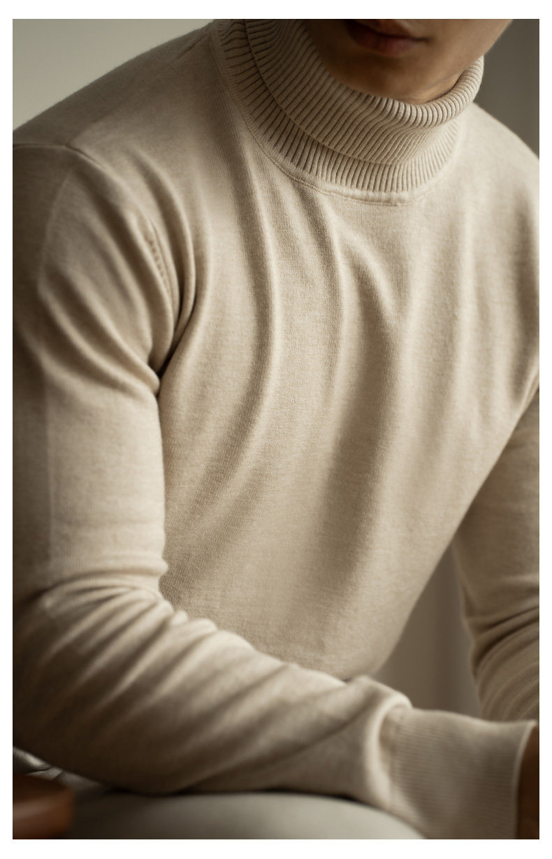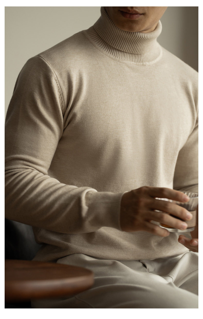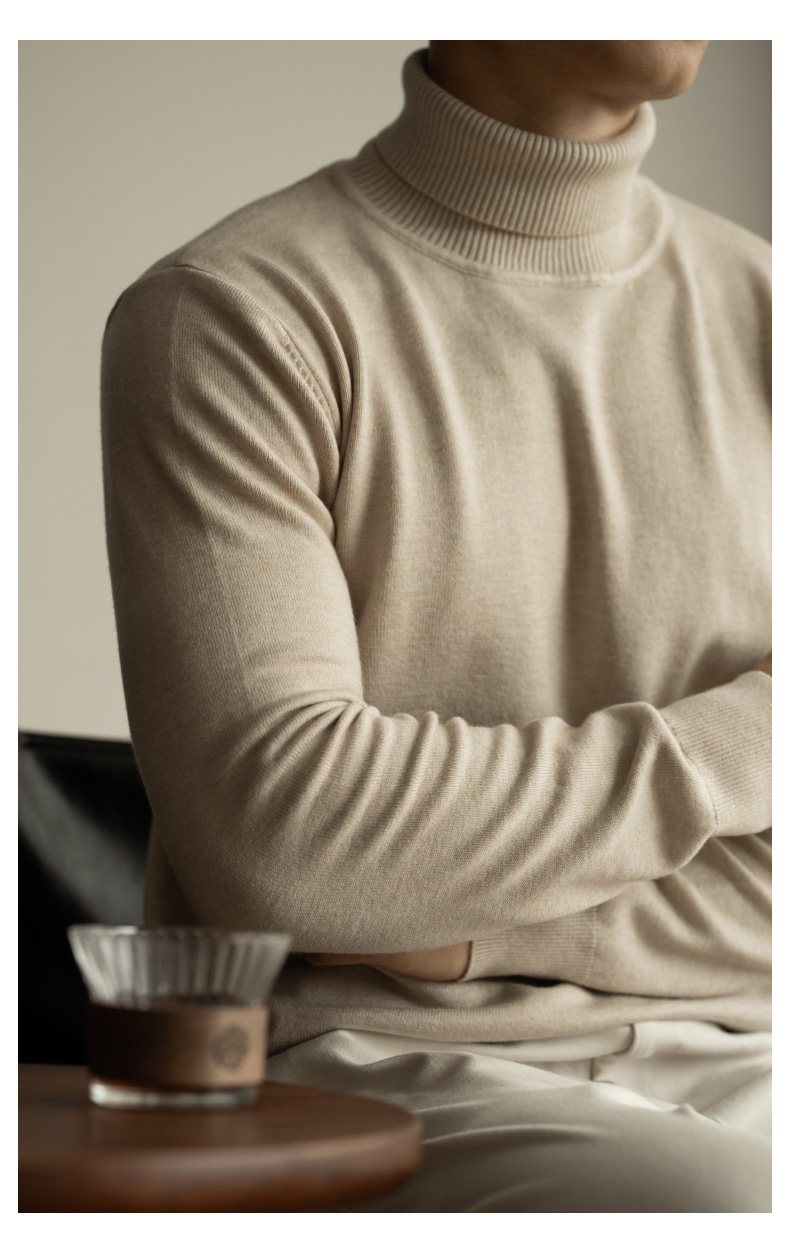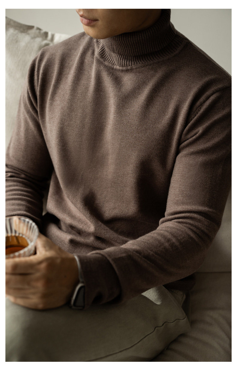 Ubv Machine Washable Merino Wool Lyocell Turtleneck Knitwear Men's Base Layer Sweater 2025 Autumn Warm Inner Layer Sweater