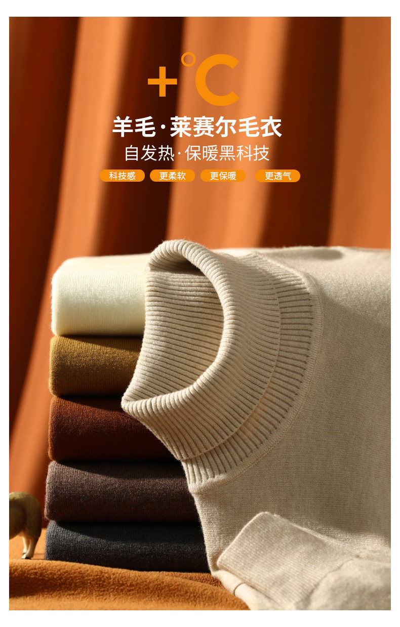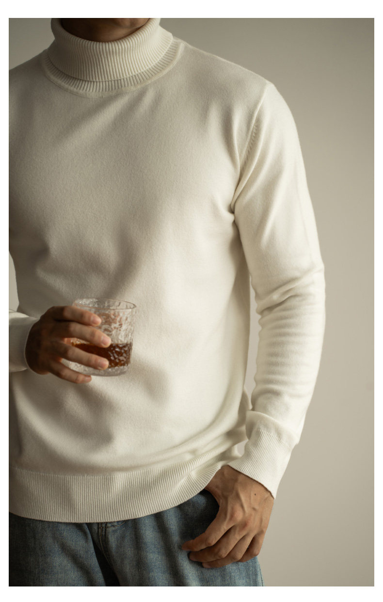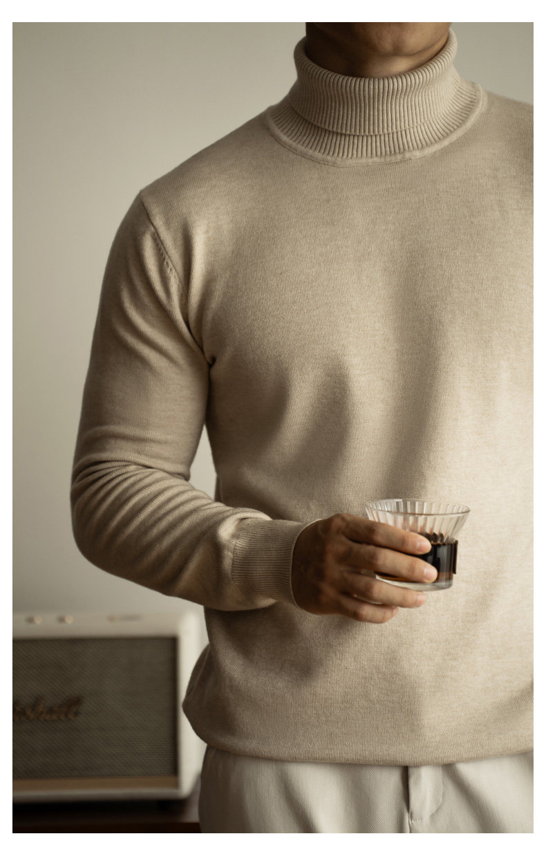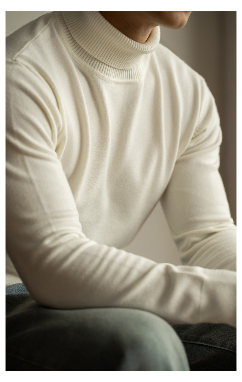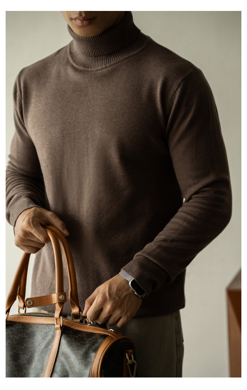 Ubv Machine Washable Merino Wool Lyocell Turtleneck Knitwear Men's Base Layer Sweater 2025 Autumn Warm Inner Layer Sweater