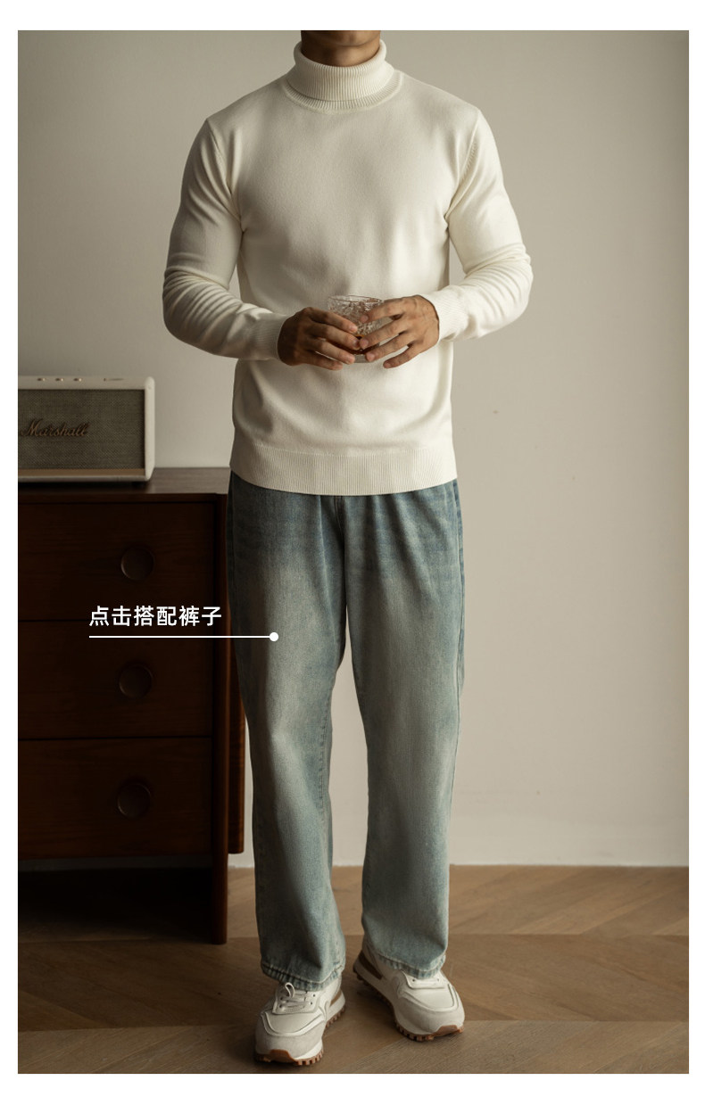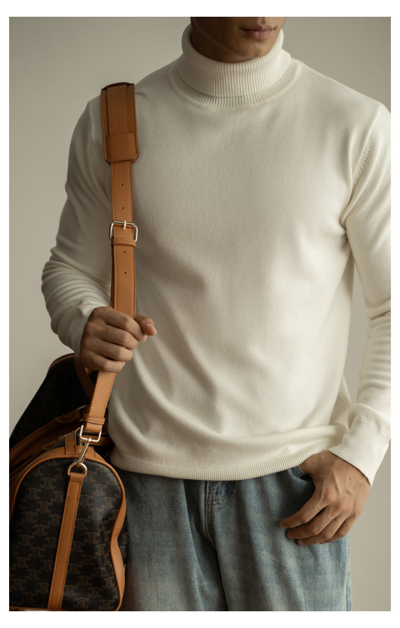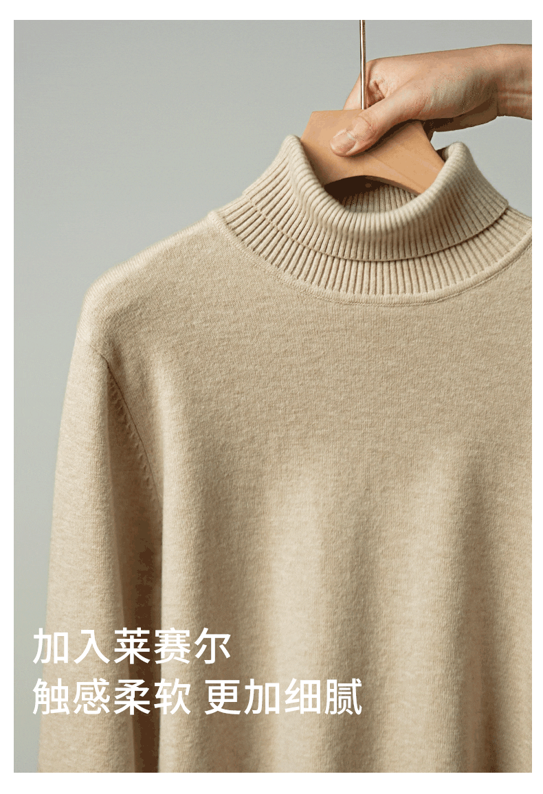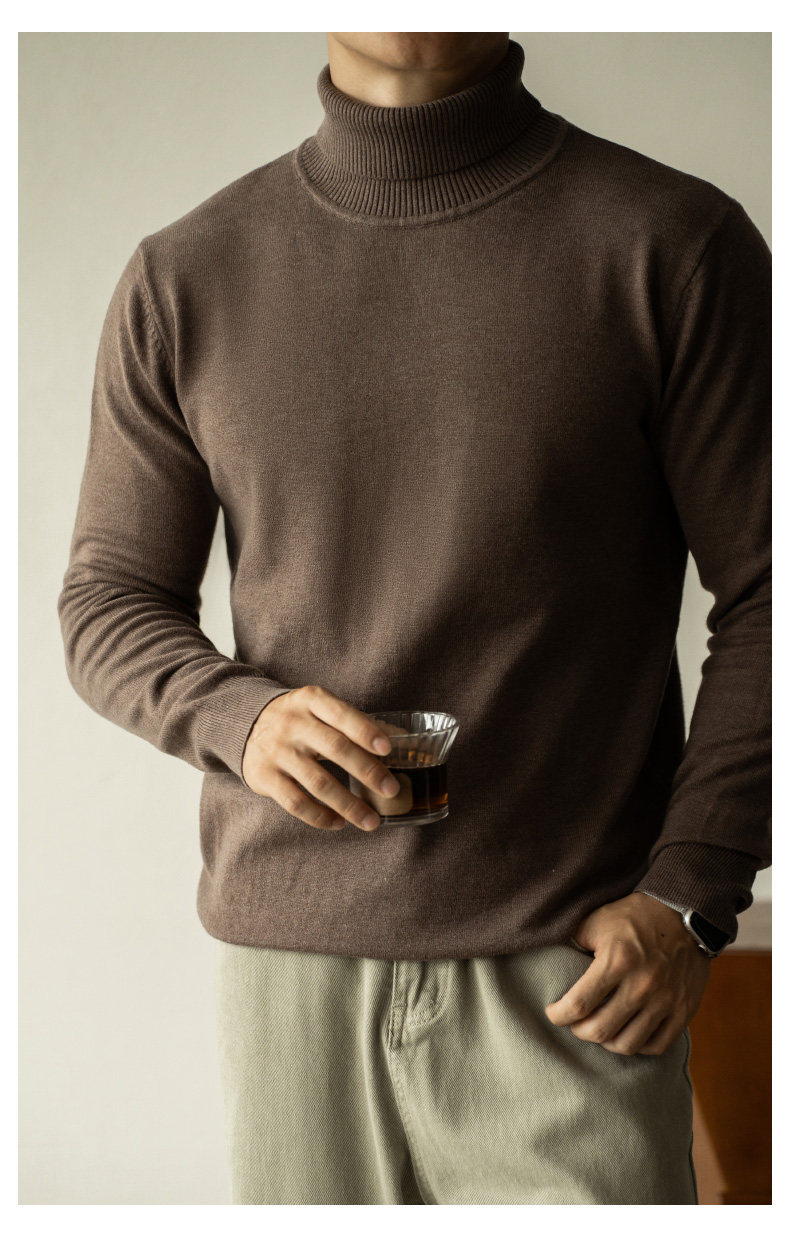 Ubv Machine Washable Merino Wool Lyocell Turtleneck Knitwear Men's Base Layer Sweater 2025 Autumn Warm Inner Layer Sweater
