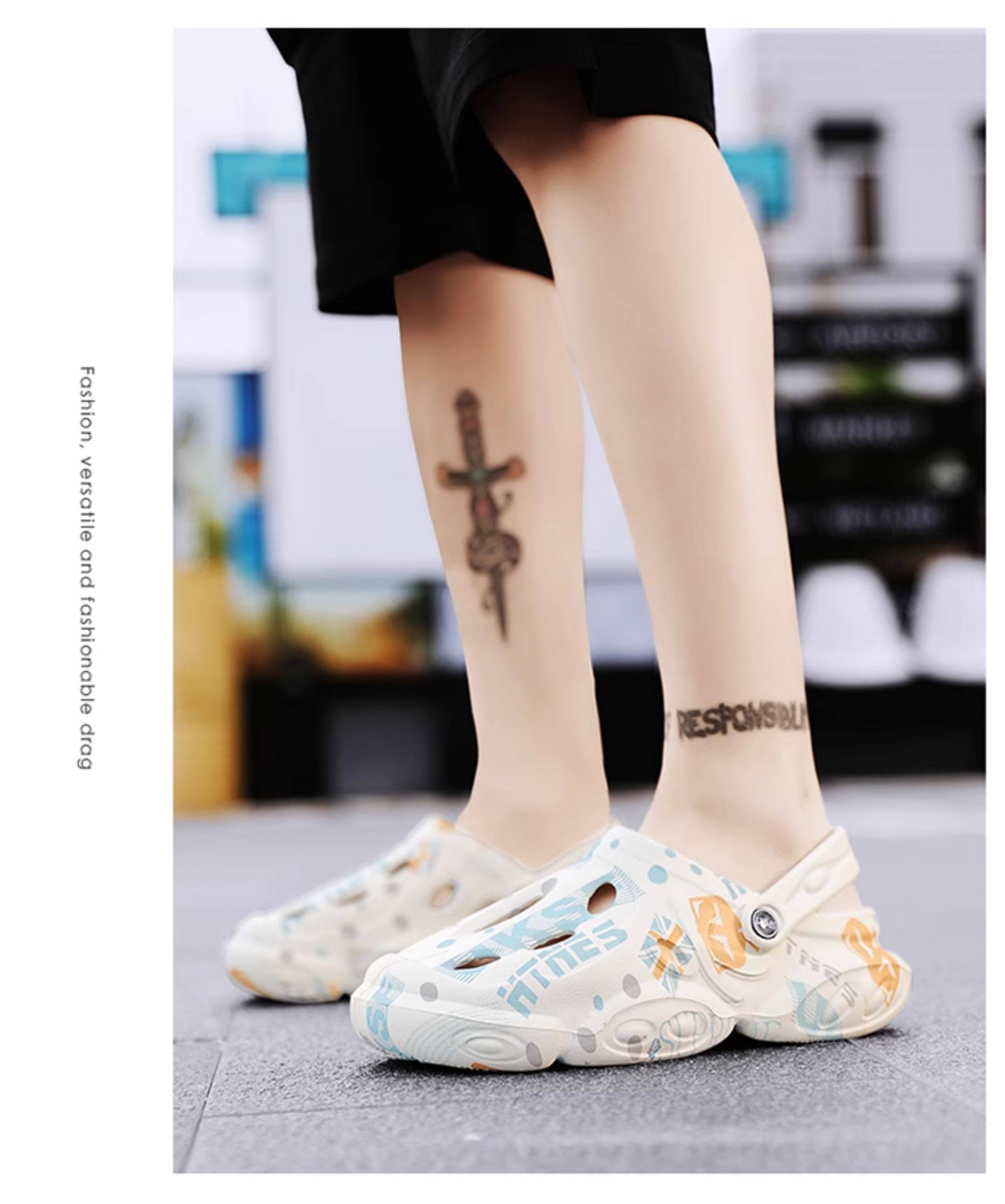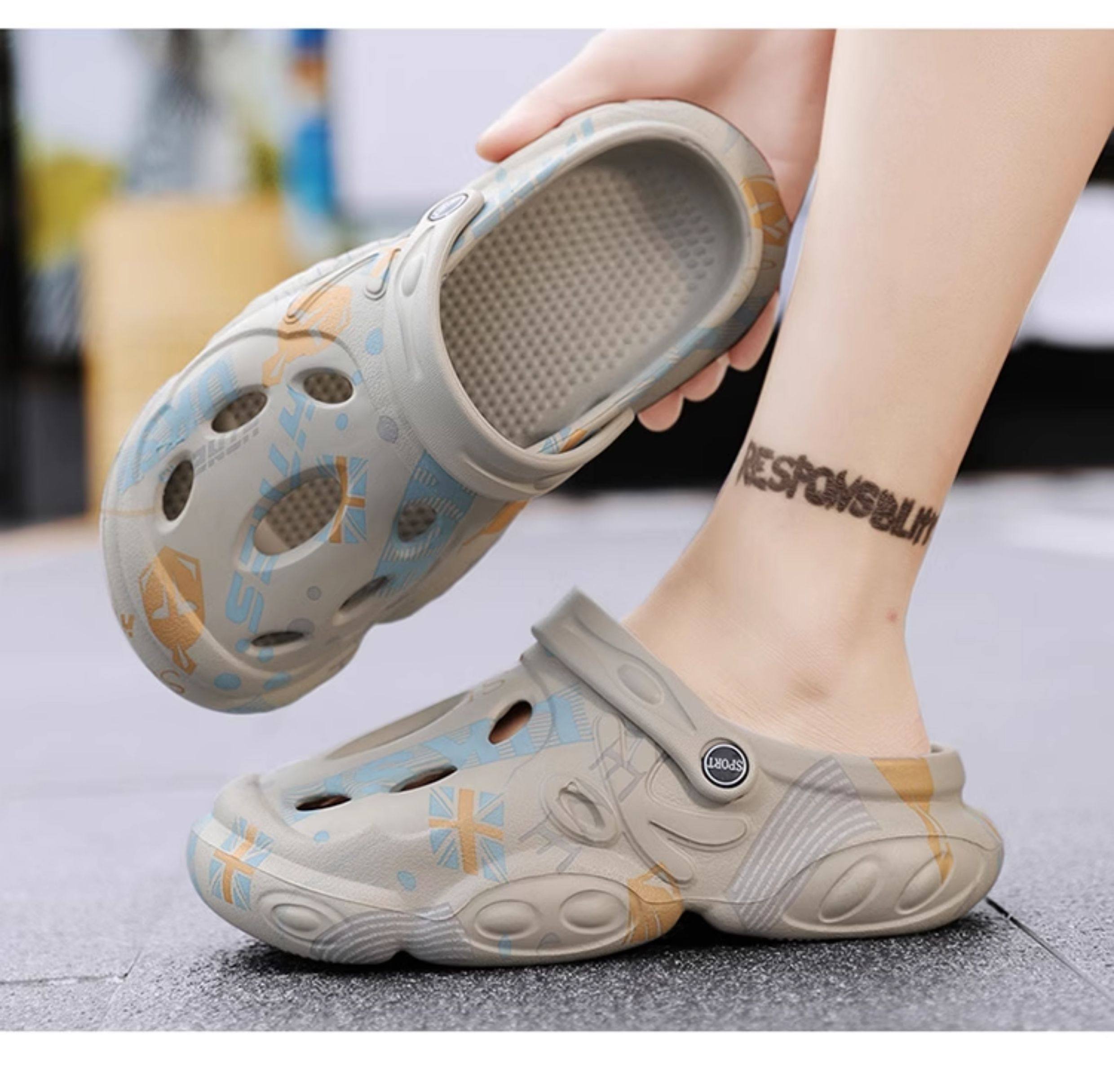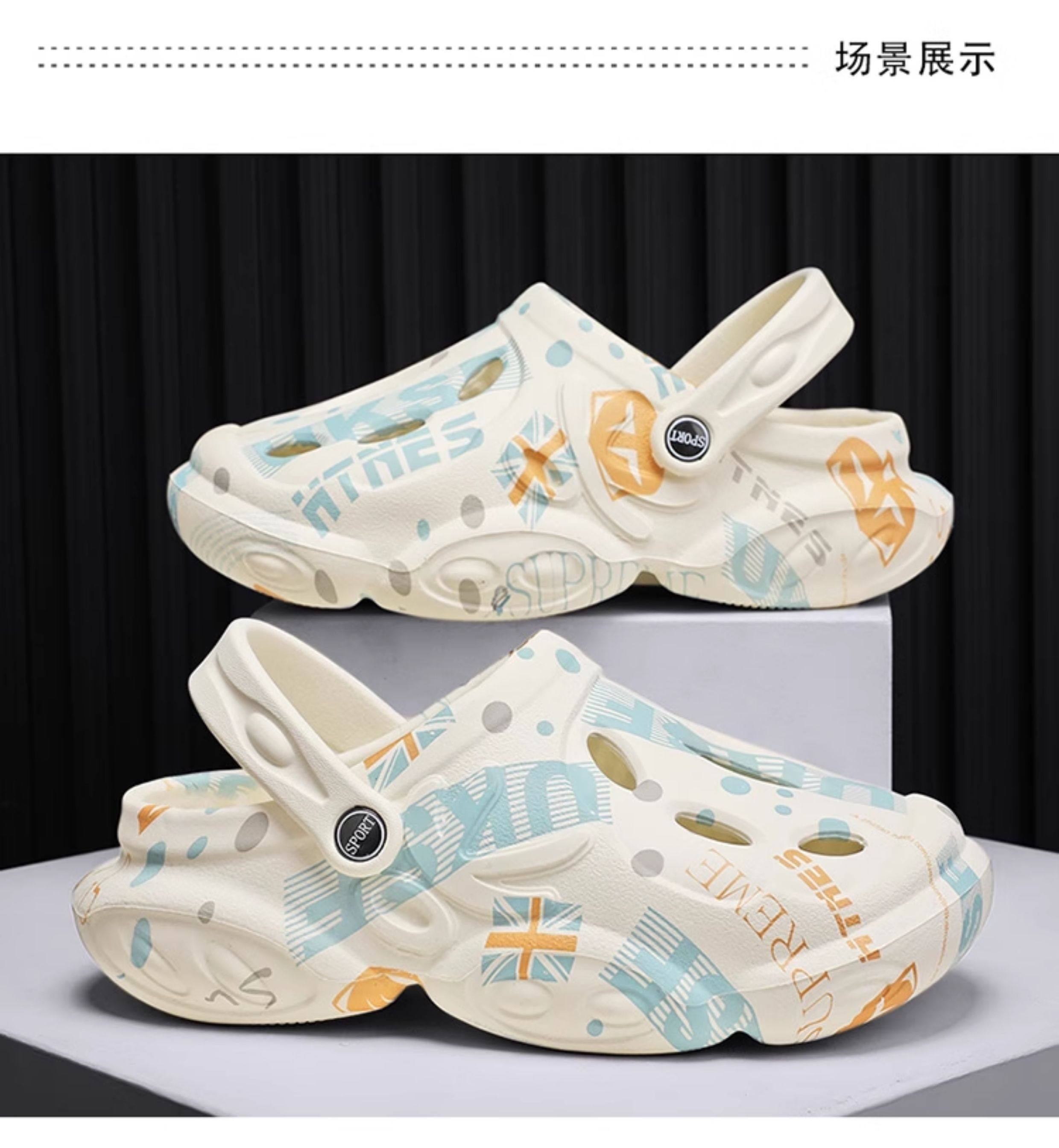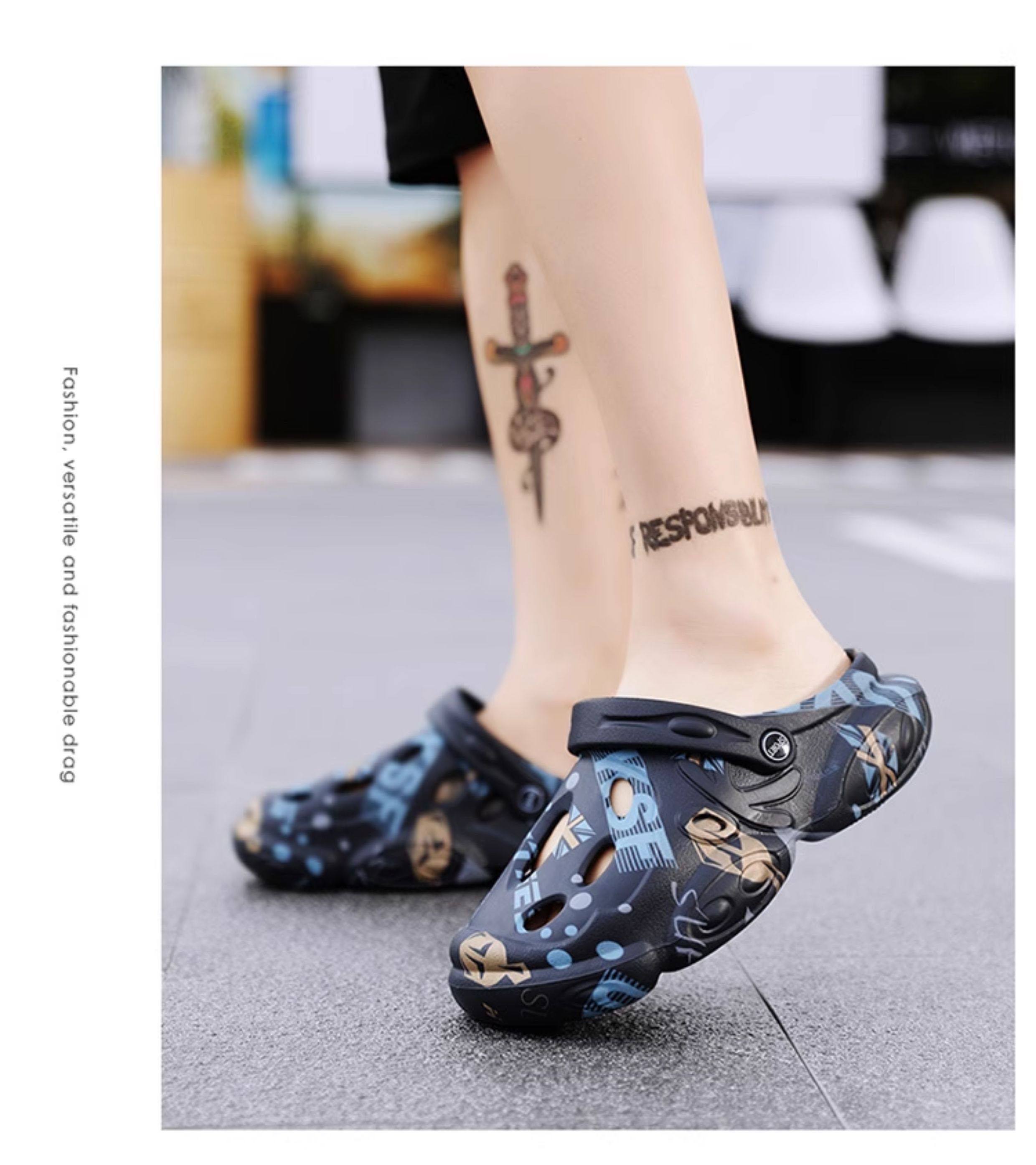 Men's Croc Shoes for Summer Outdoor Wear soft sole Beach Sports Sandals Non-Slip Thick Sole Large Size 47 Closed Toe Half Slippers