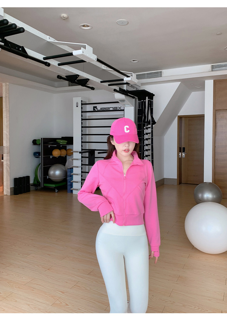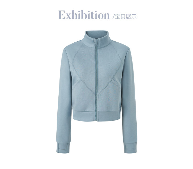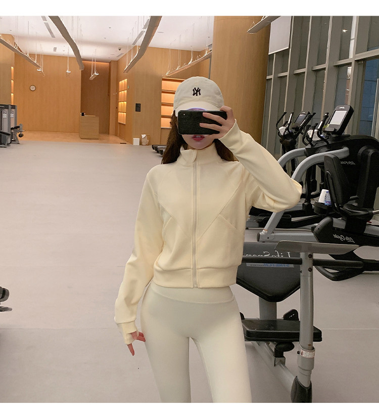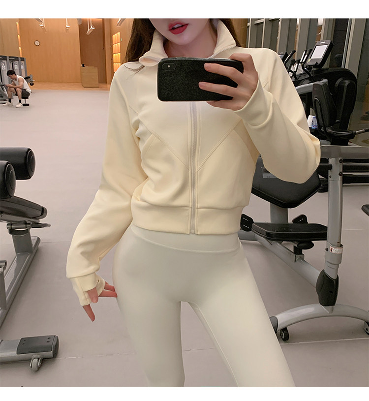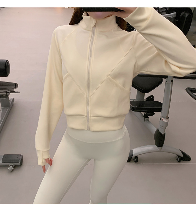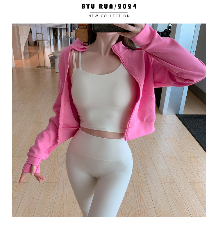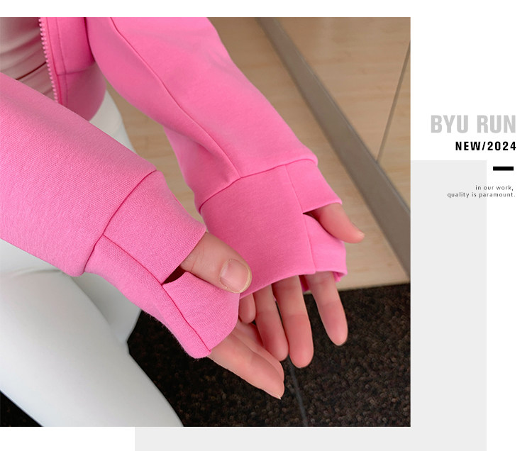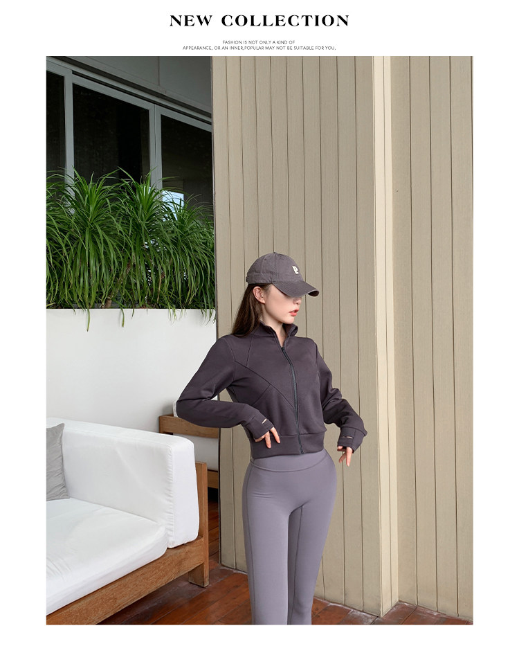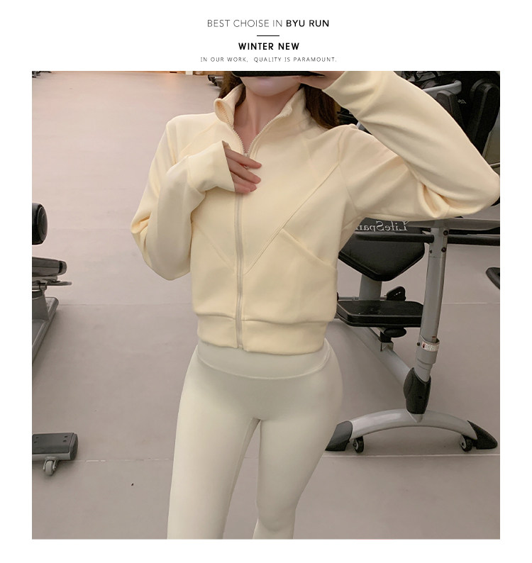 Byu Run New Windproof Stand-Up Collar Sports Jacket for Women, Short Zipper Hoodless Sweatshirt, Long-Sleeved Yoga Top