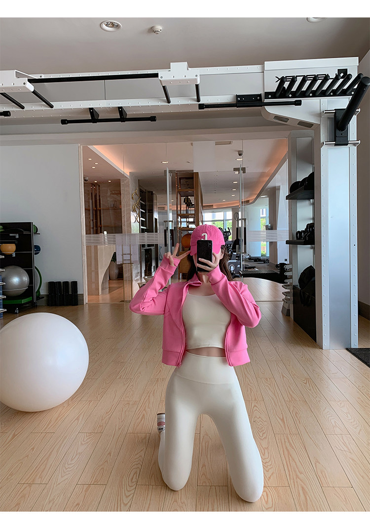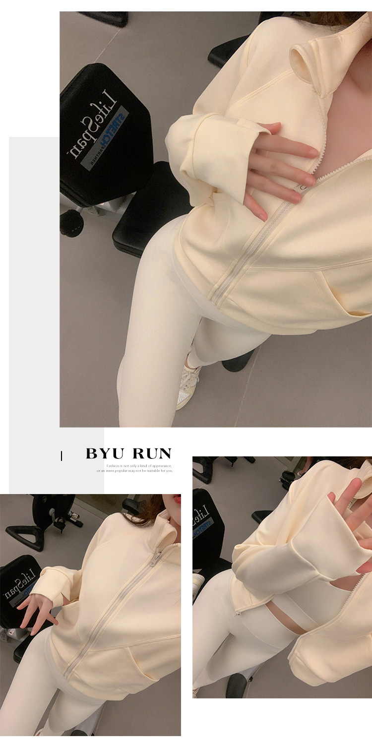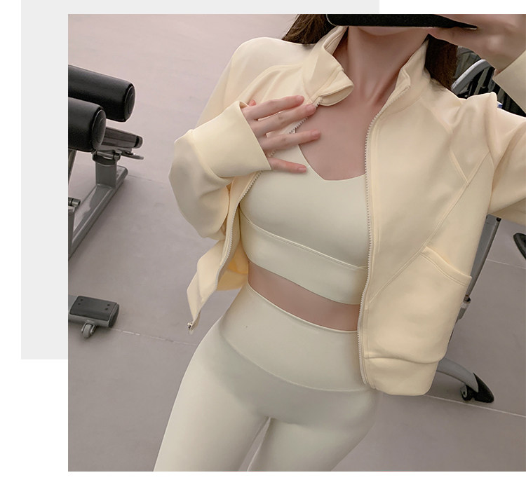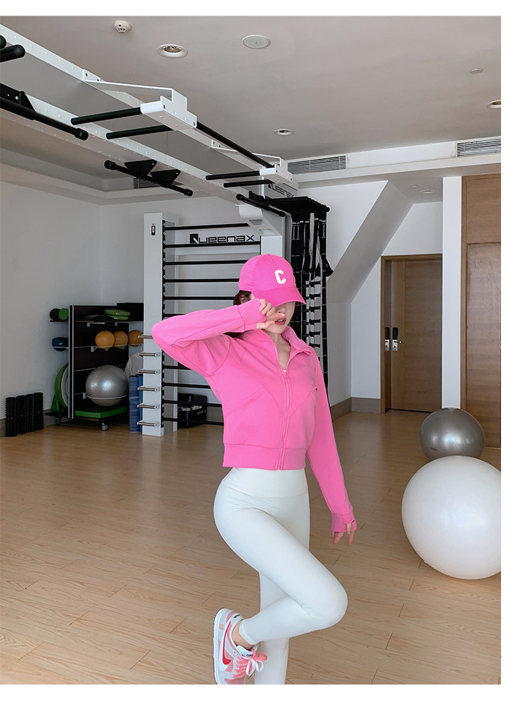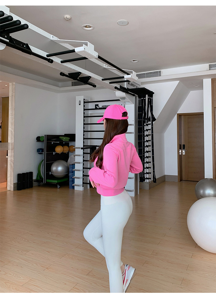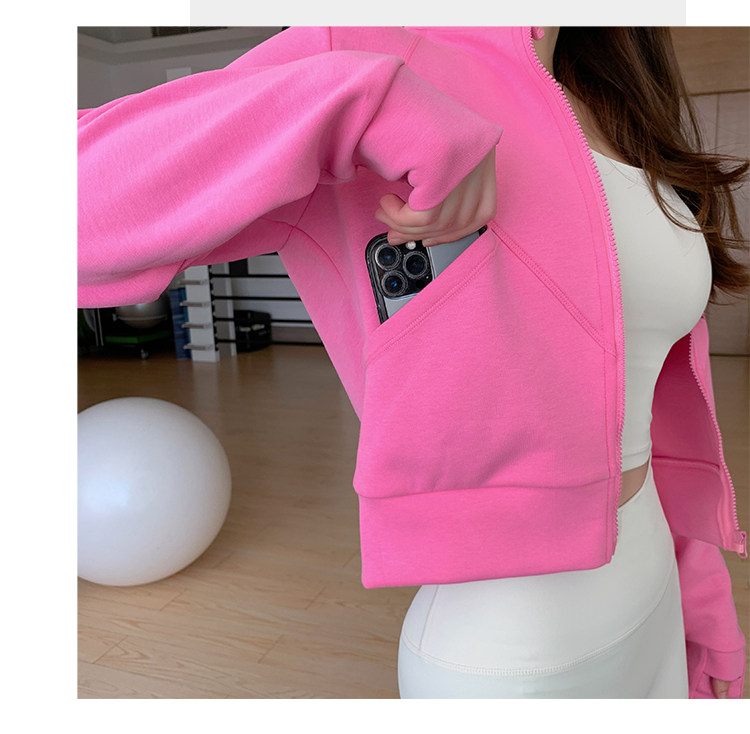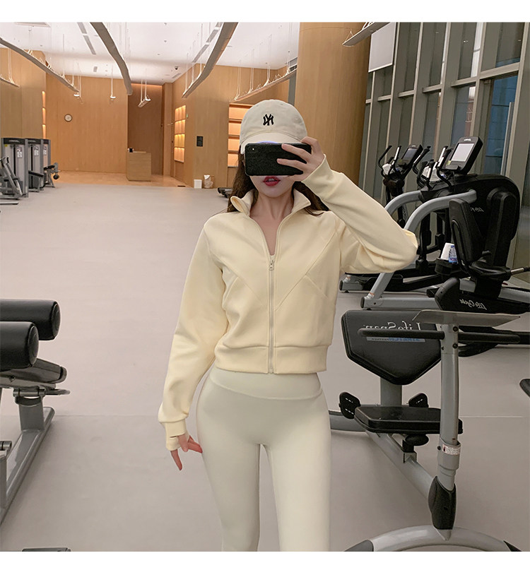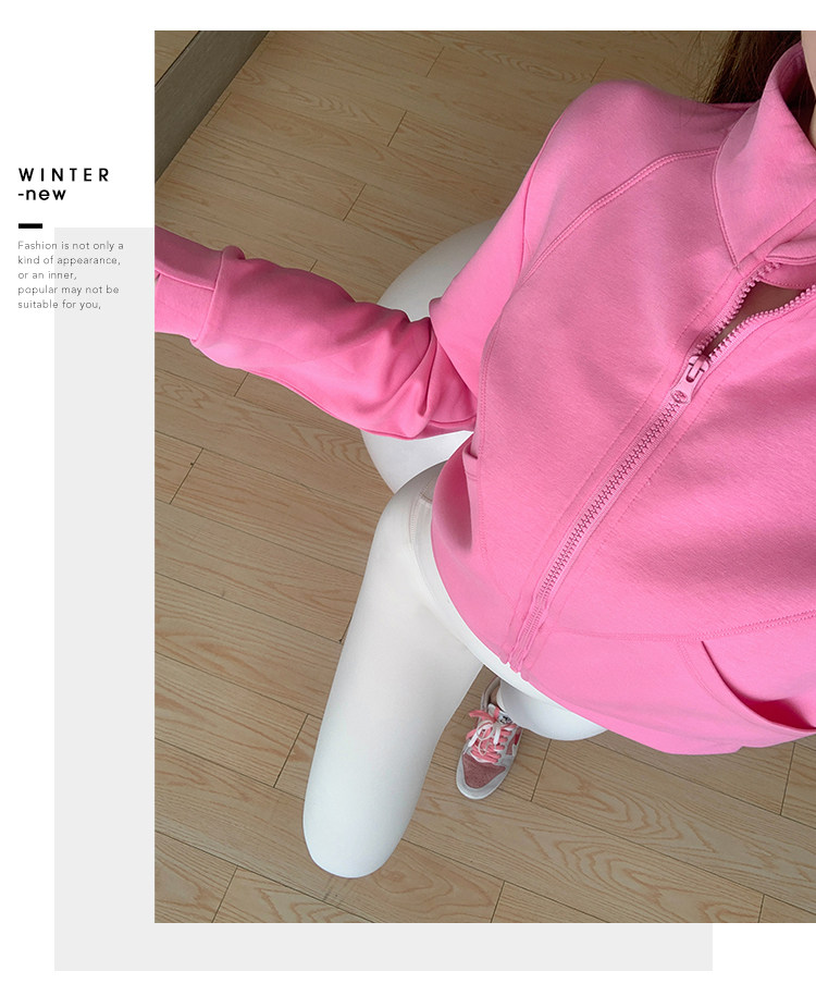 Byu Run New Windproof Stand-Up Collar Sports Jacket for Women, Short Zipper Hoodless Sweatshirt, Long-Sleeved Yoga Top