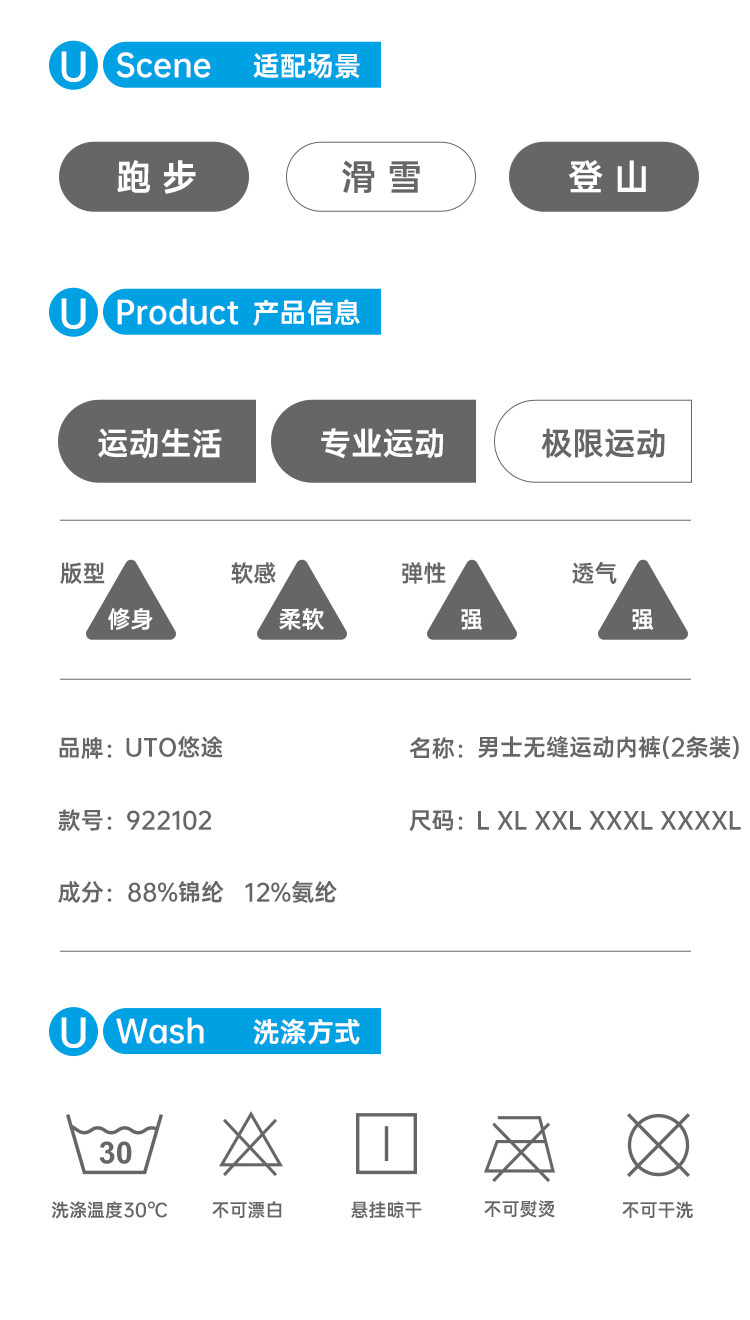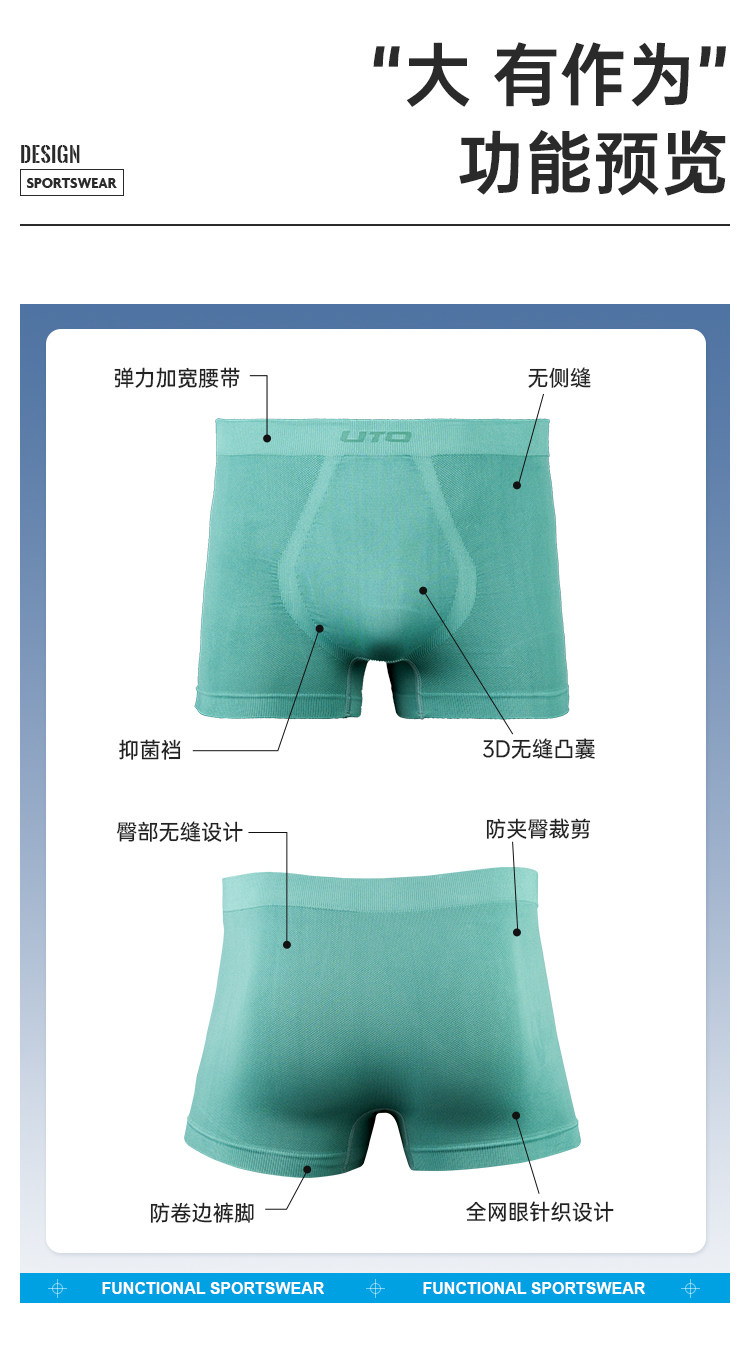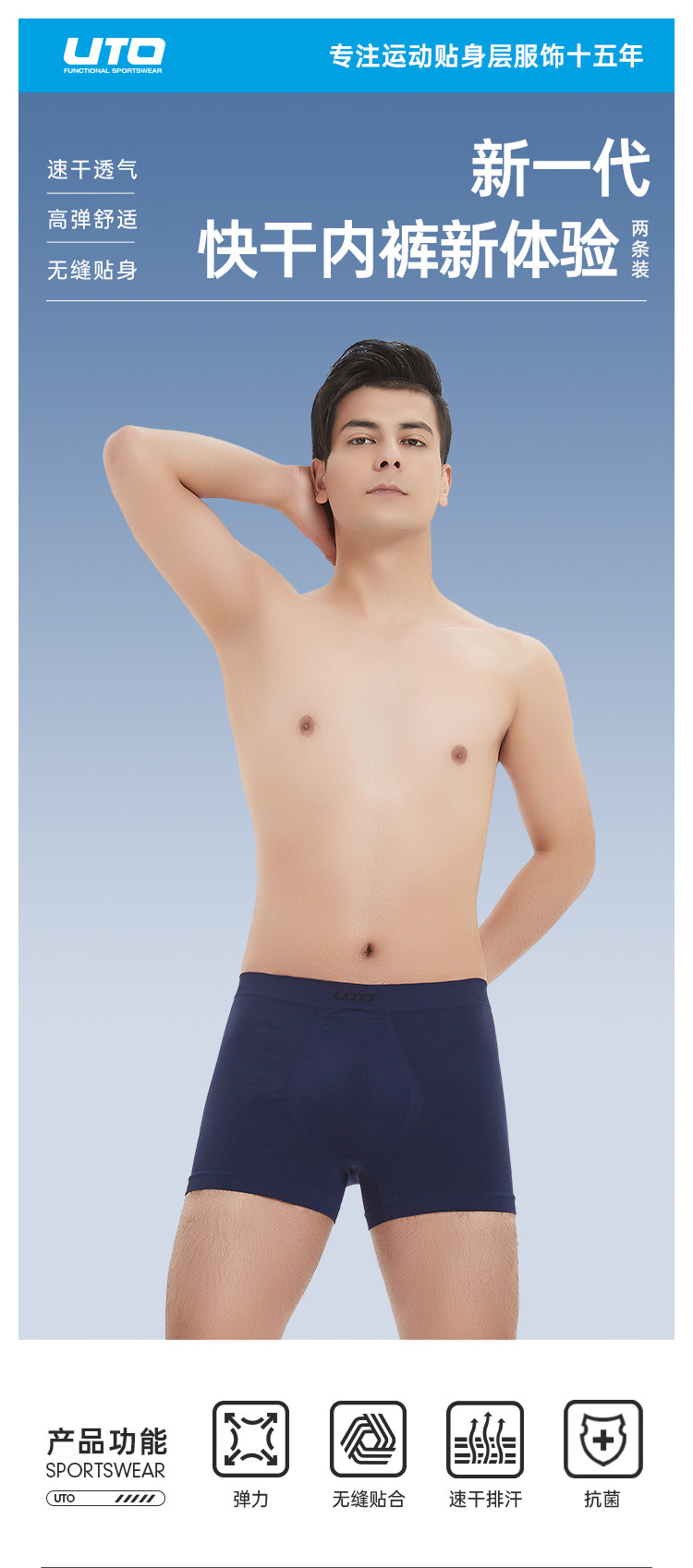 Uto Men's Sports Underwear Professional Running Underwear Breathable Anti-Chafing Crotch Sweat-Wicking Quick-Drying Underwear 2-Pack