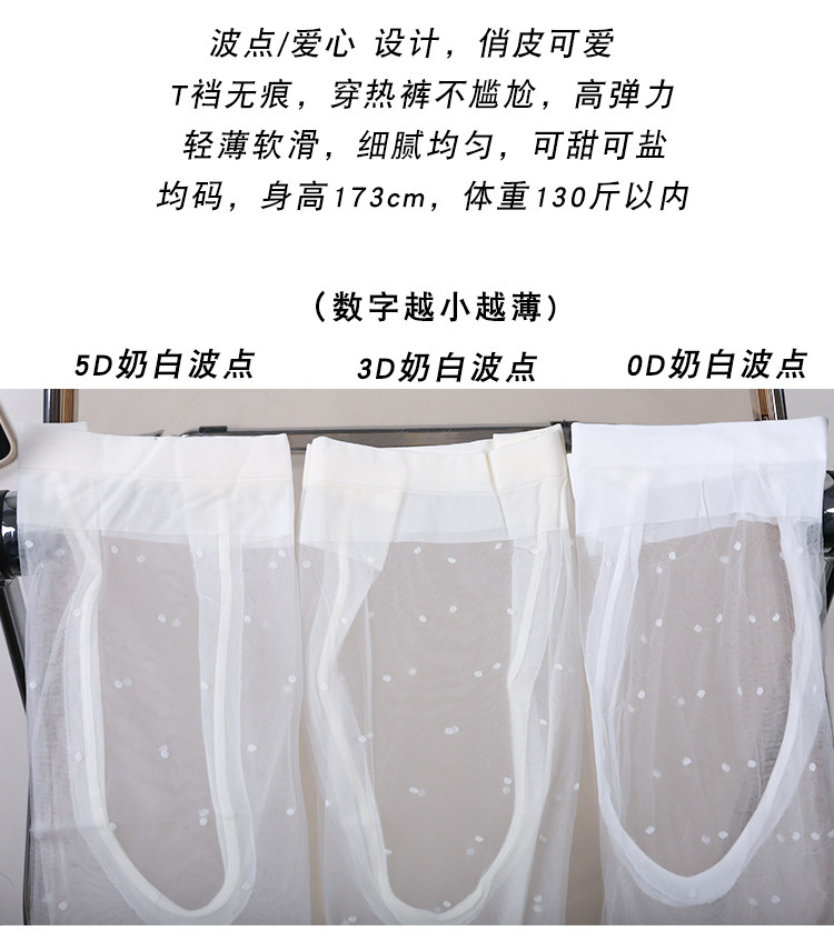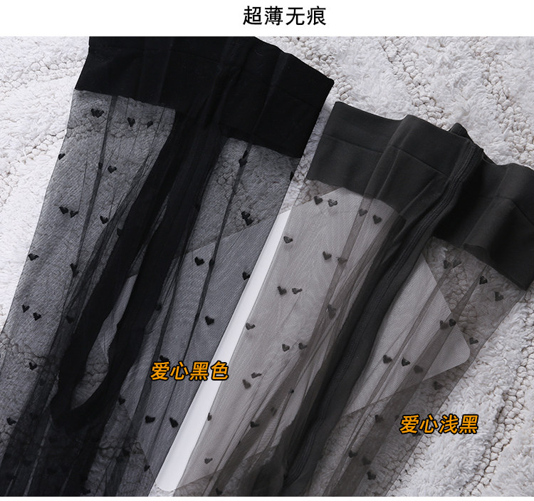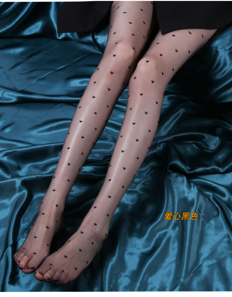 Black 0D Polka Dot Stockings, Black Sheer Ultra-Thin Heart Dot Pattern Thin Pantyhose with Heart-Shaped Spots