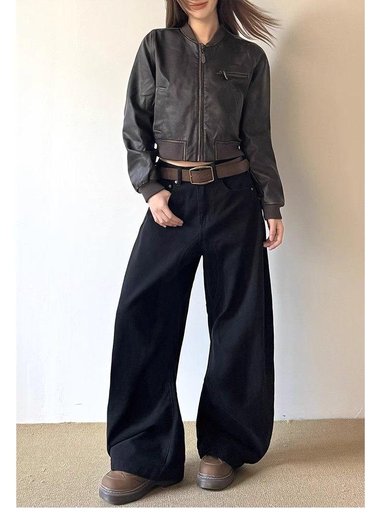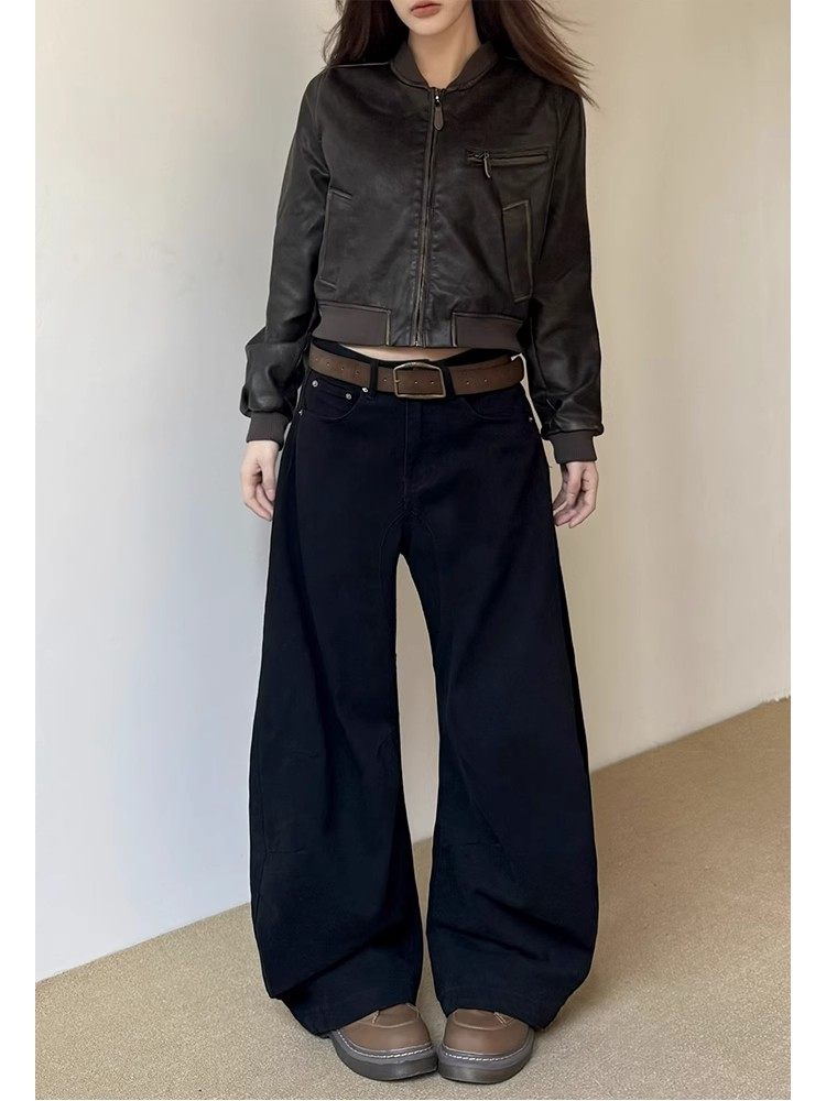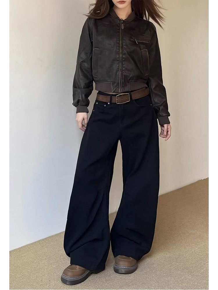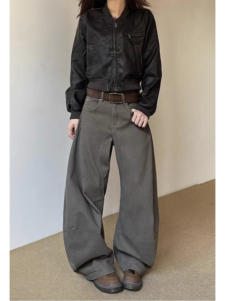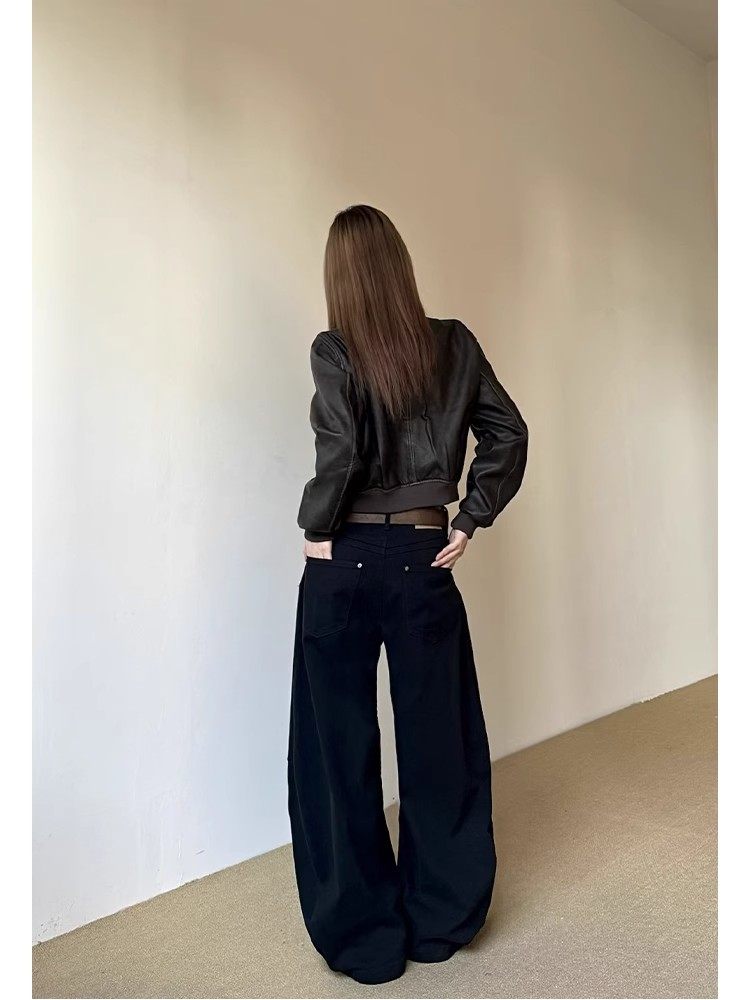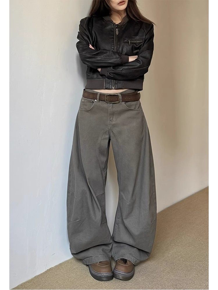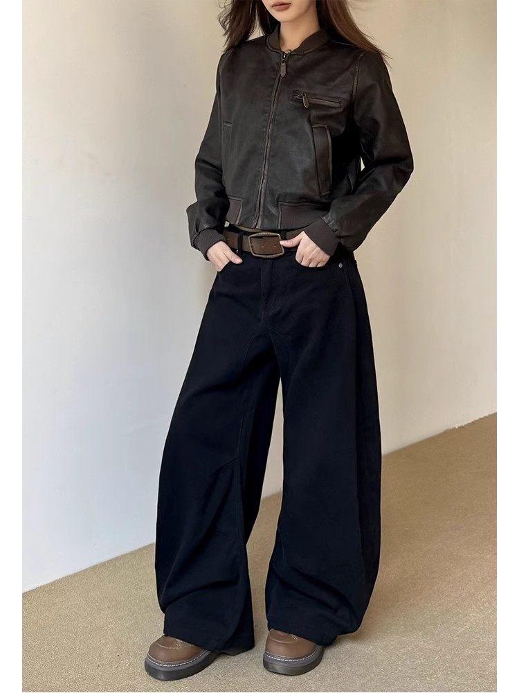 Melard Silhouette Wide-Leg Scimitar Jeans New Style Unisex American Retro Pleated Loose Pants