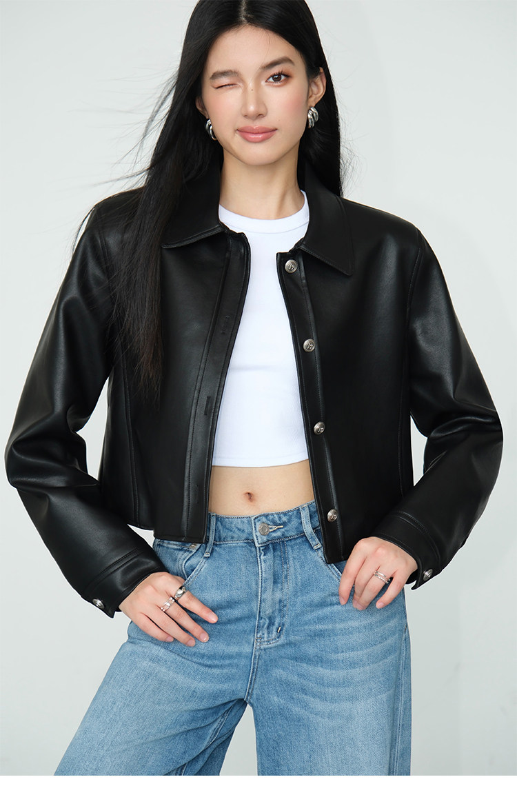 Neva Hu【In Stock 40% off】Black American Style Short Pu Leather Jacket for Women, High-End Street Style Biker Jacket
