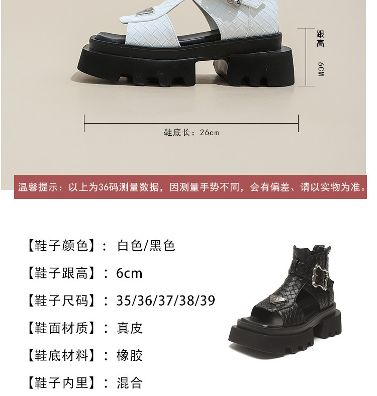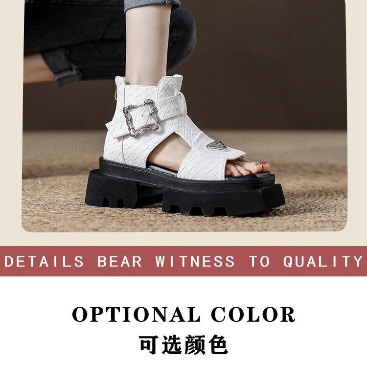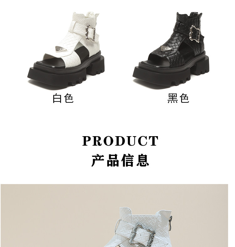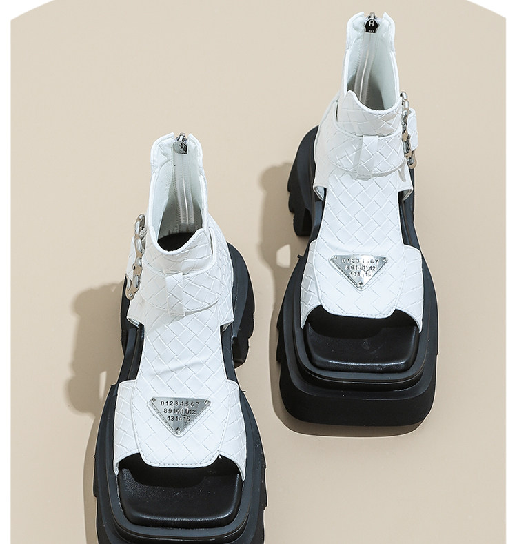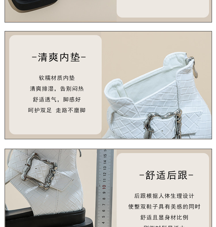 White High-Top Sandals for Women, Platform Thick-Soled Height-Increasing Women's Shoes, 2025 Summer New Style Roman Short Boots, Genuine Leather Martin Boots