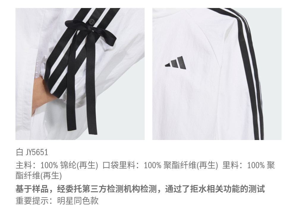 Ma Sichen's Same Style Three-Stripe Dance Series Water-Repellent Jacket for Women, Autumn Adidas Light Sports