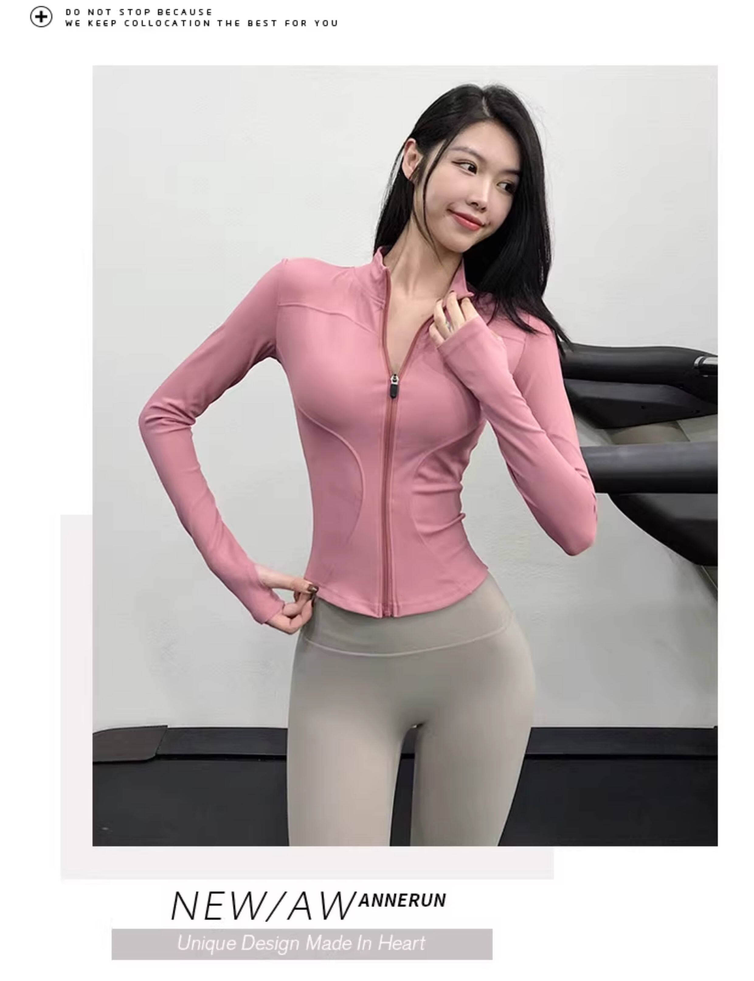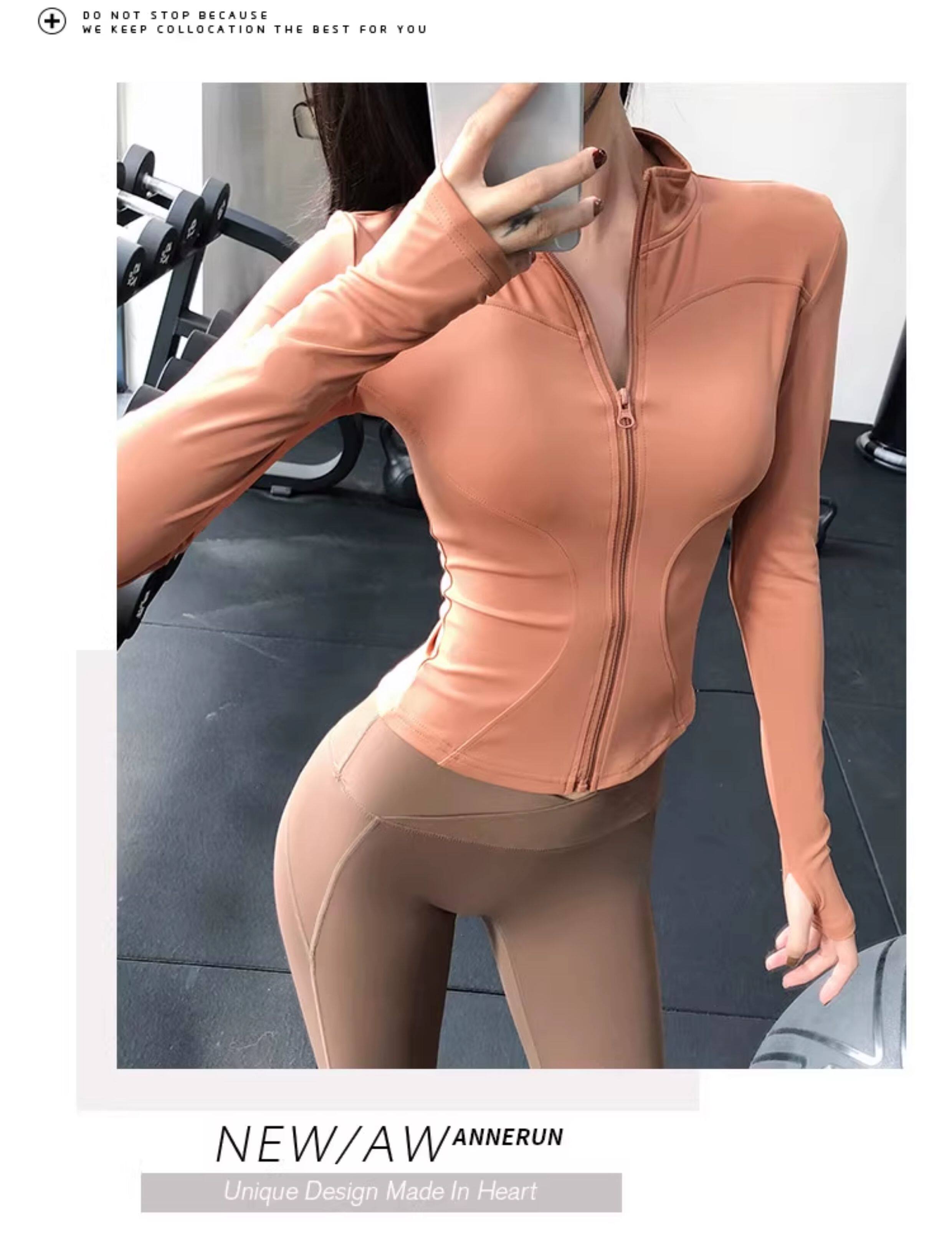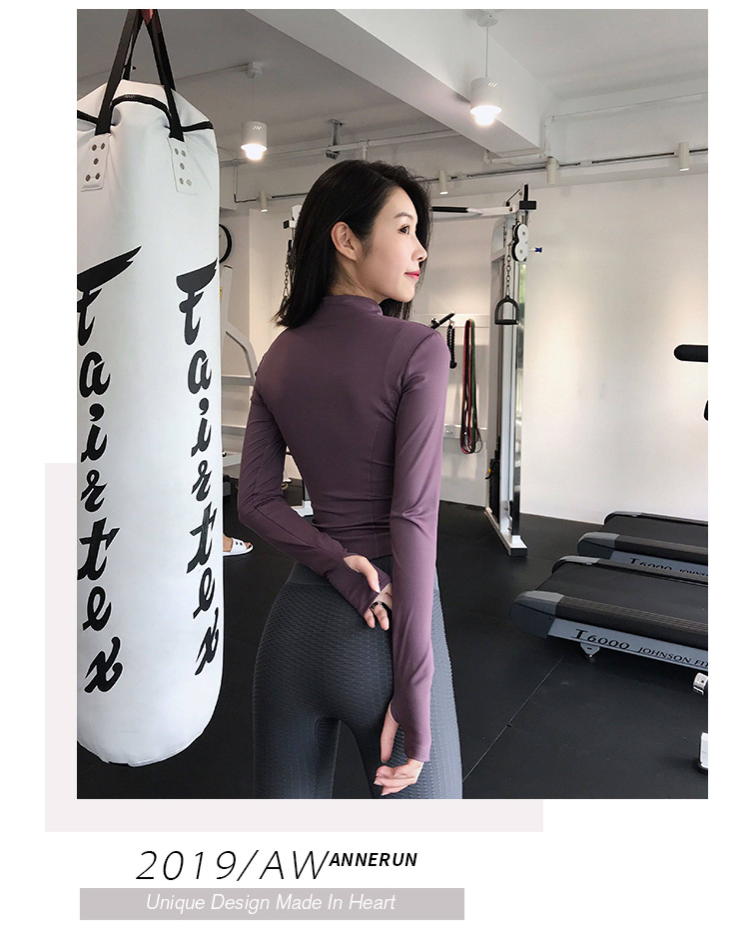 【New Color】Annerun Stand Collar Yoga Wear Women's Slim Fit Sports Jacket Outdoor Bare-Feel Long Sleeve Fitness Top