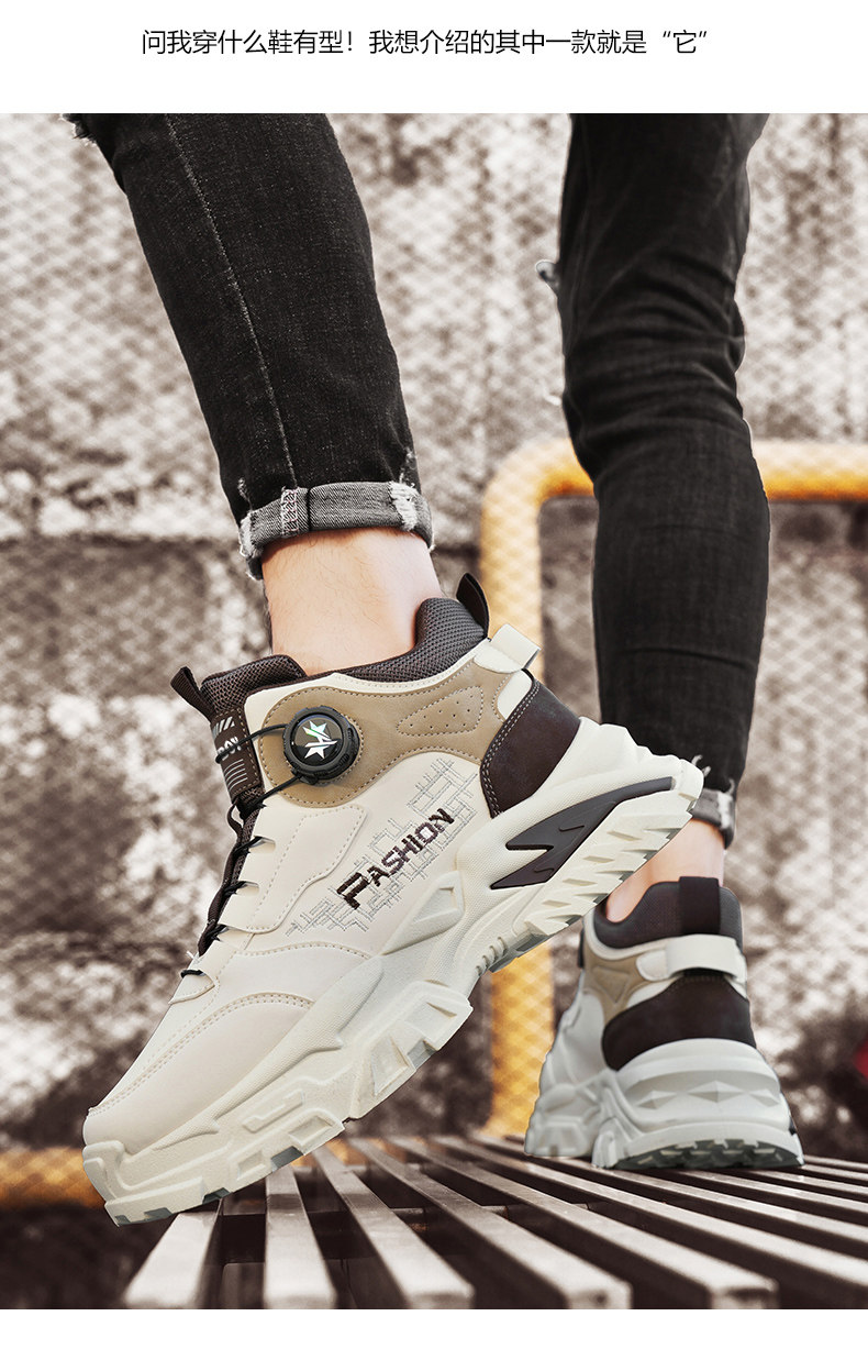 Playboy High-Top Men's Shoes, Winter Fleece-Lined, Rotary Buckle Dad Shoes, Thick-Soled Height-Increasing Trendy Casual Sneakers