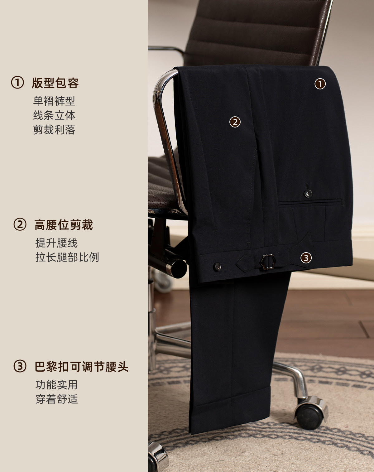 【Fine Wool, Machine Washable】Cultum Naples Men's Dress Pants for Work, Business, and Commuting, Suit Trousers