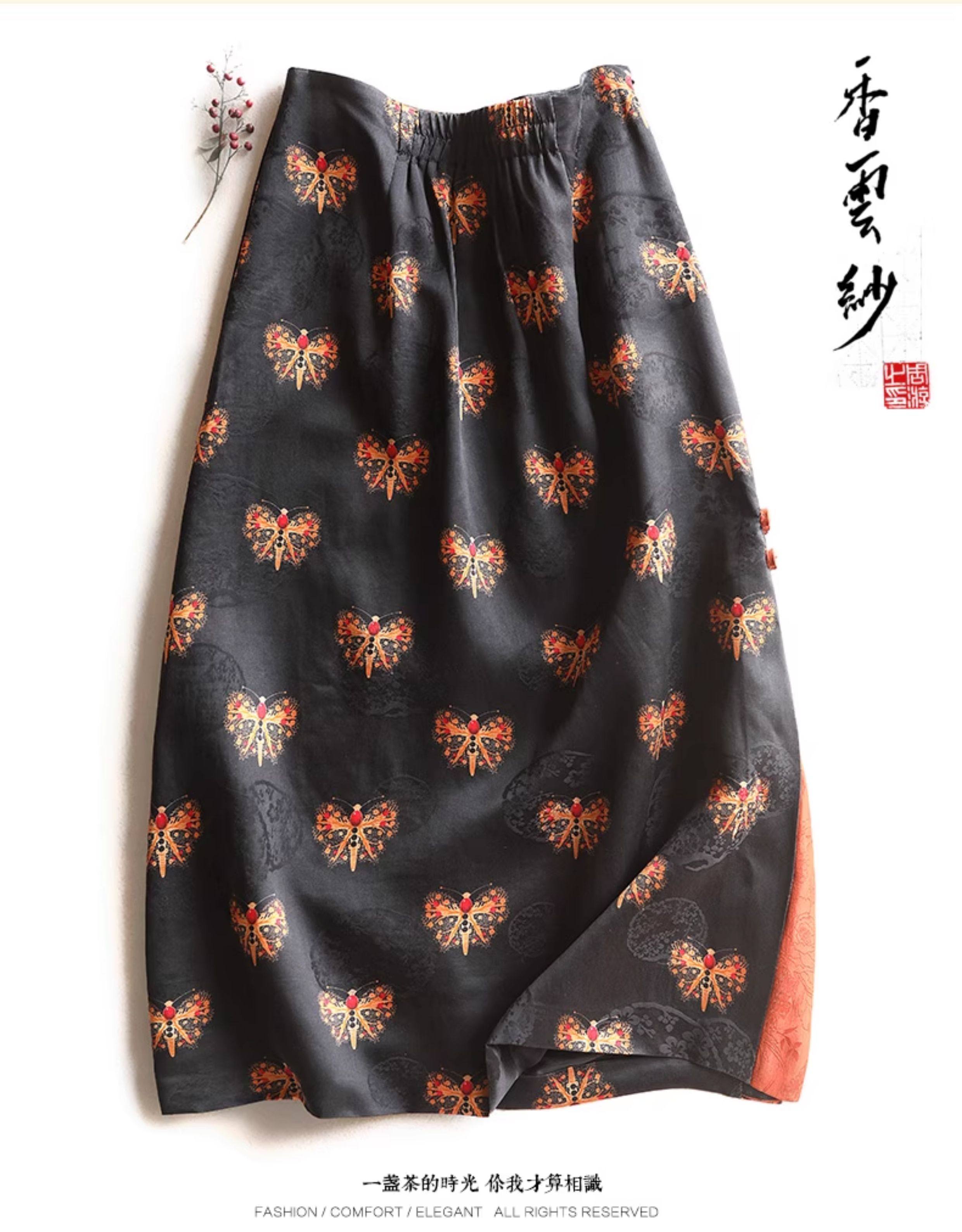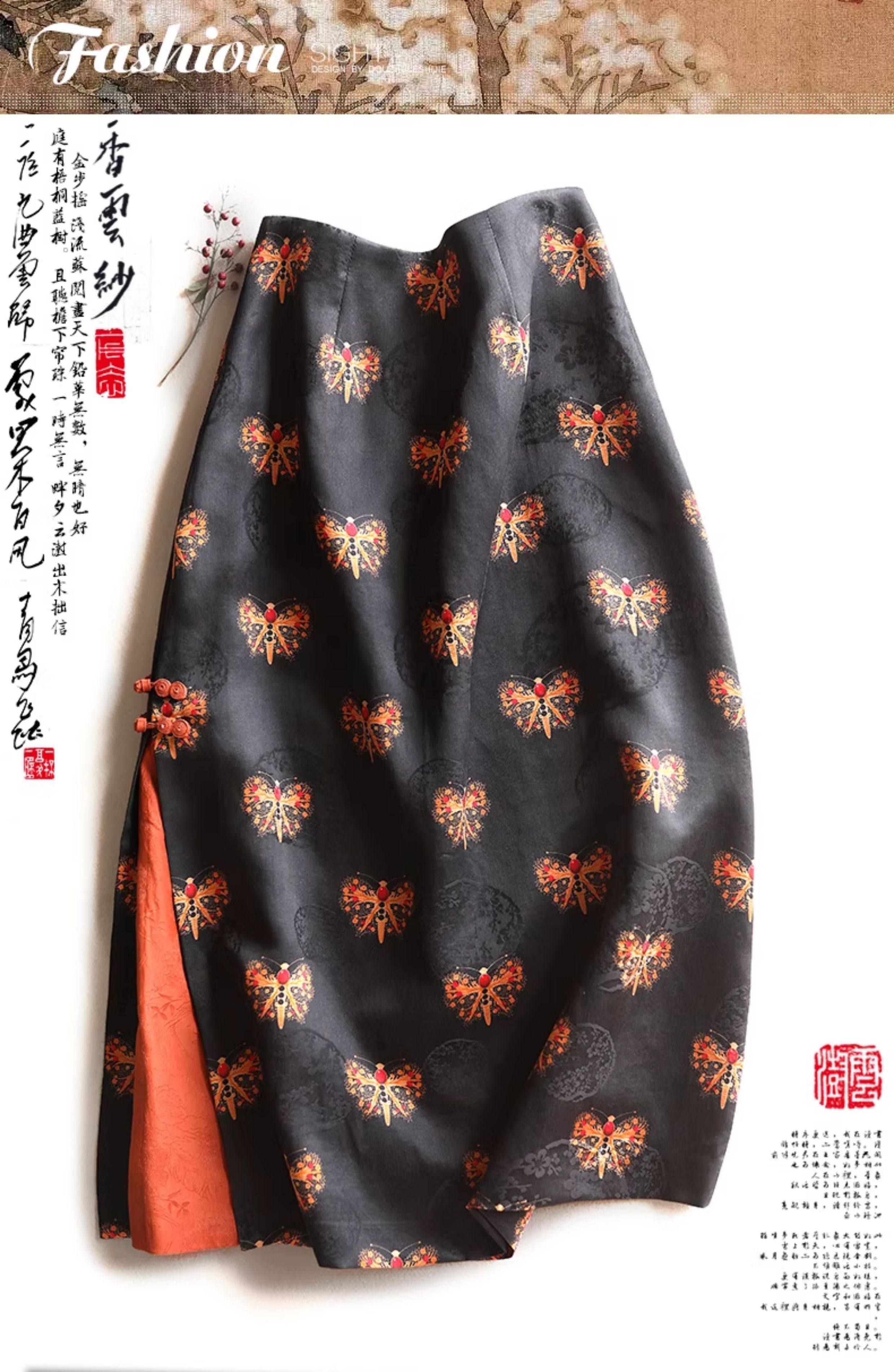 Yunshu Original Floral Fragrant Cloud Silk New Chinese Style Women's Clothing Mulberry Silk Printed Skirt Commuting Pencil Skirt