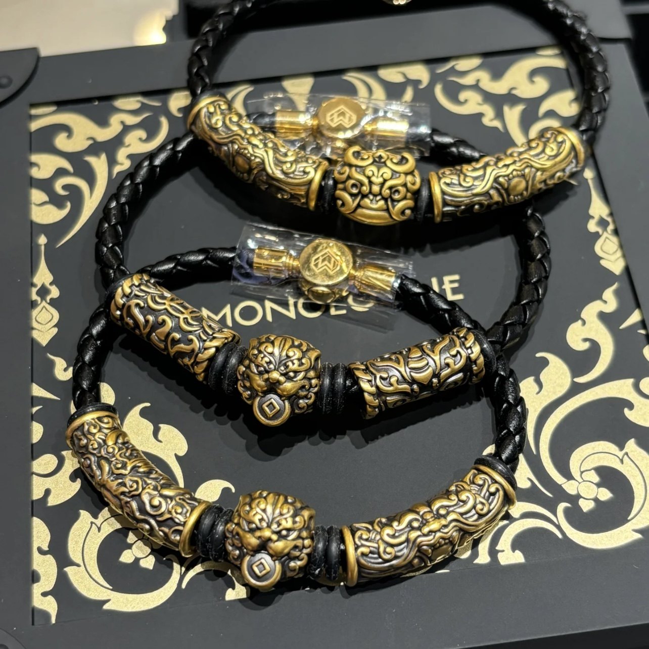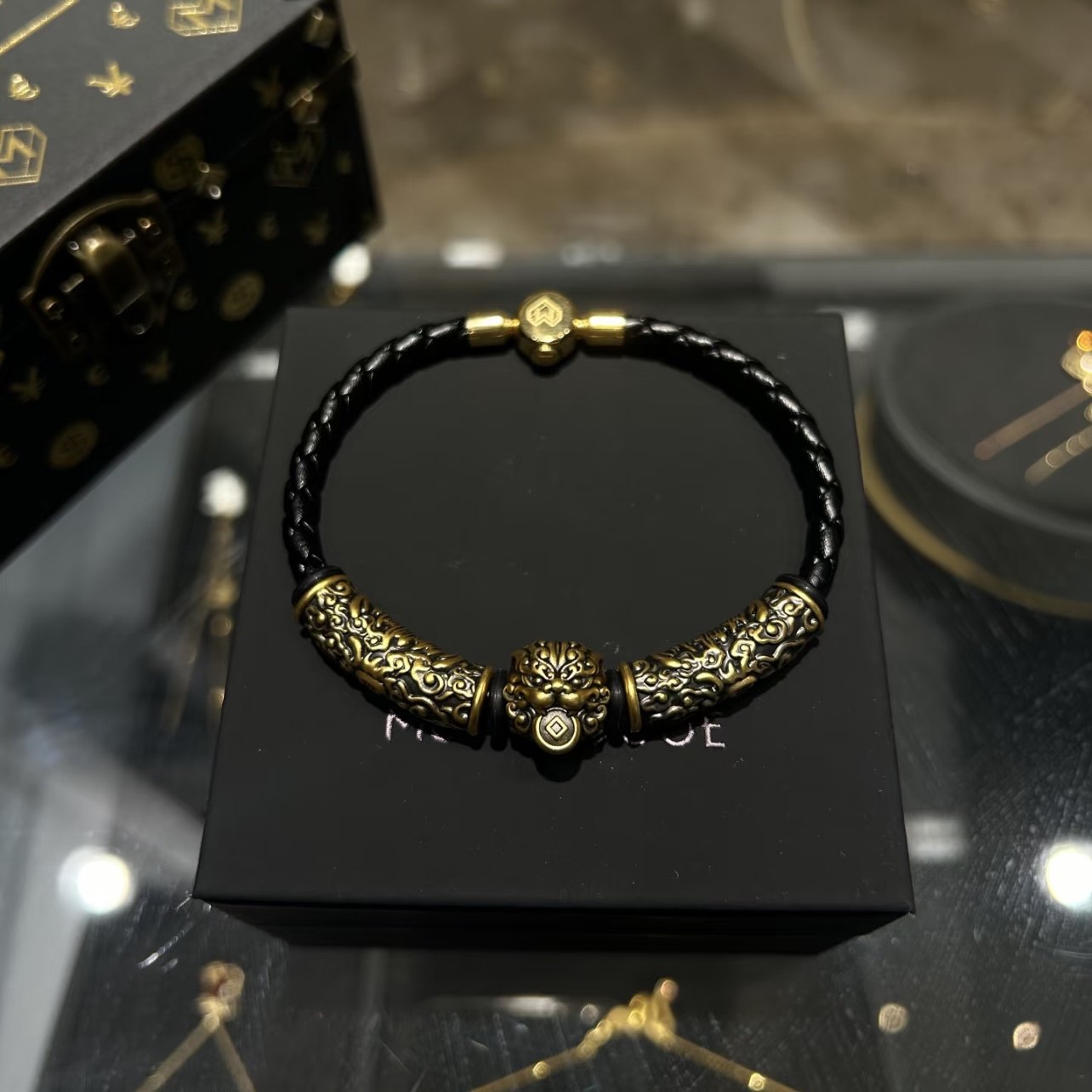 Chow Tai Fook Monologue New Model Pixiu Gold Fortune Bead Money Charm Vintage Chinese Style Men's Bracelet
