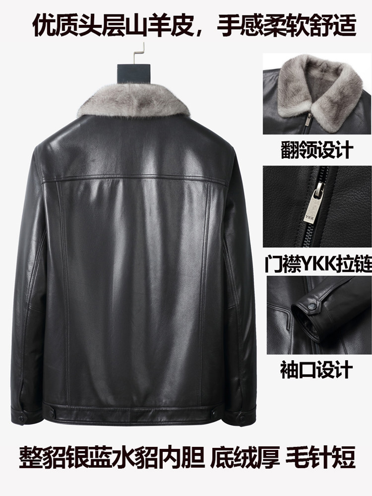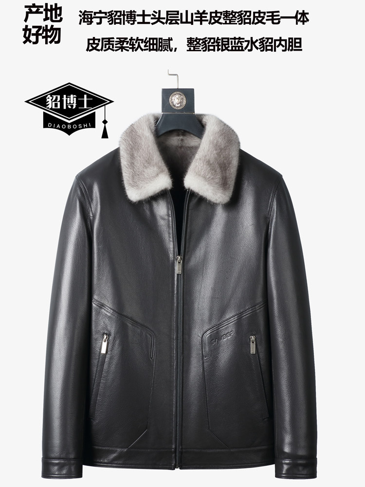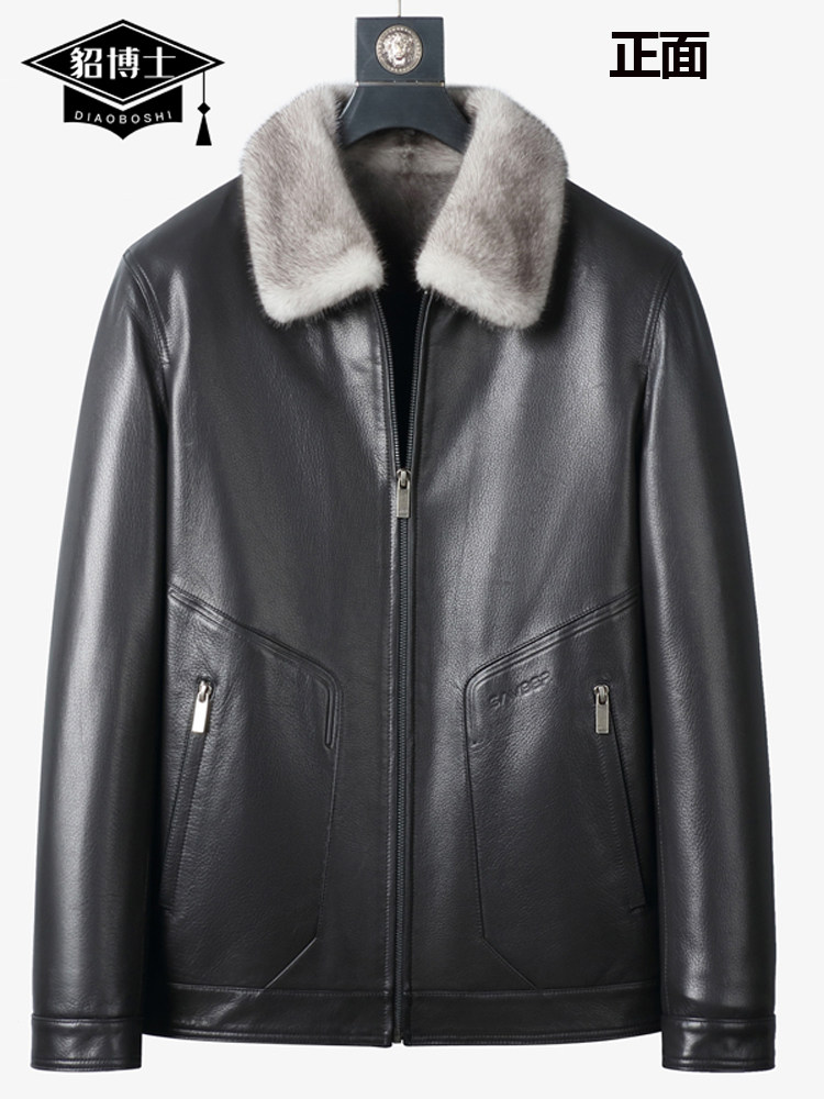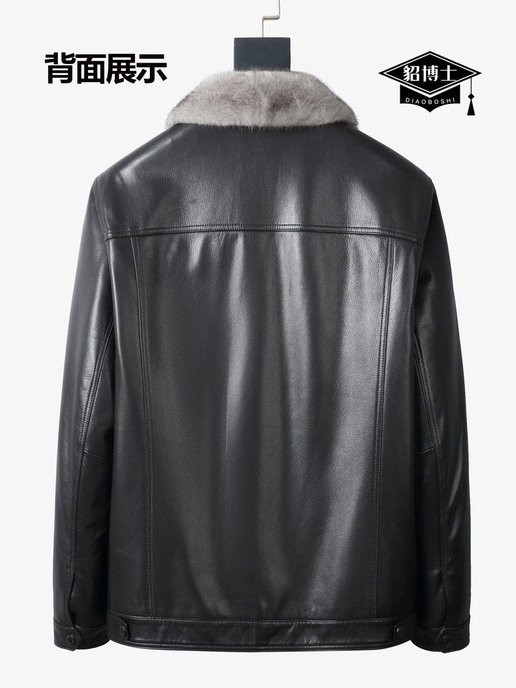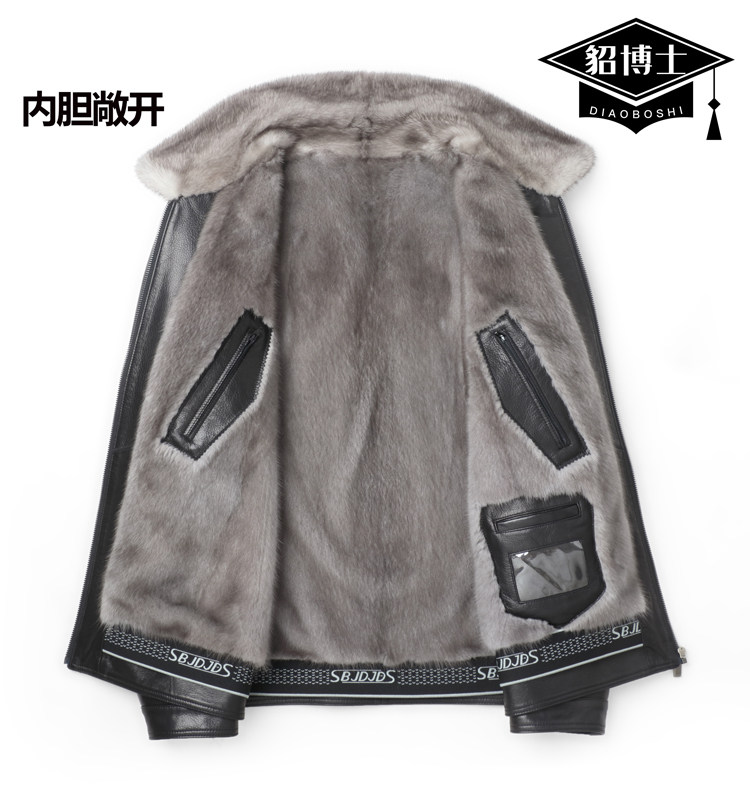 Dr. Mink Mink Fur Coat Genuine Leather Men's Short Lapel Leather Jacket Fur Integrated Fur Coat Winter
