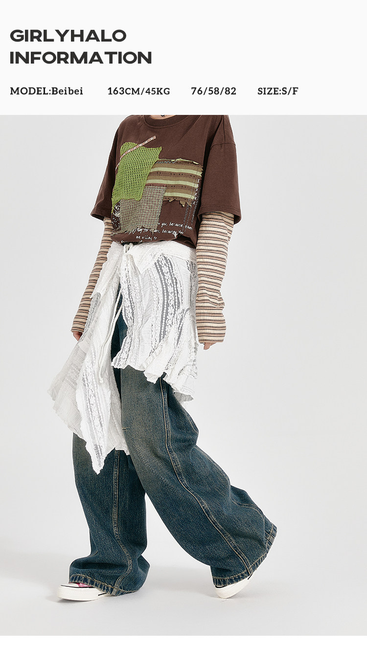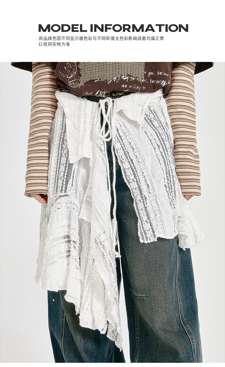 Girlyhalo American Retro White Lace Irregular Hem Skirt with One-Piece Tie, Versatile for Layering