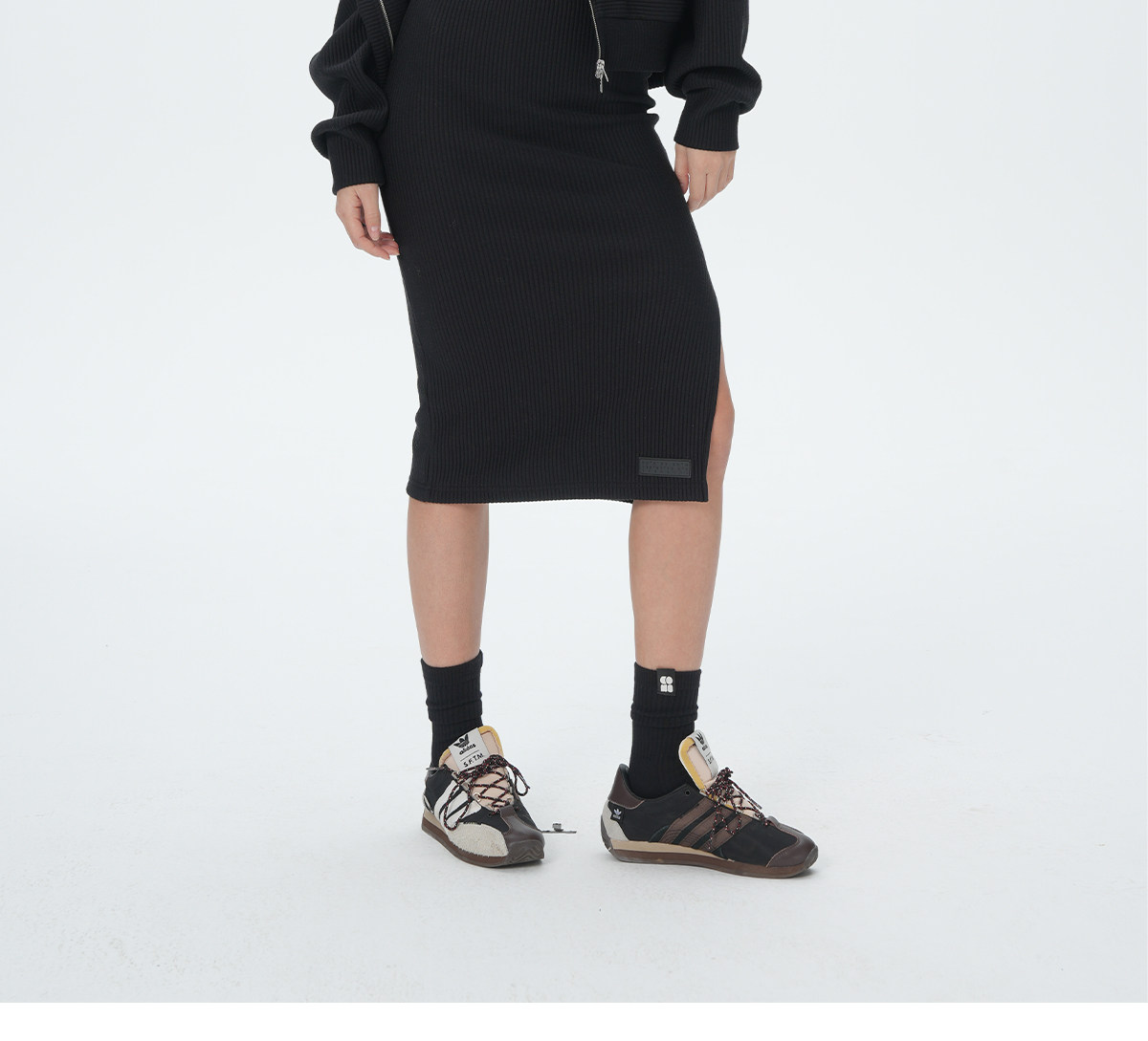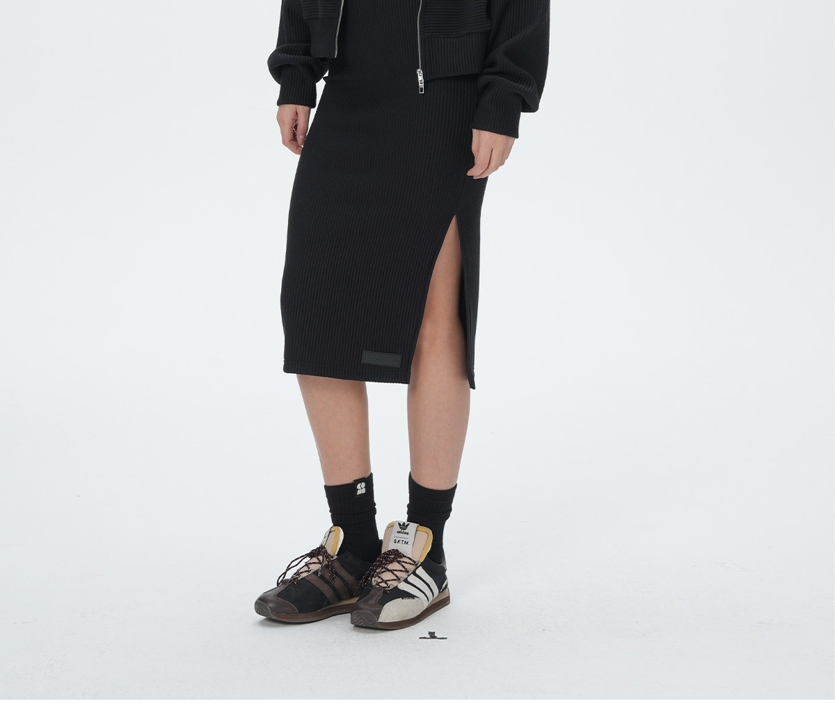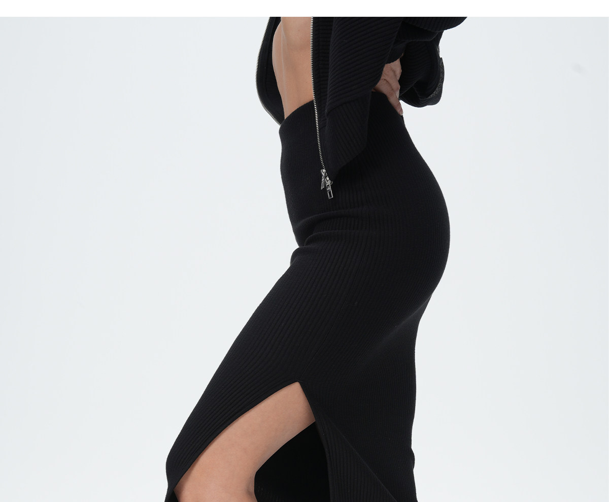 Konikoni Slim-Fit Sports Skirt Knitted Elastic Hip-Hugging Slit Casual Sexy Mid-Waist Knitted Skirt