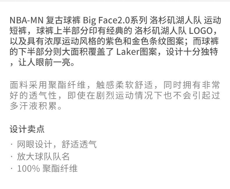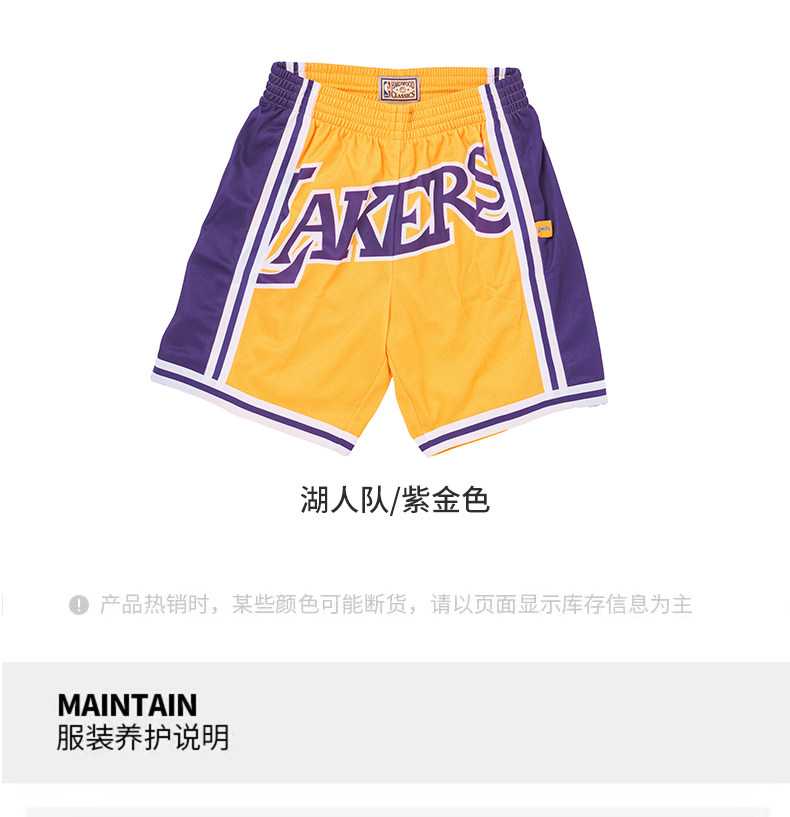 Mitchell&Ness Nba Official Retro Shorts Bigface2.0 Series Lakers Quick-Drying Shorts Pants