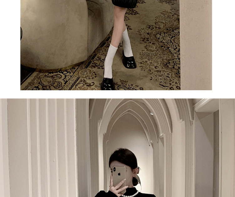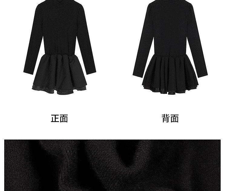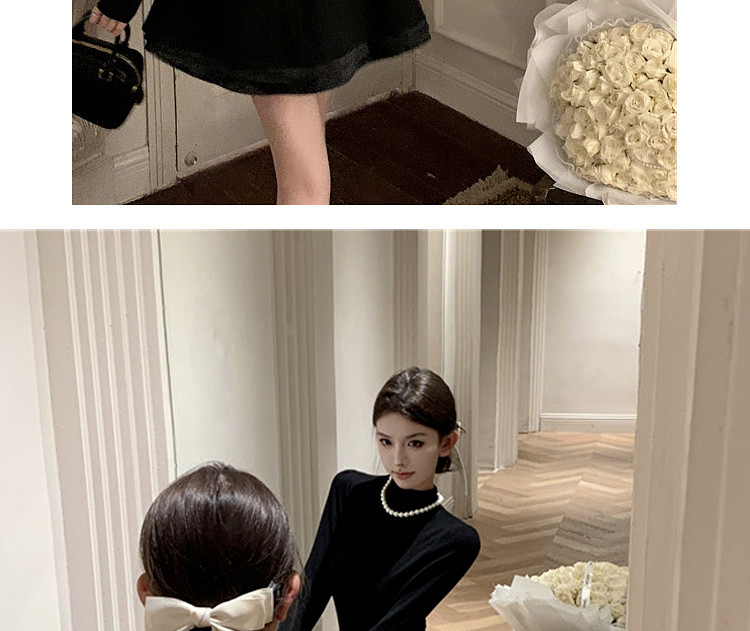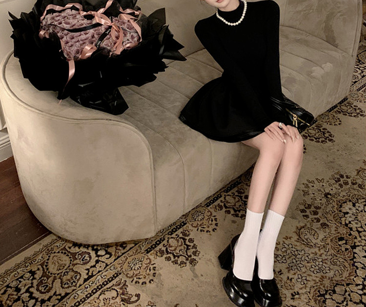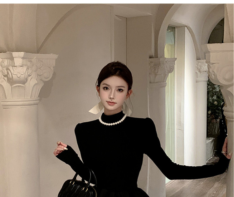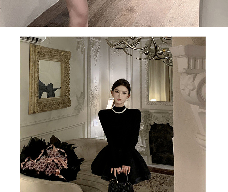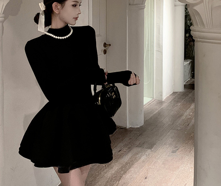 Miu Miu Style Early Autumn Outfit Knitted Sweater Dress for Women, Elegant Style for Petite Figures, Black Puffy Skirt