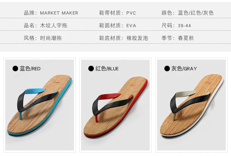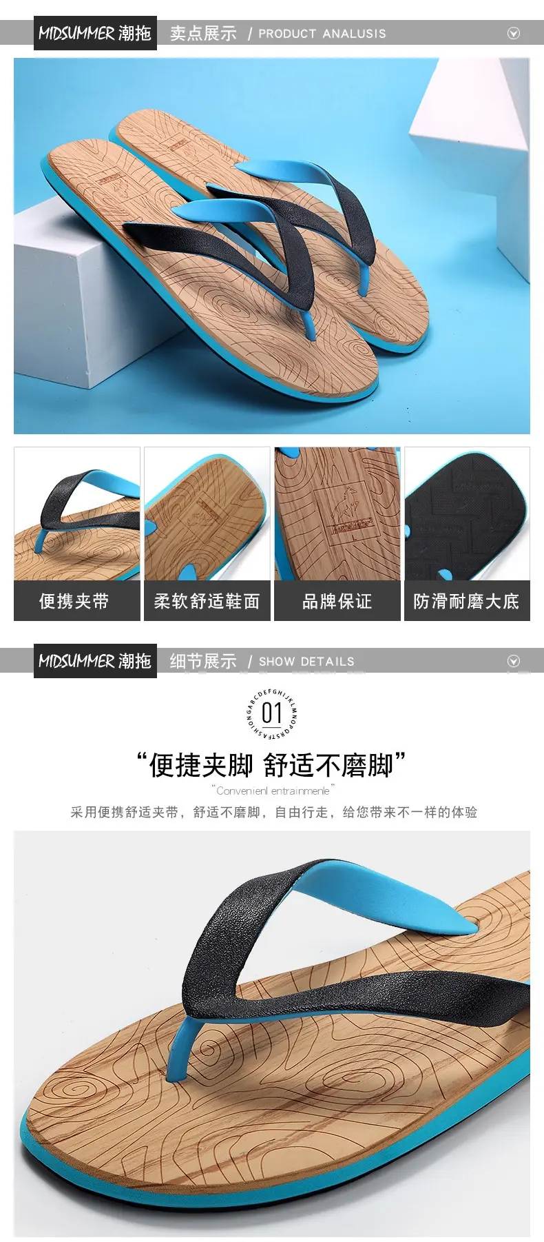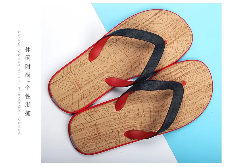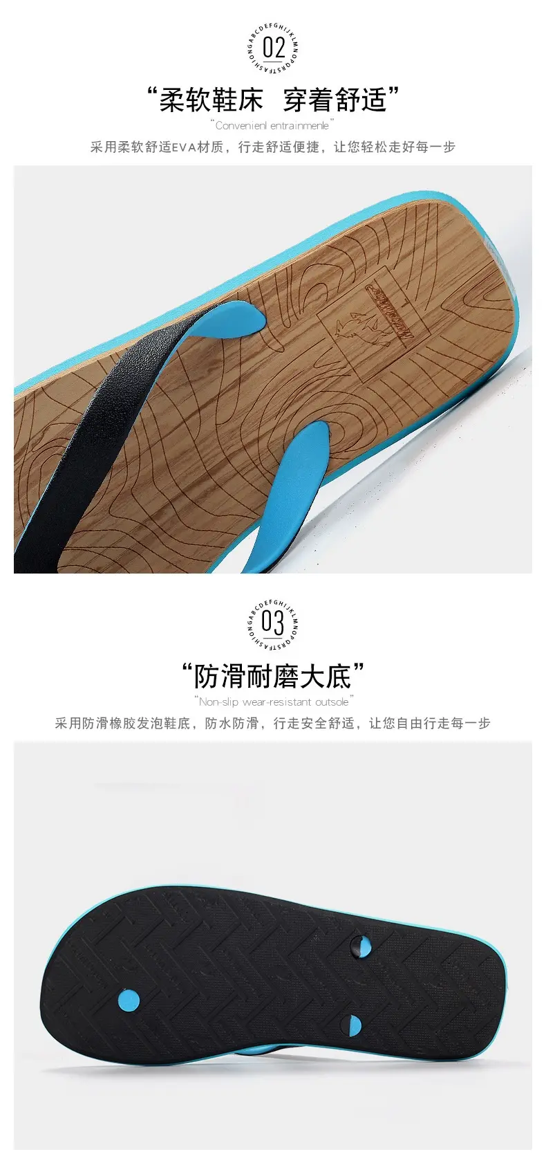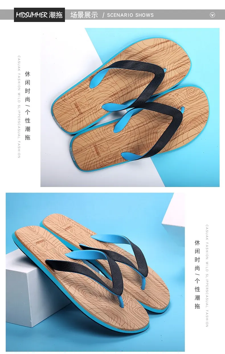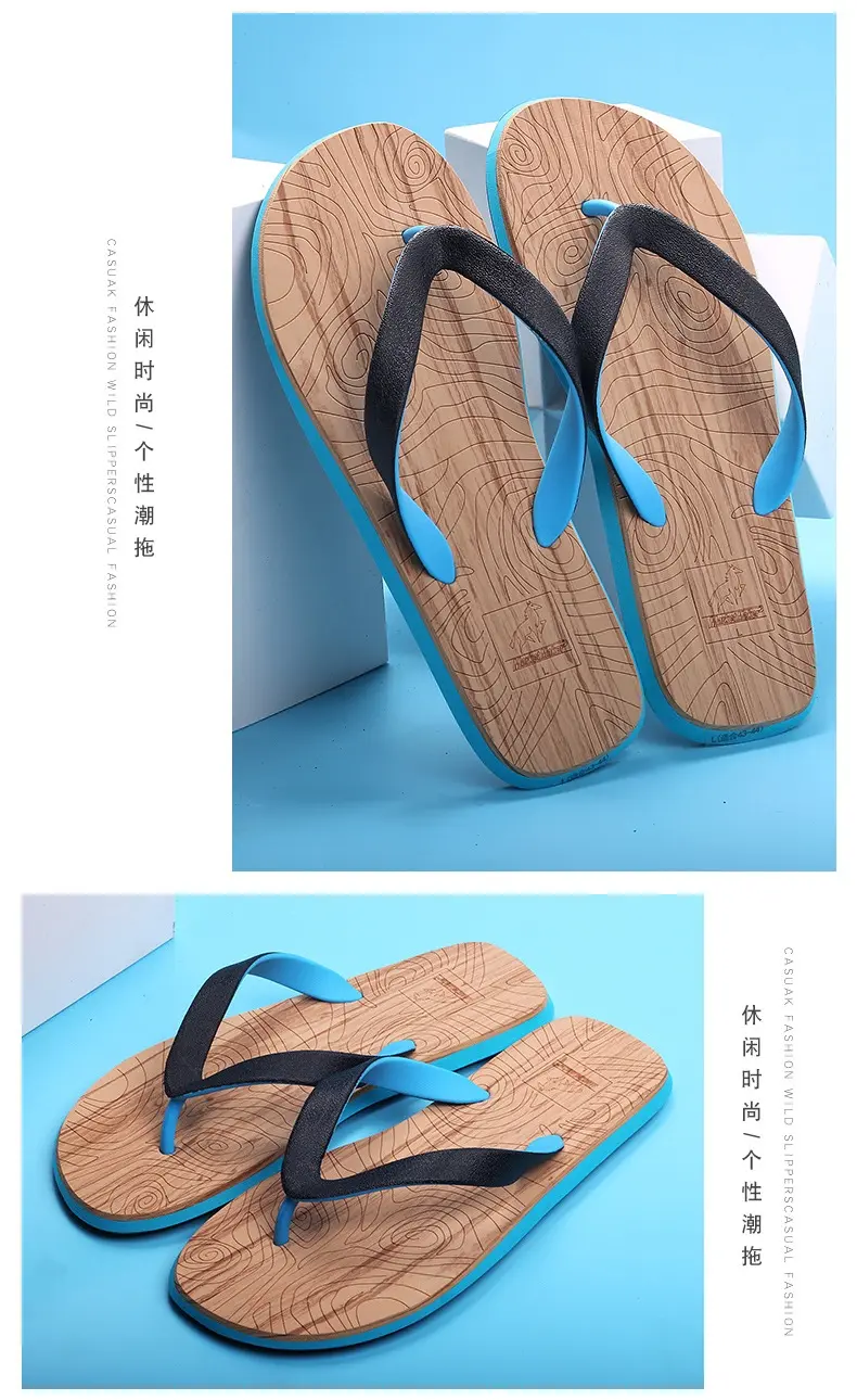 New Men's Slippers, Sports Flip-Flops, Non-Slip Wood Grain Beach Shoes, Summer Flip-Flops, Men's Trendy Outer Wear Sandals in Stock