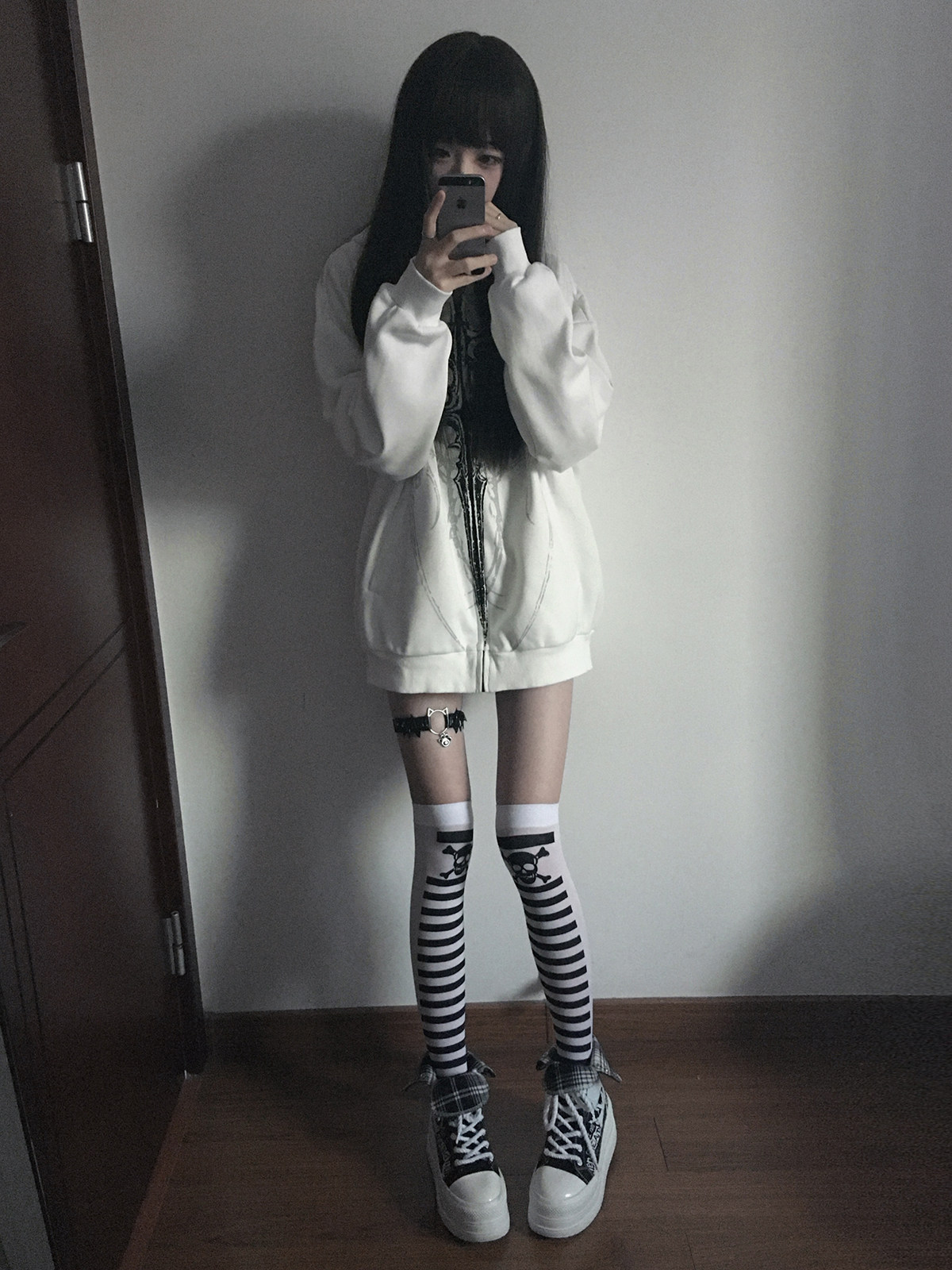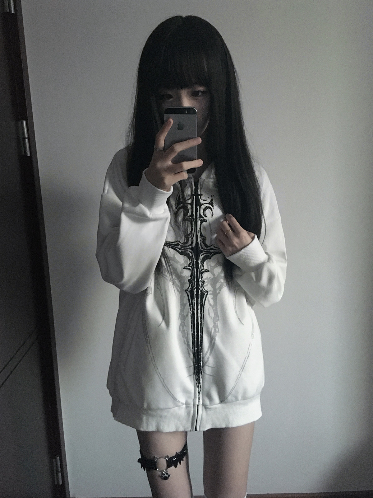 Wet Body Original Subculture Dark Style Thin Hooded Rock Punk Loose Jacket Tattoo Print Top for Women