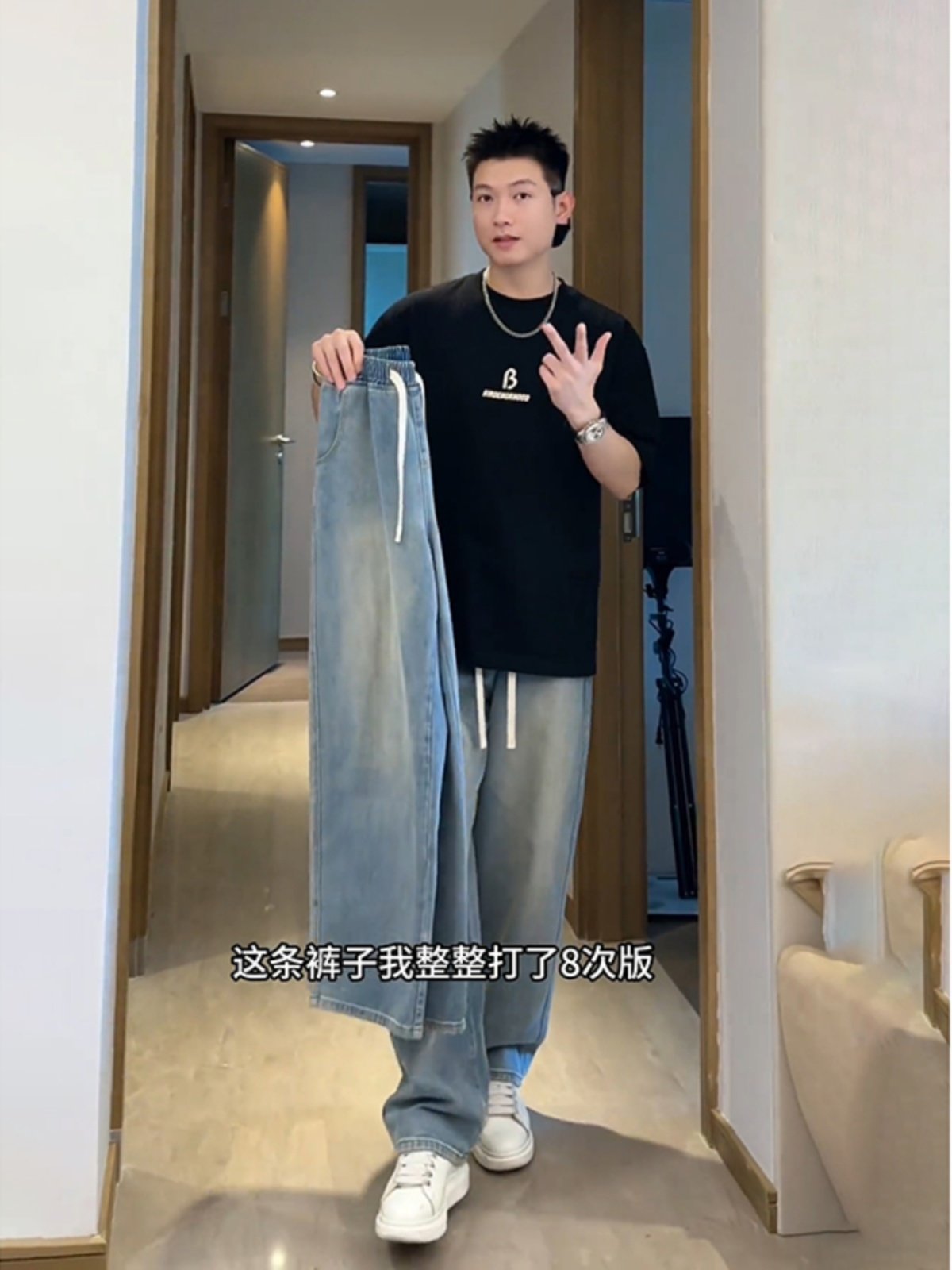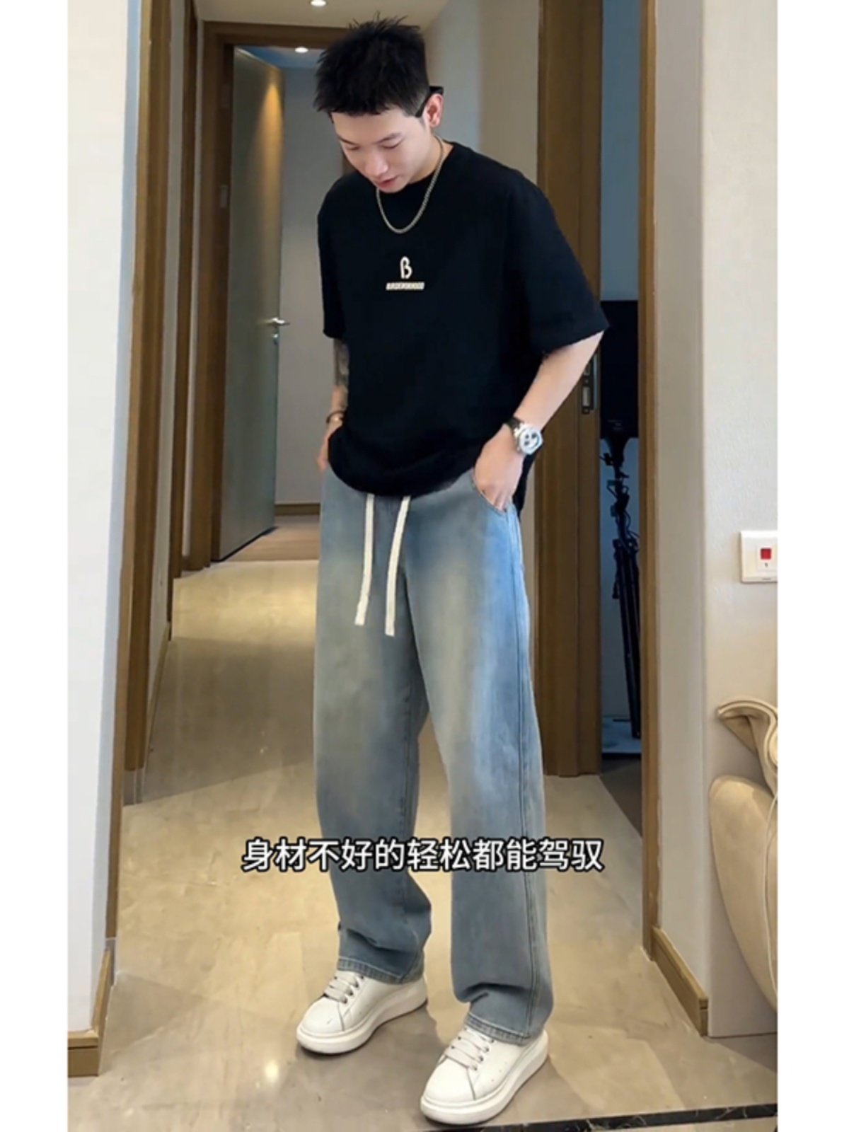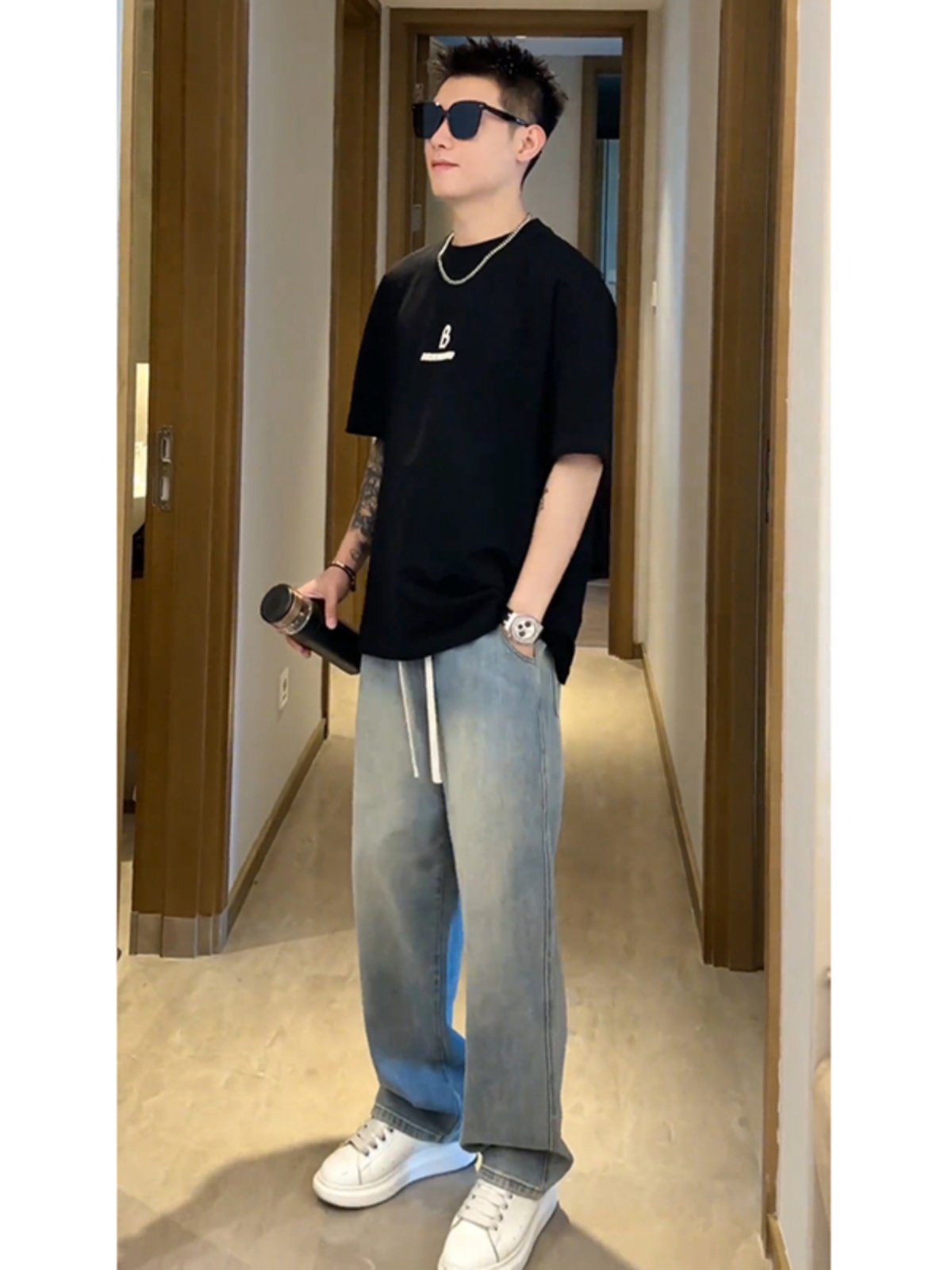 Light Blue Ice Silk Jeans for Men, Summer Thin Style, American Style, Cool and Handsome Pants for Teenagers, Straight Loose Wide-Leg Pants