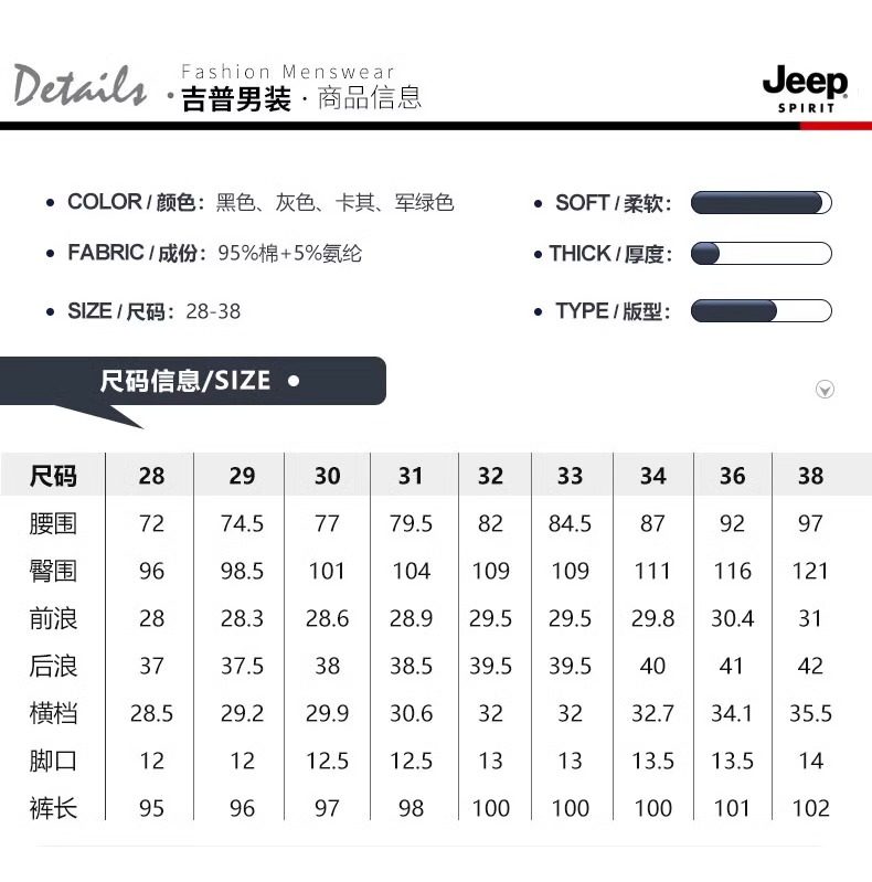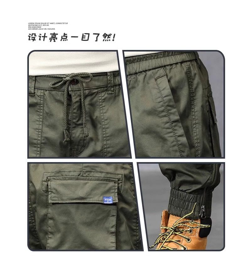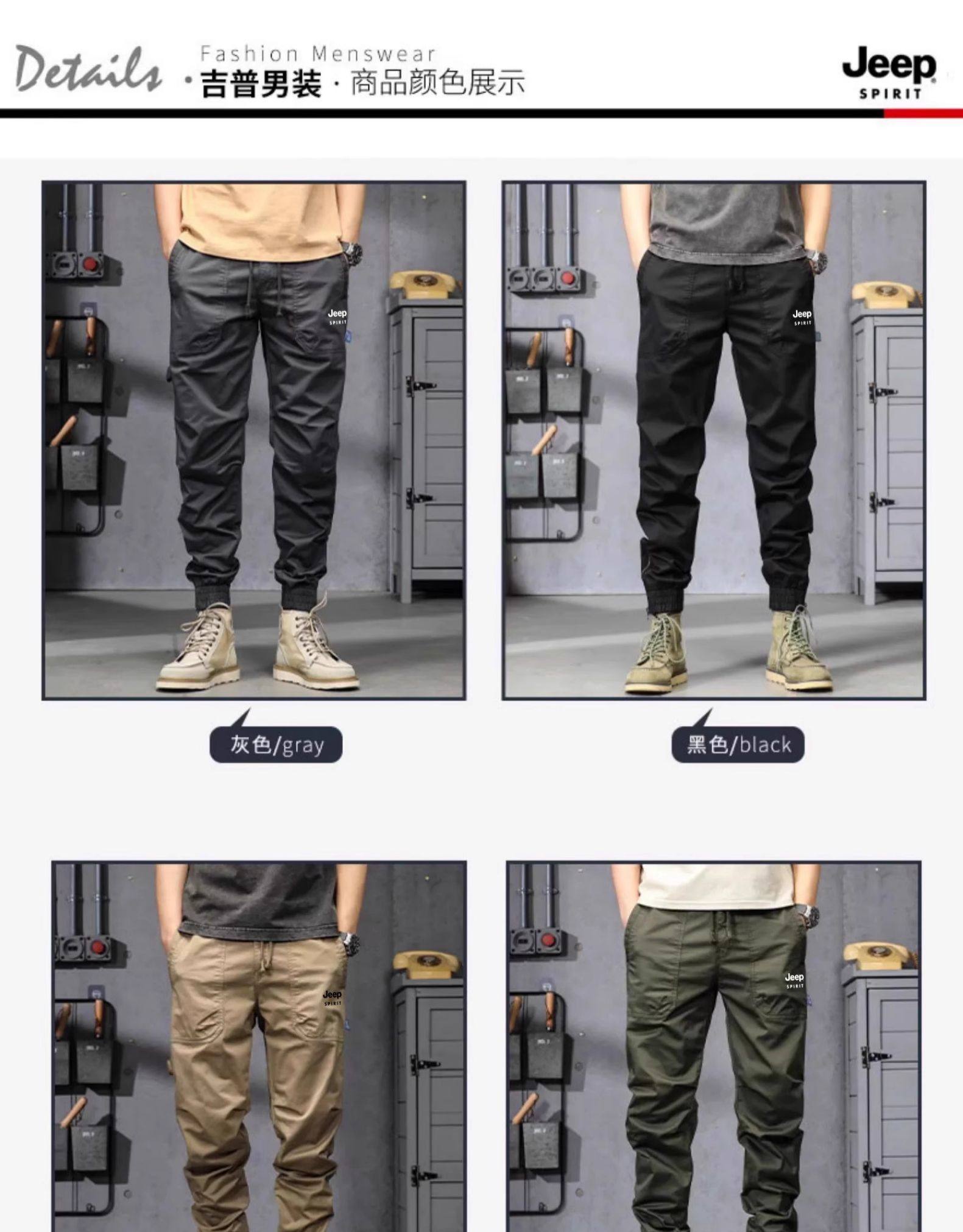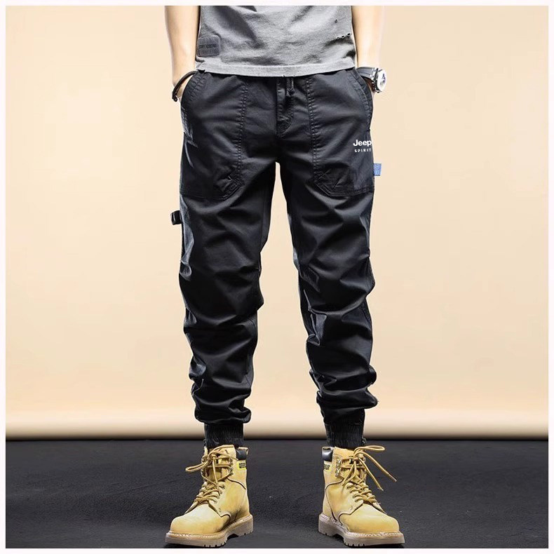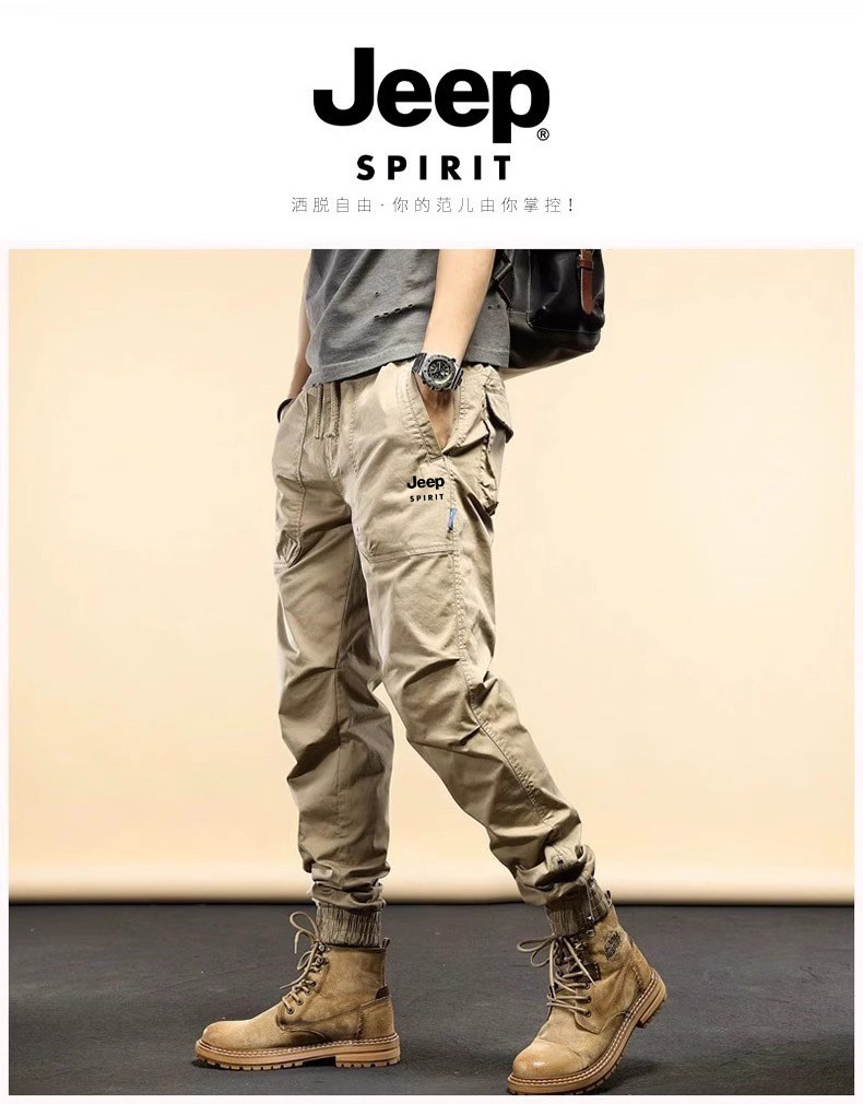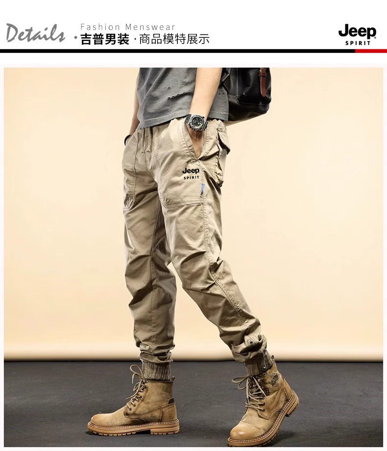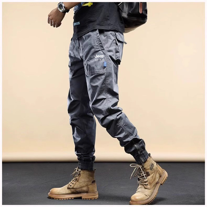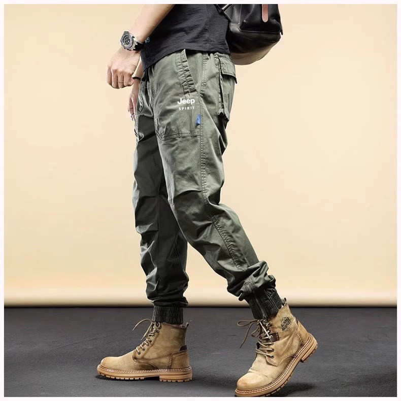 Jeep Men's Cargo Pants New Mountain Style Spring and Autumn Sports Pure Cotton Fleece-Lined Jogger Pants Versatile Casual Long Pants