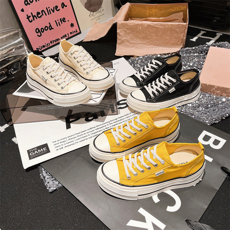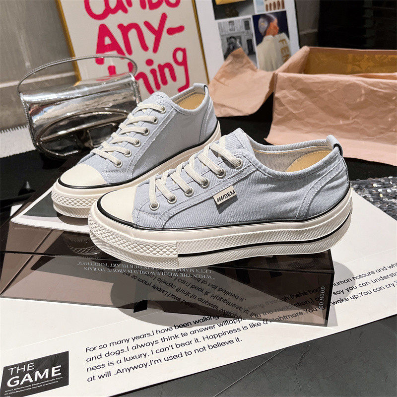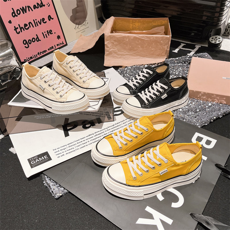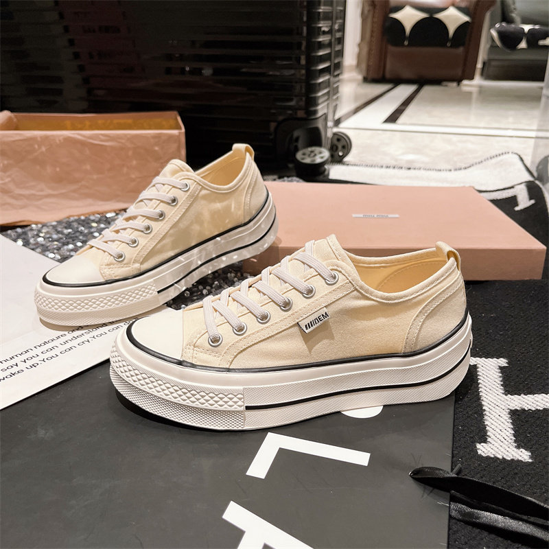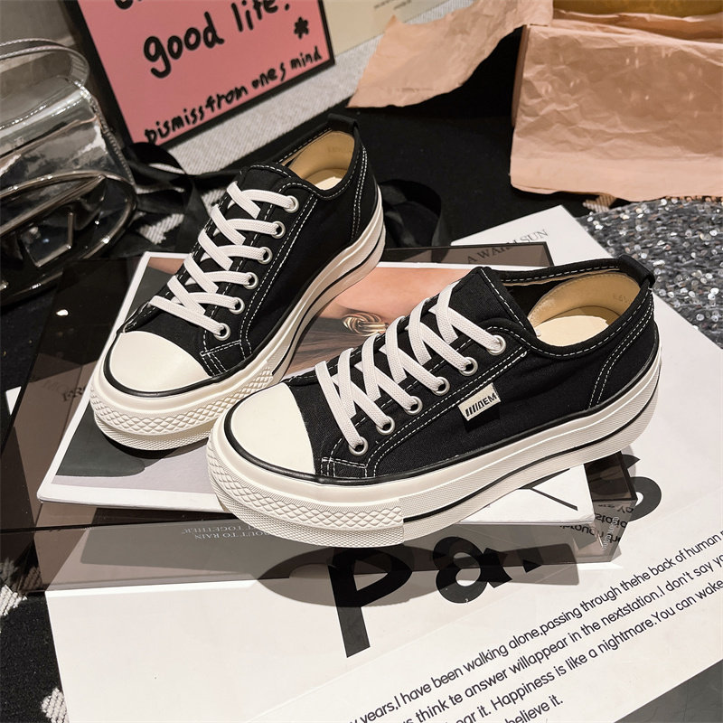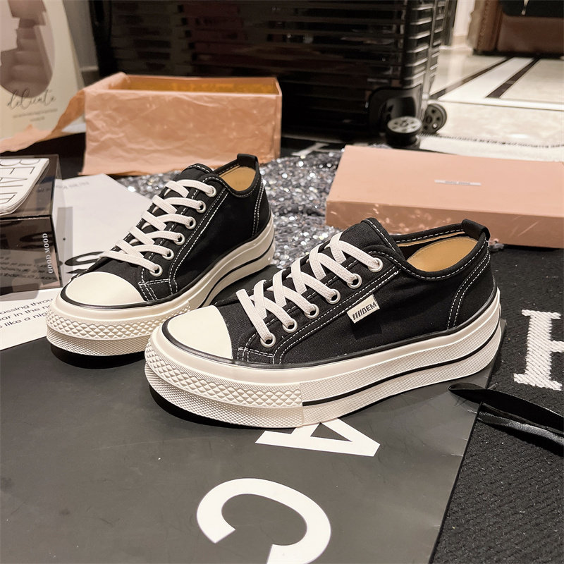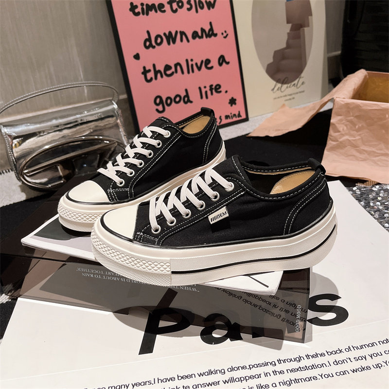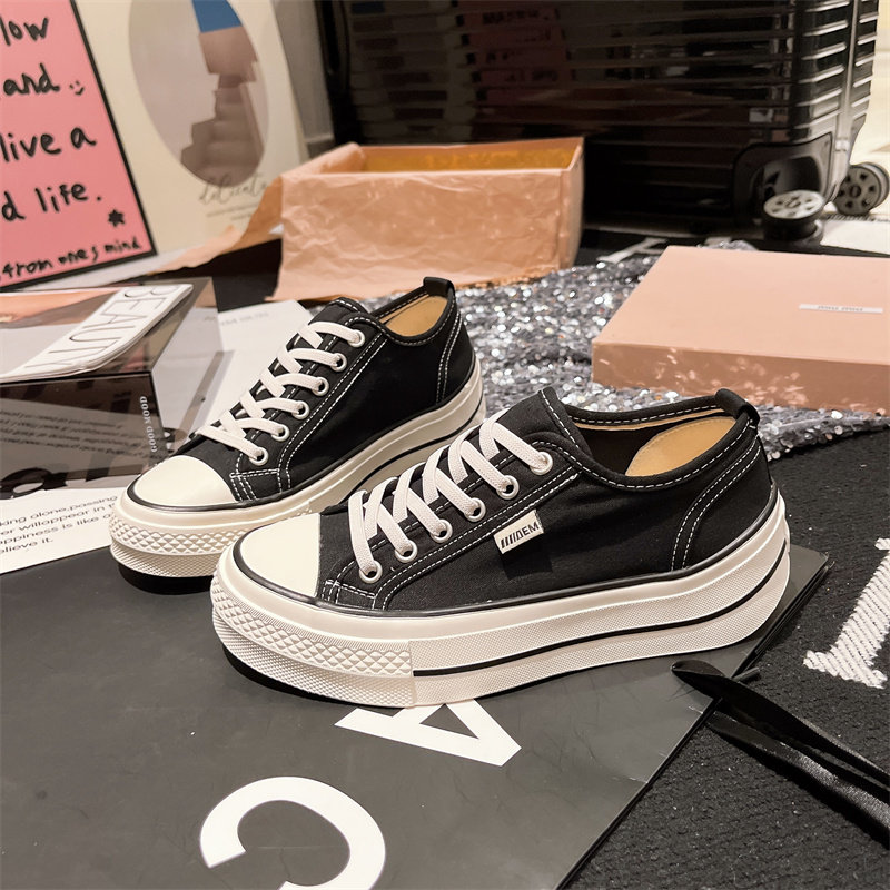 Hong Kong Genuine Leather Versatile Round-Toe Flat Canvas Shoes for Women 2025 Spring and Autumn New Classic Black Lace-Up Casual Sneakers