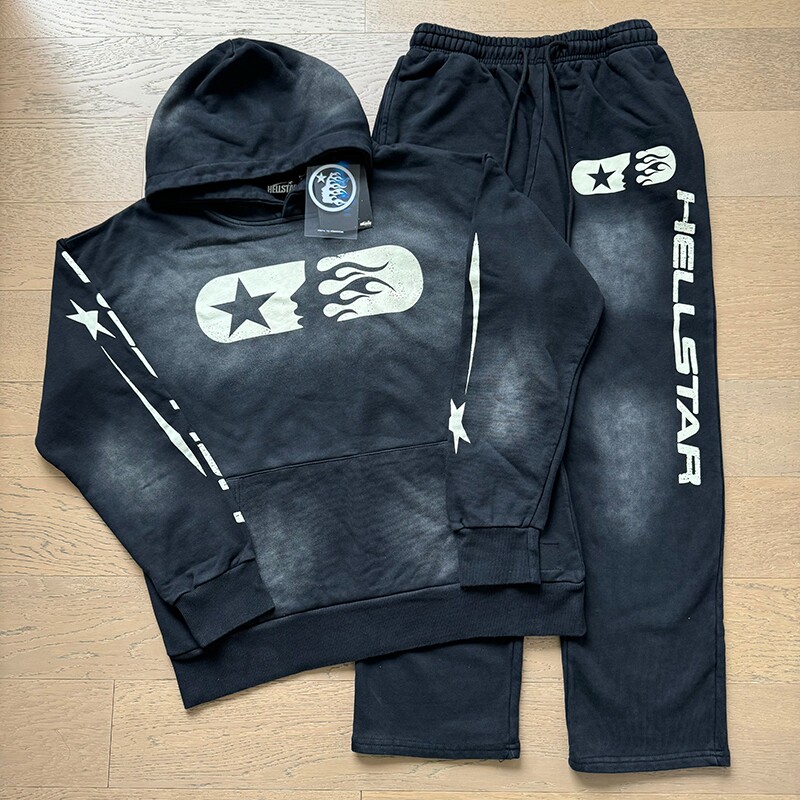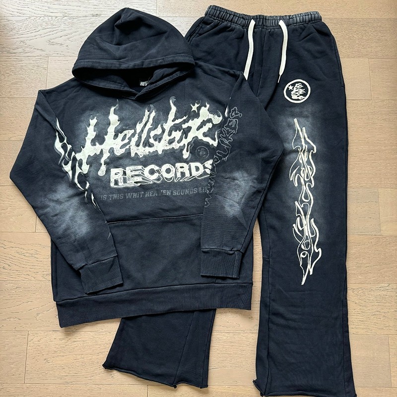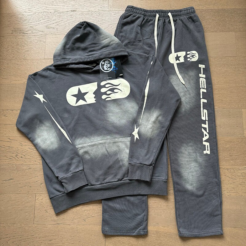 Real Shot of Hell Star Trendy High Street Distressed Washed Letter Pattern Print Unisex Retro Foreign Trade Hooded Sweatshirt