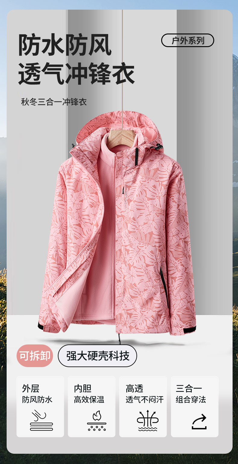 Men's and Women's Three-In-One Jacket with Thin Removable Liner, Windproof and Waterproof, Outdoor Mountaineering Clothing for Couples in Autumn and Winter