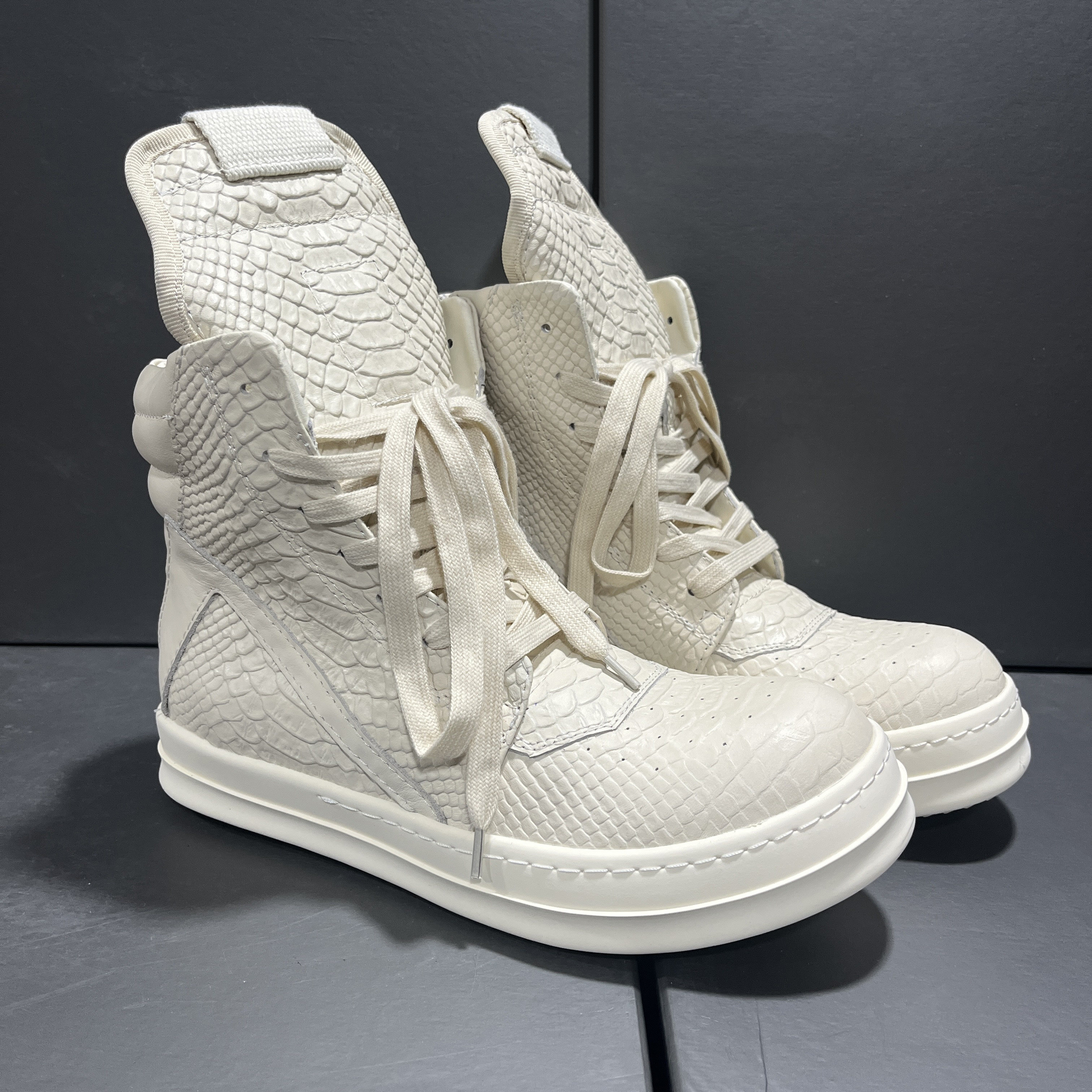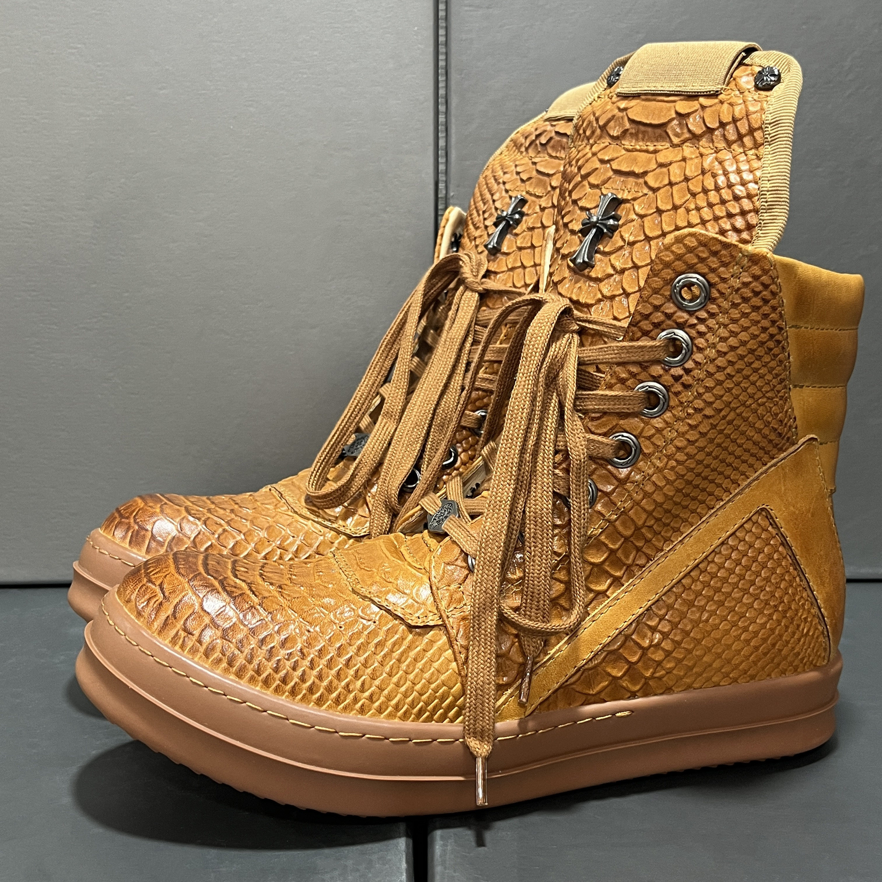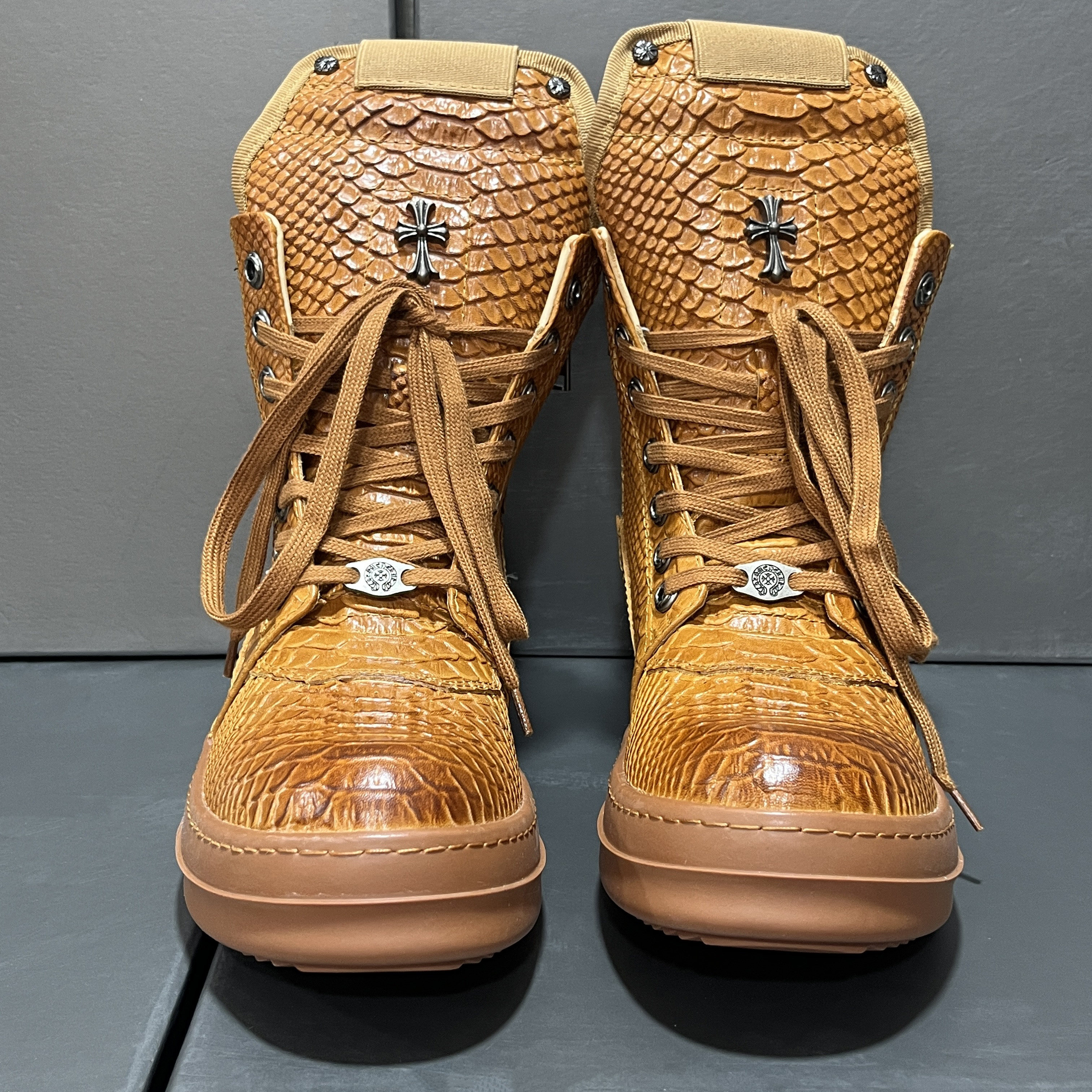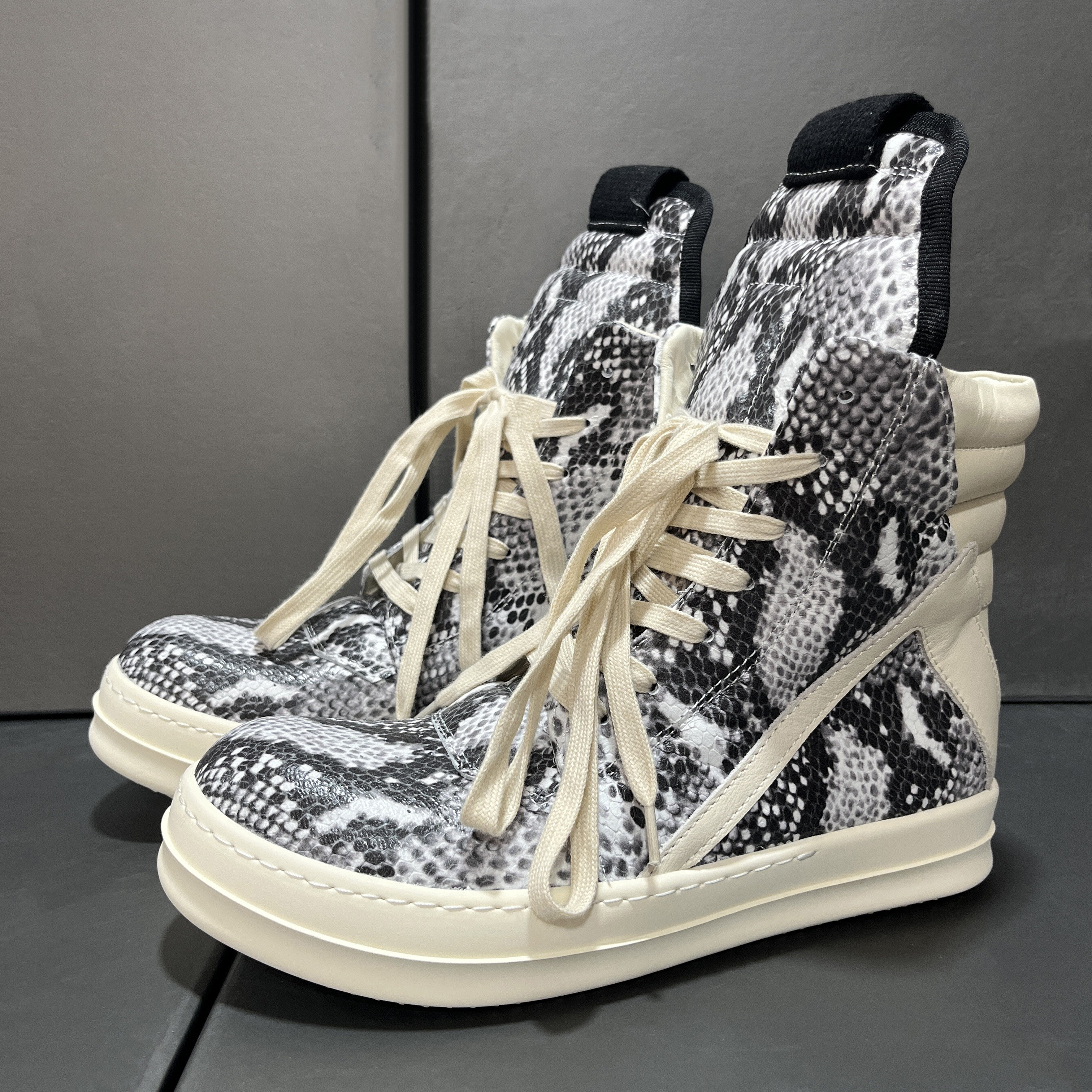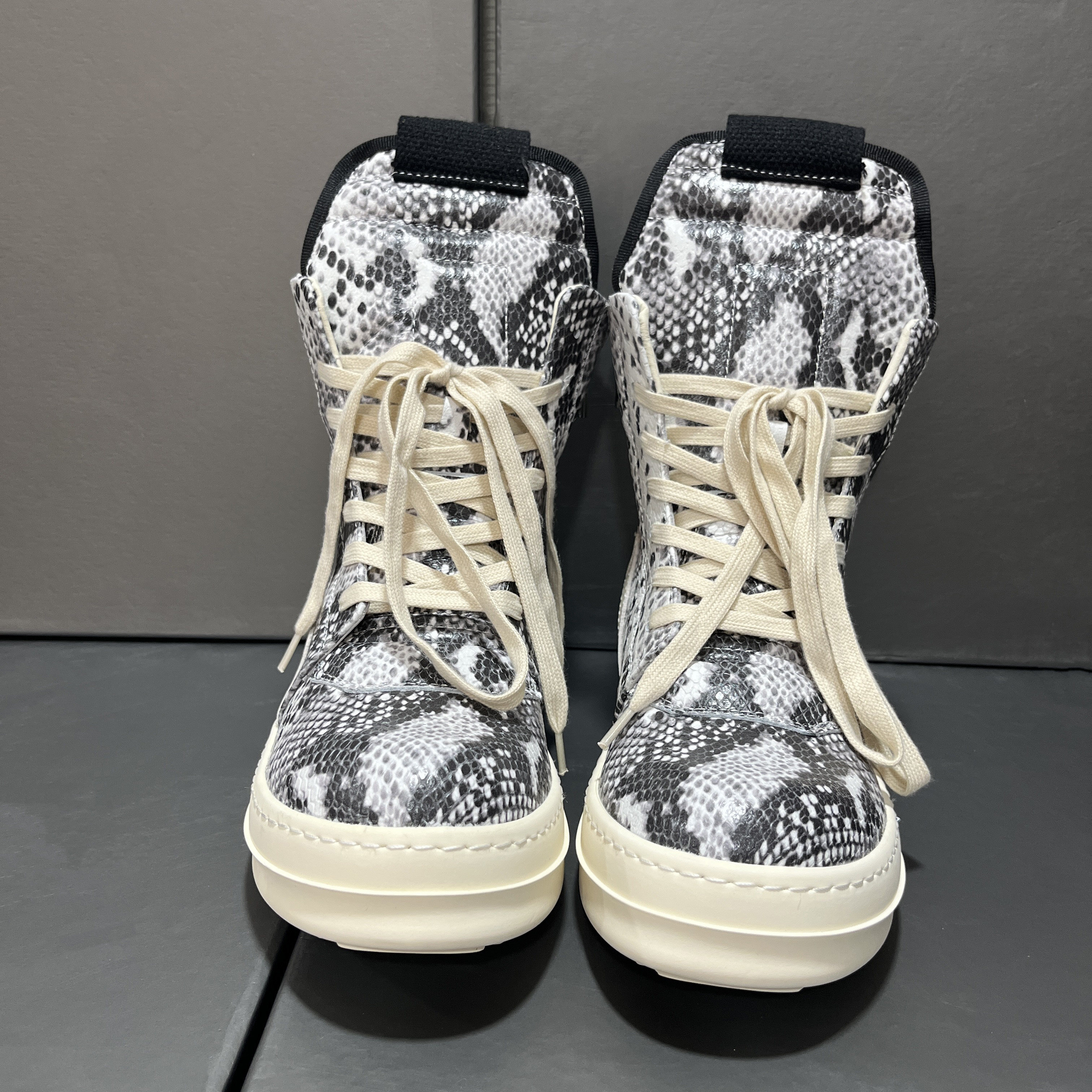 2025 New Ro Shoes High-Top Black and White Snake Pattern Inverted Triangle Genuine Leather Sneakers Men's Thick-Soled Casual Trendy Men's Short Boots