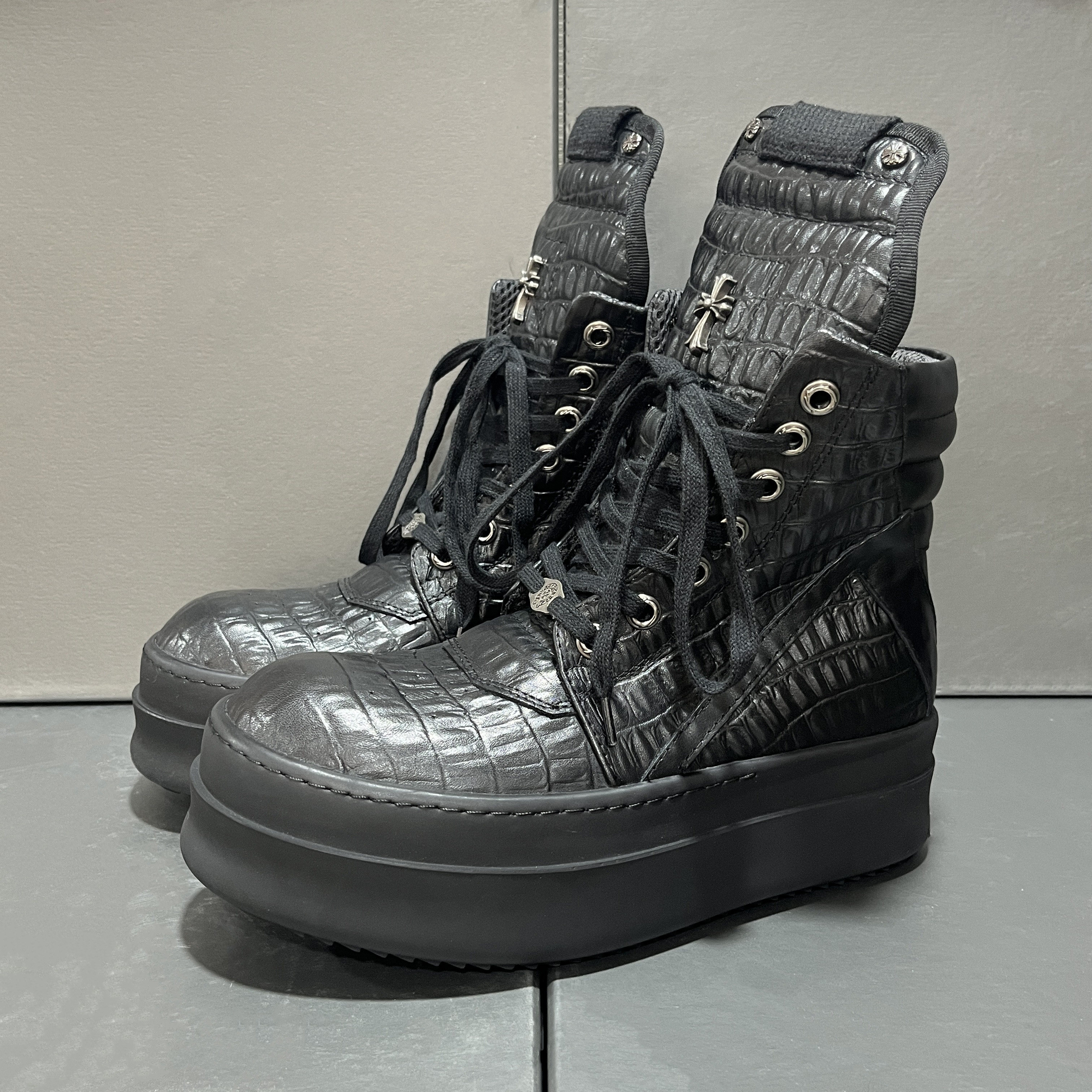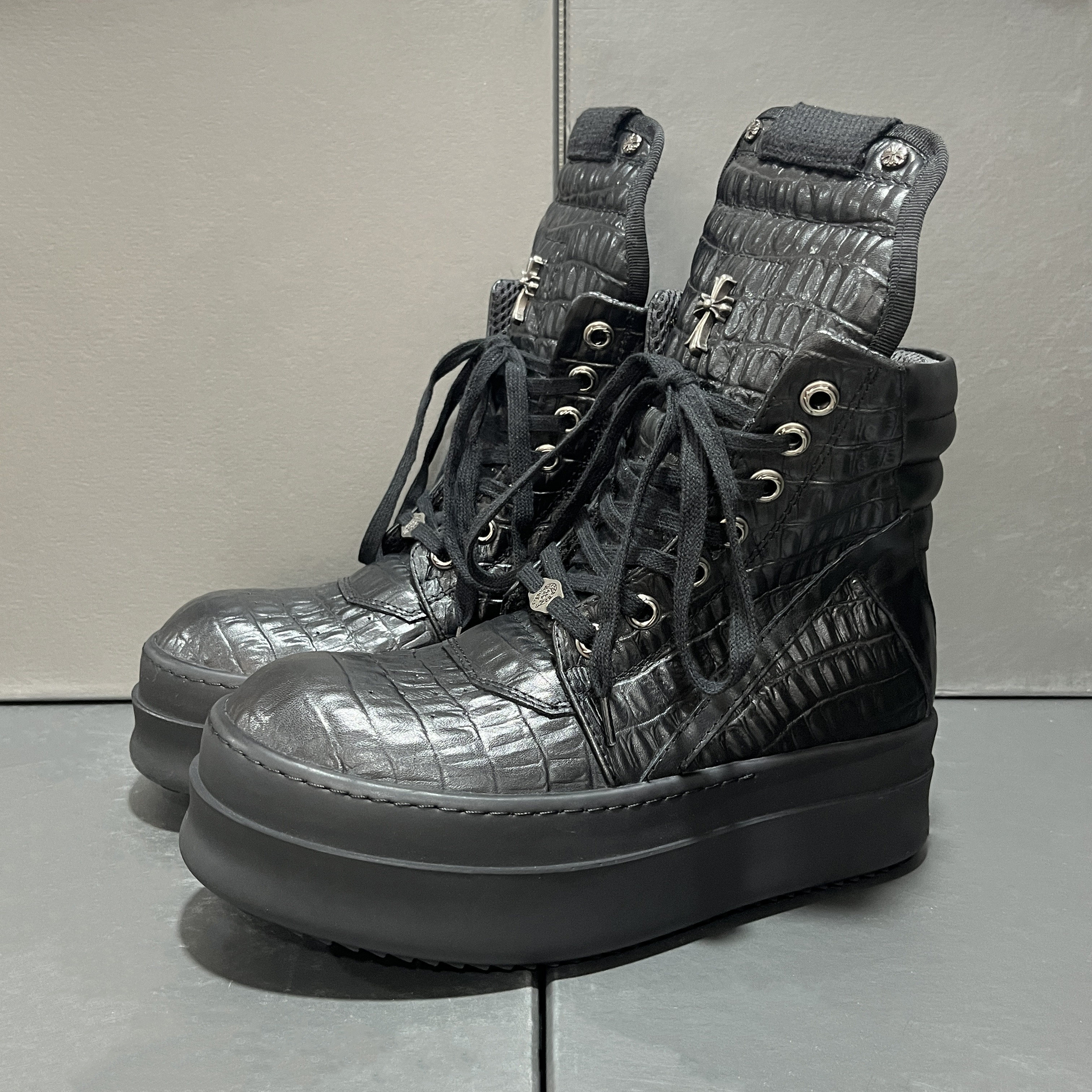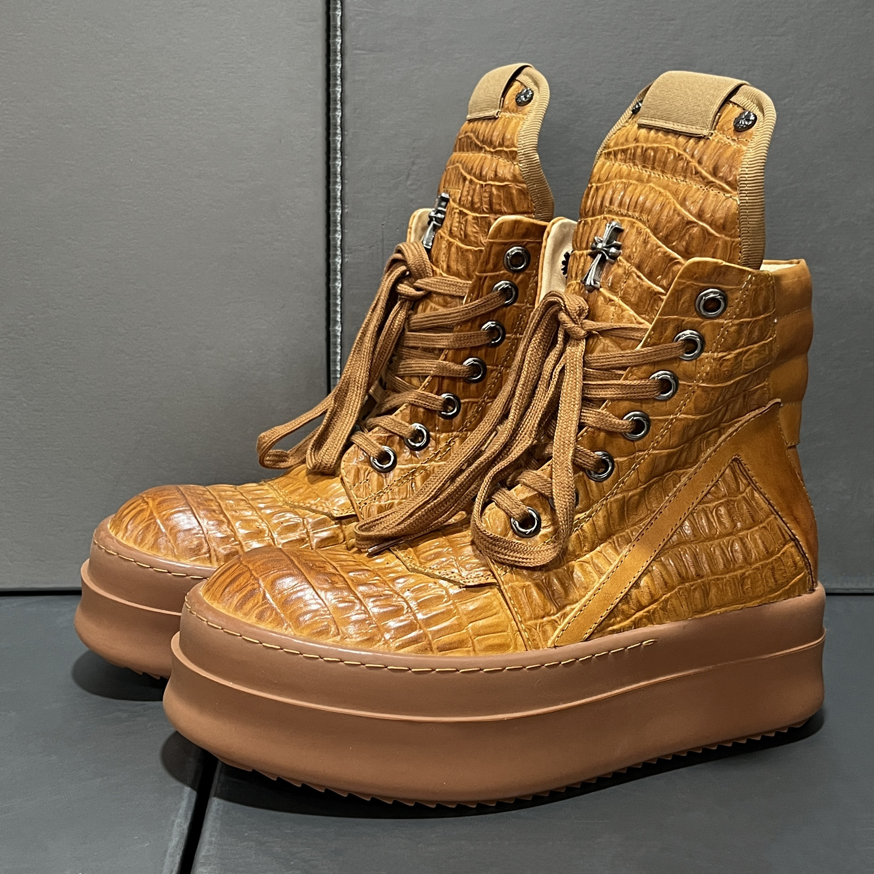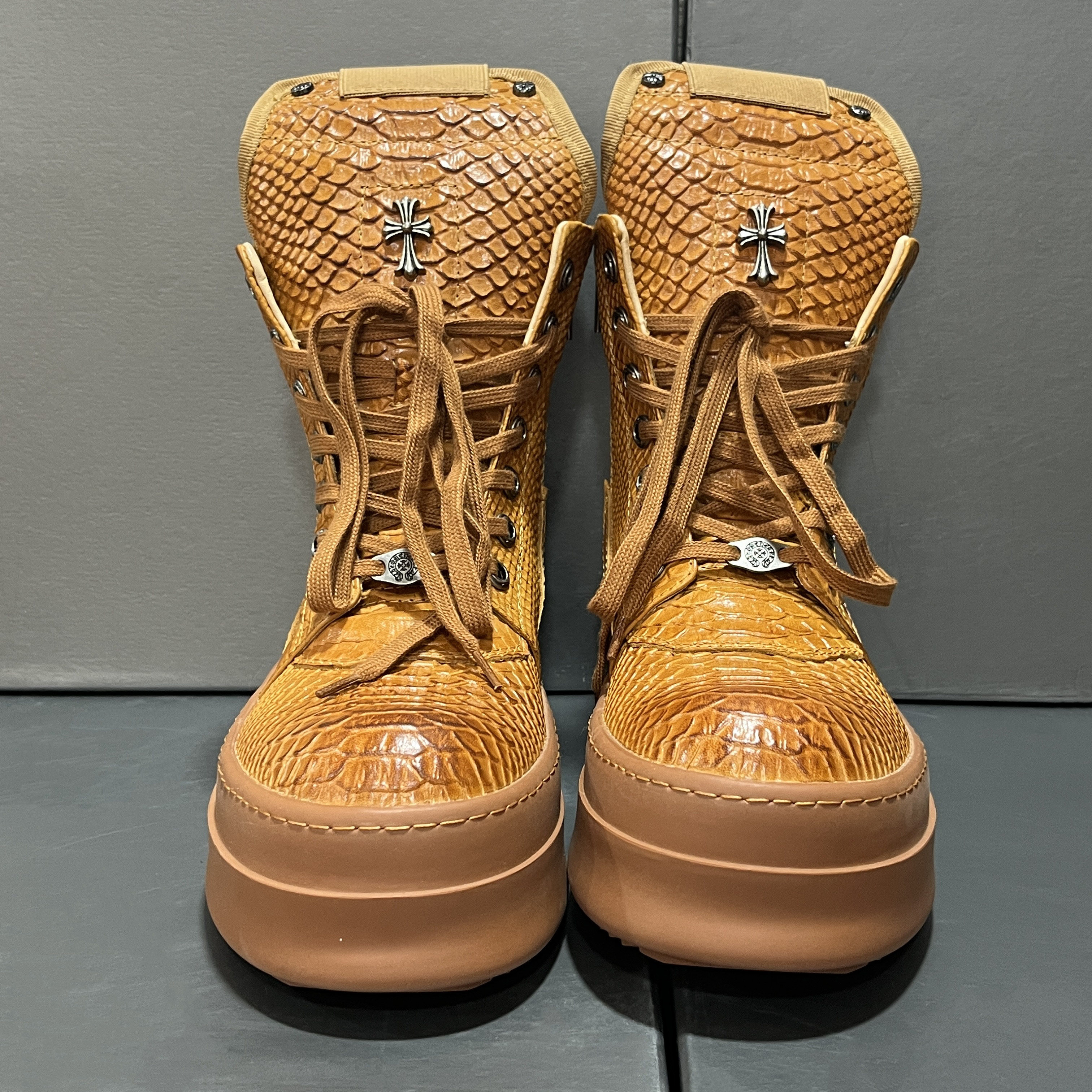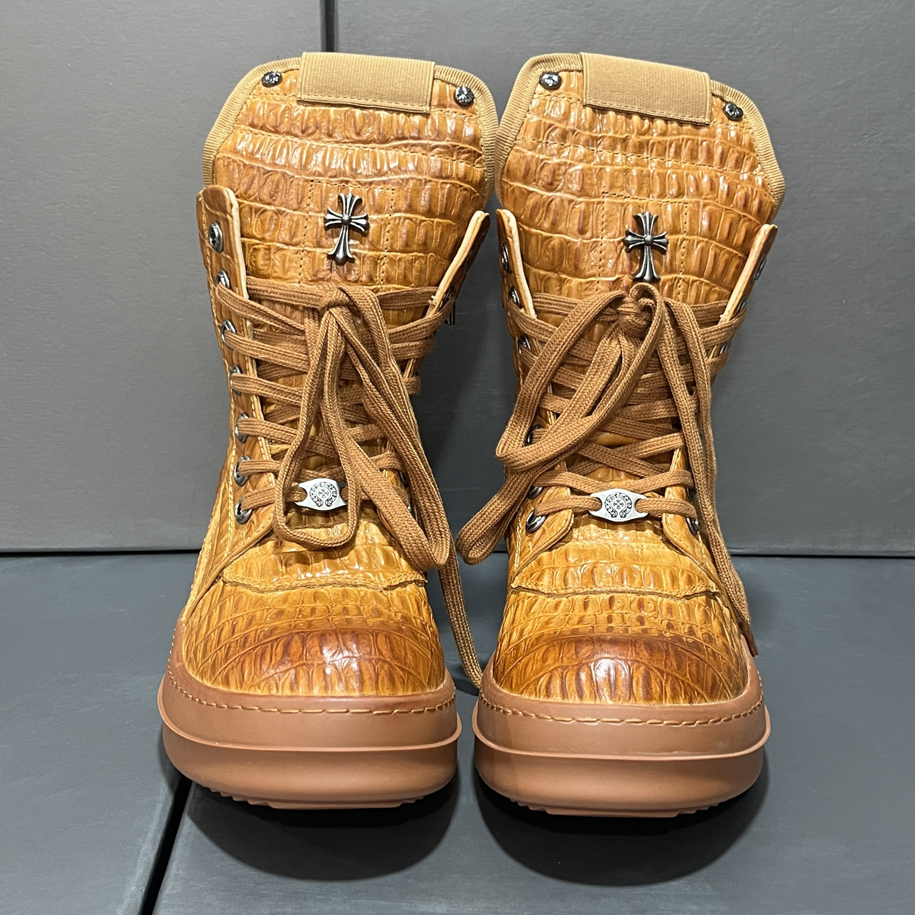 2025 New Ro Shoes High-Top Black and White Snake Pattern Inverted Triangle Genuine Leather Sneakers Men's Thick-Soled Casual Trendy Men's Short Boots