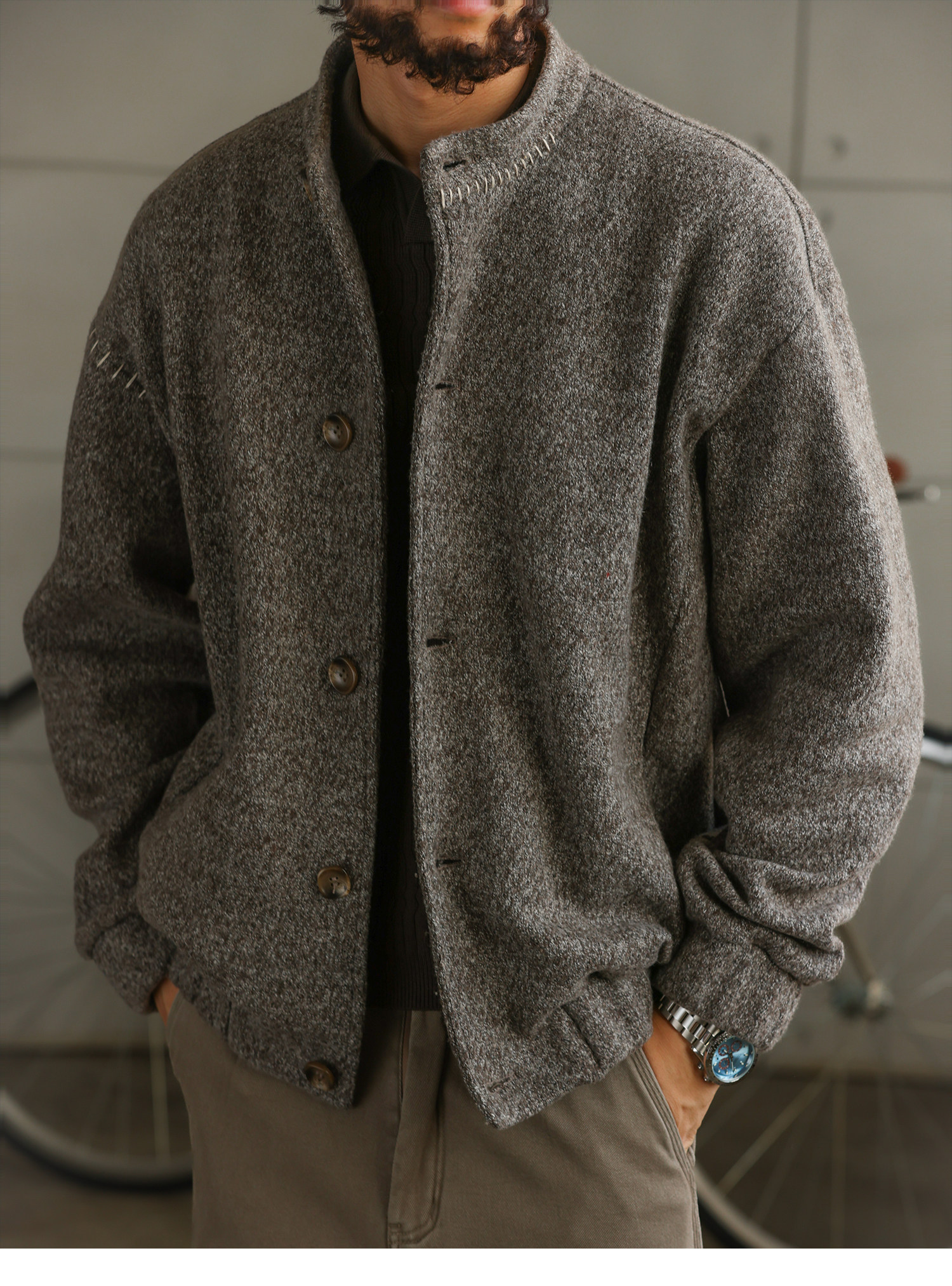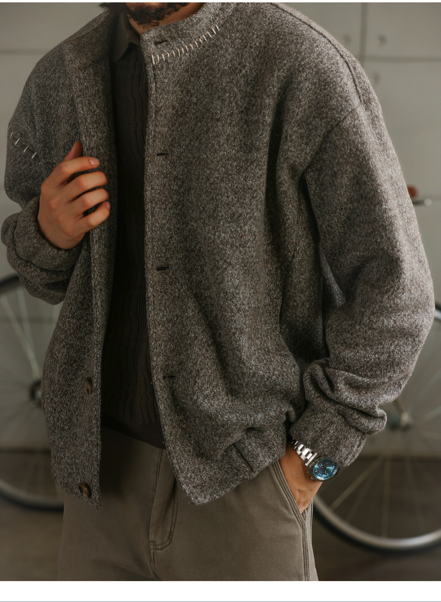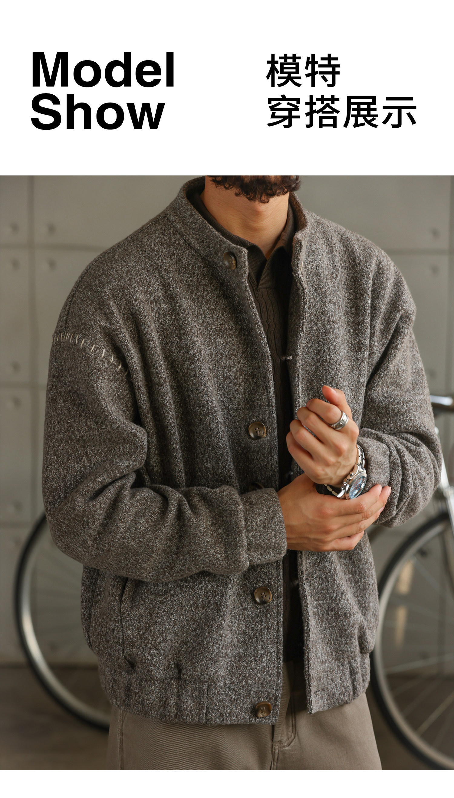 Iunclexi【Gentleman Style】Floral Wool Blend Woolen Coat Men's Autumn and Winter Heavyweight Warm Jacket